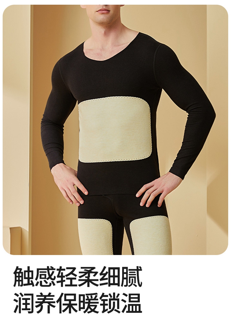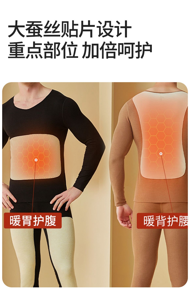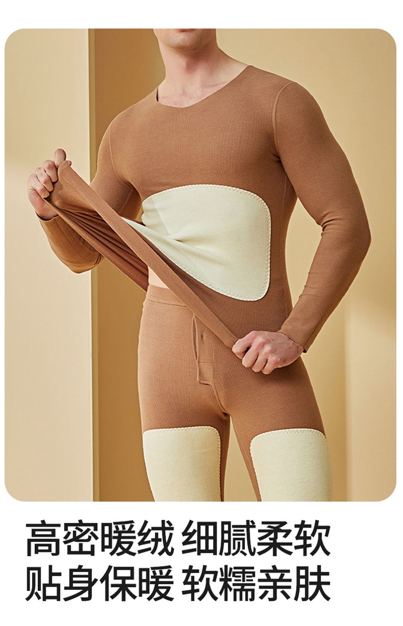 男士保暖套装玻尿酸加绒德绒无痕蚕丝圆领长袖保暖内衣套装