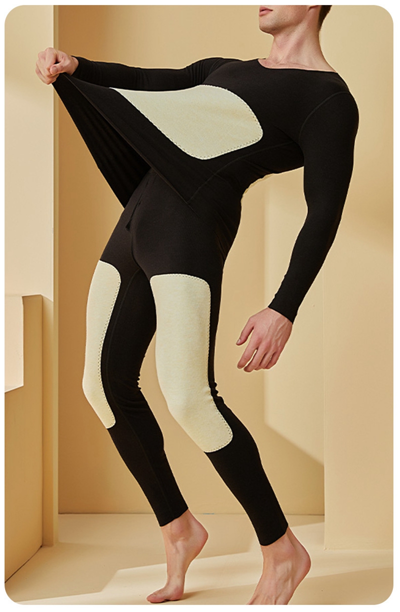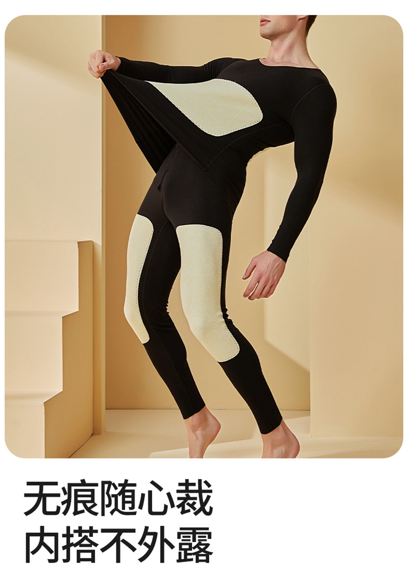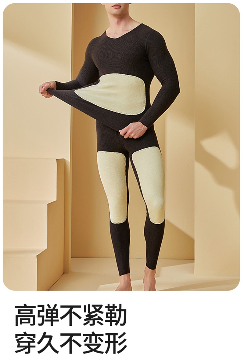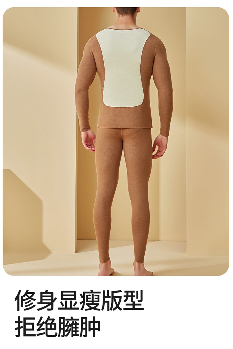 男士保暖套装玻尿酸加绒德绒无痕蚕丝圆领长袖保暖内衣套装