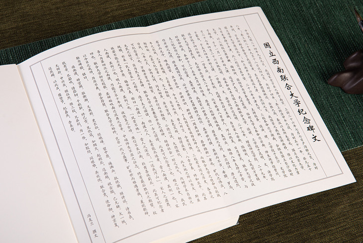 开卷便出现西南联大纪念碑文拉页,介绍西南联大建校始末。