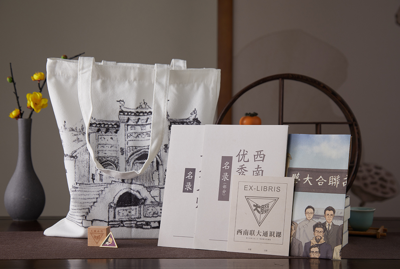 教师名录、学生名录、藏书票、大尺寸海报、校徽胸针、木质印章、闻一多手绘图帆布袋等7种赠品,即可送礼,也可收藏。