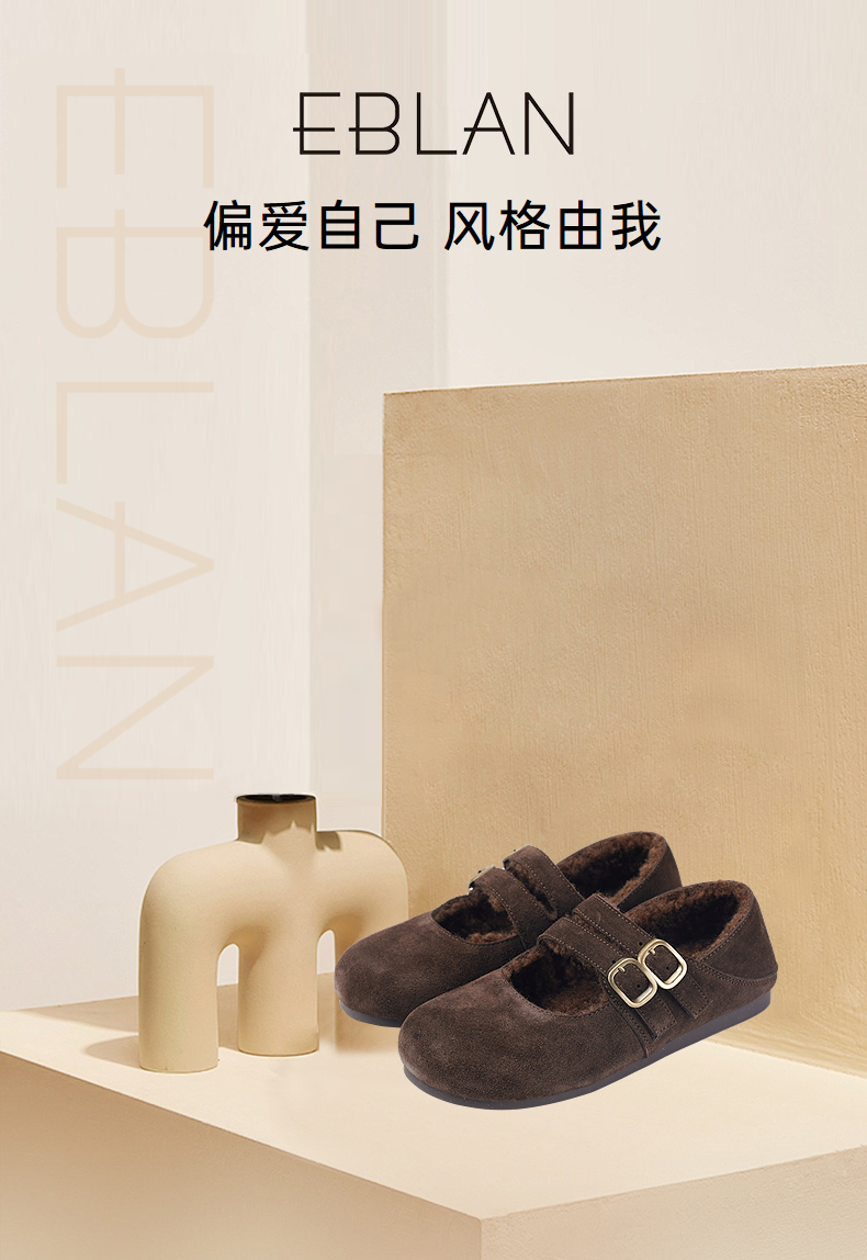 伊伴秋季平底加绒玛丽珍轻盈舒适平底单鞋B25471203