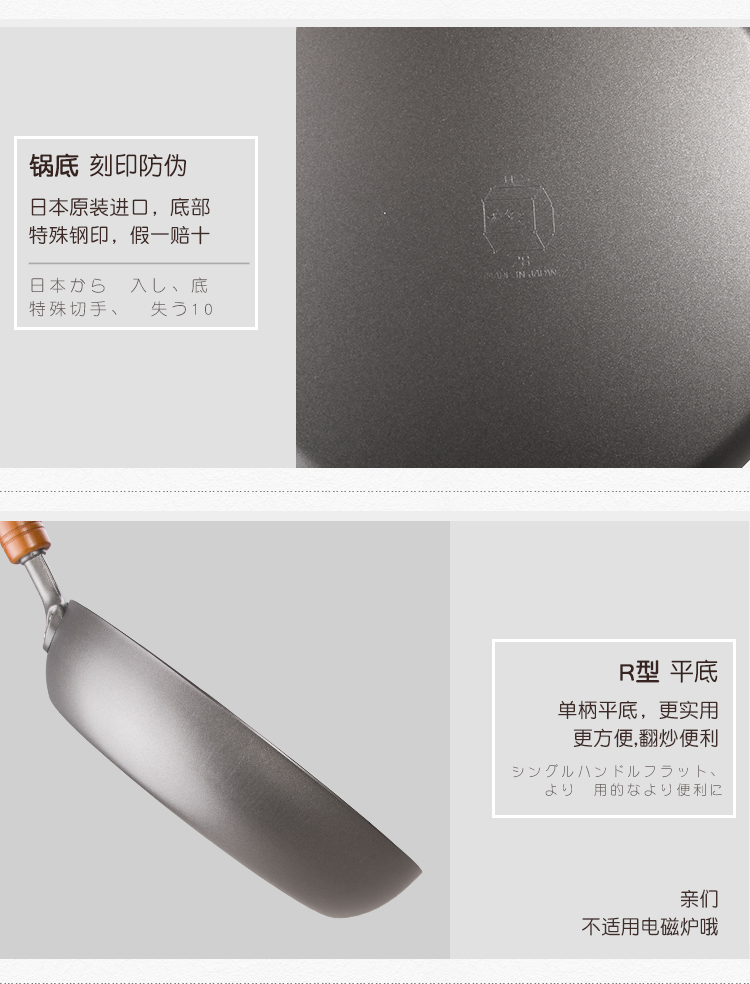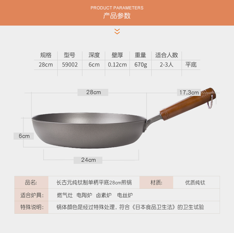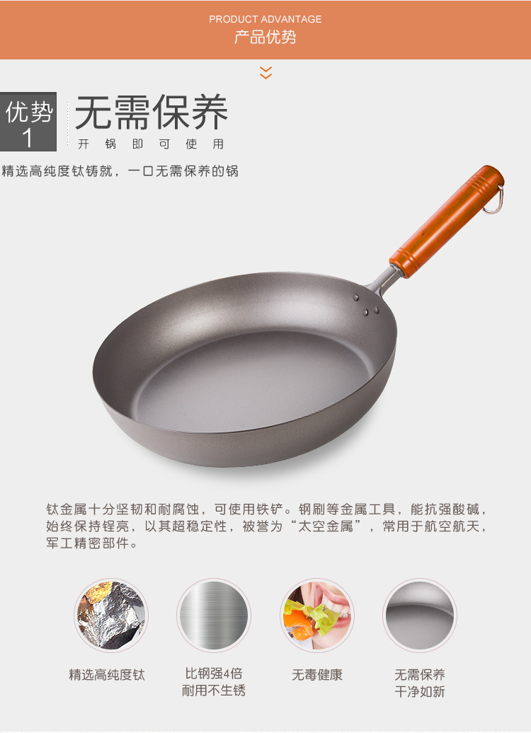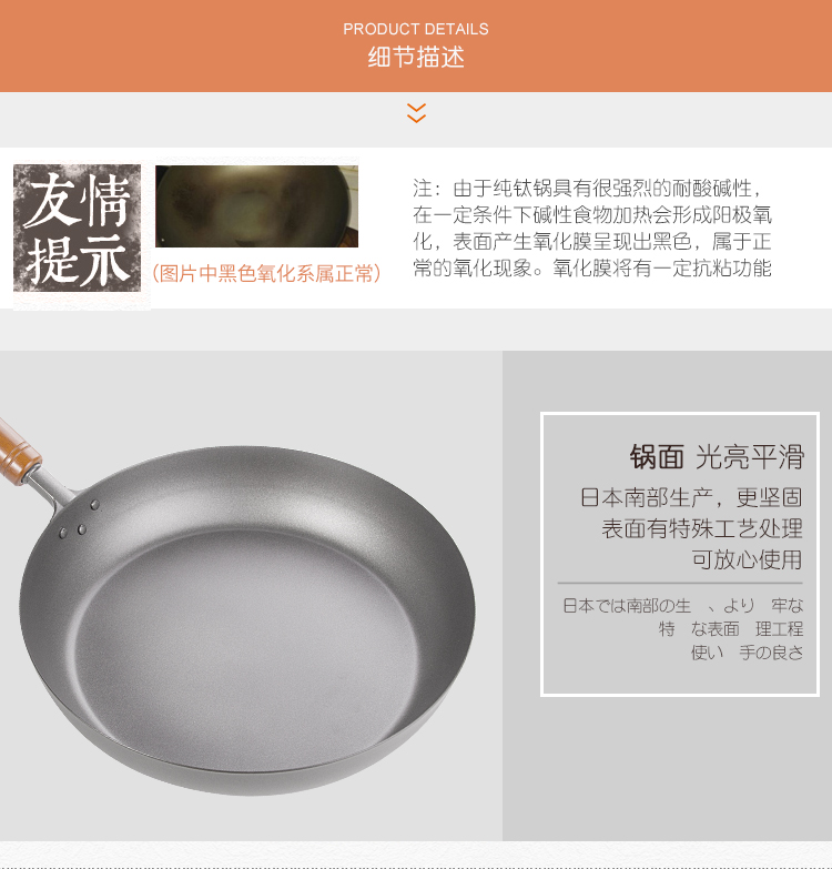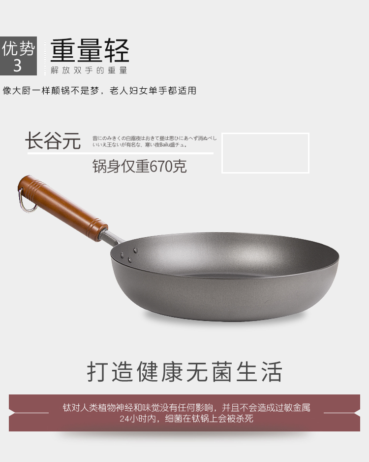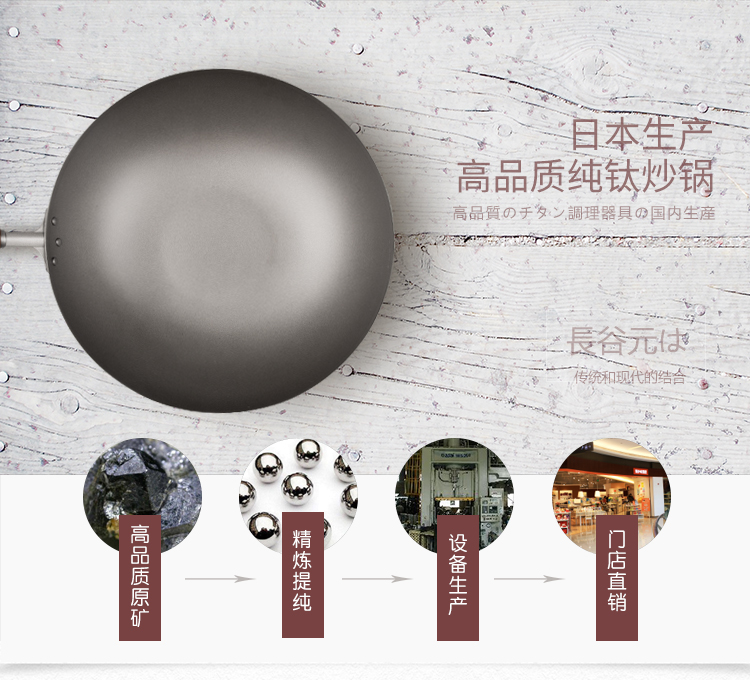 长谷元 纯钛钛锅日本原装进口纯钛煎锅26CM