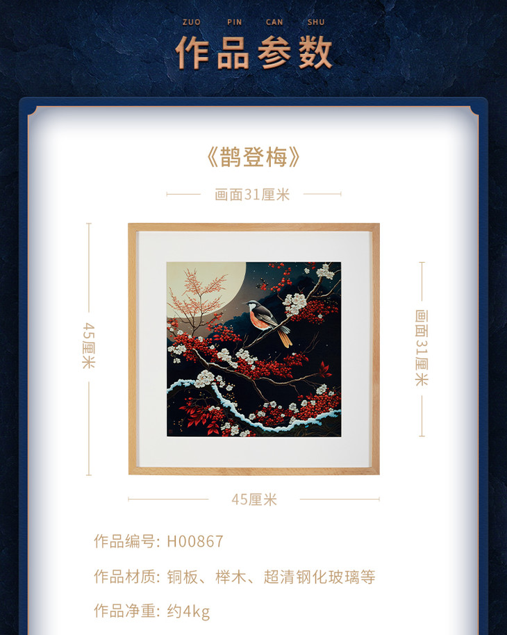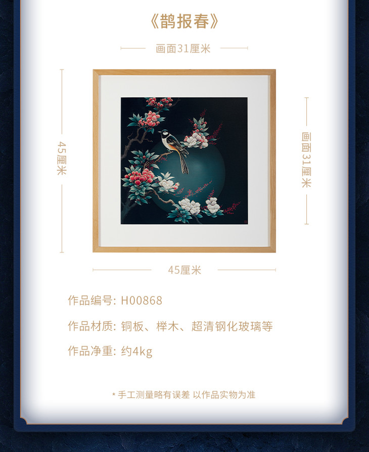 铜师傅 手工錾刻 铜雕画《鹊登梅》《鹊报春》玄关客厅装饰背景画