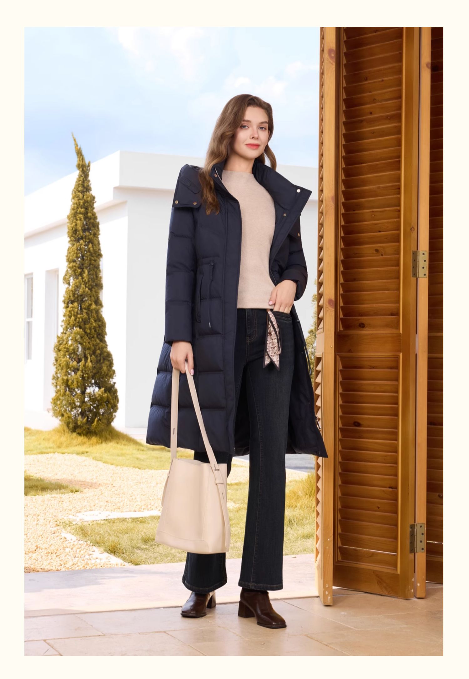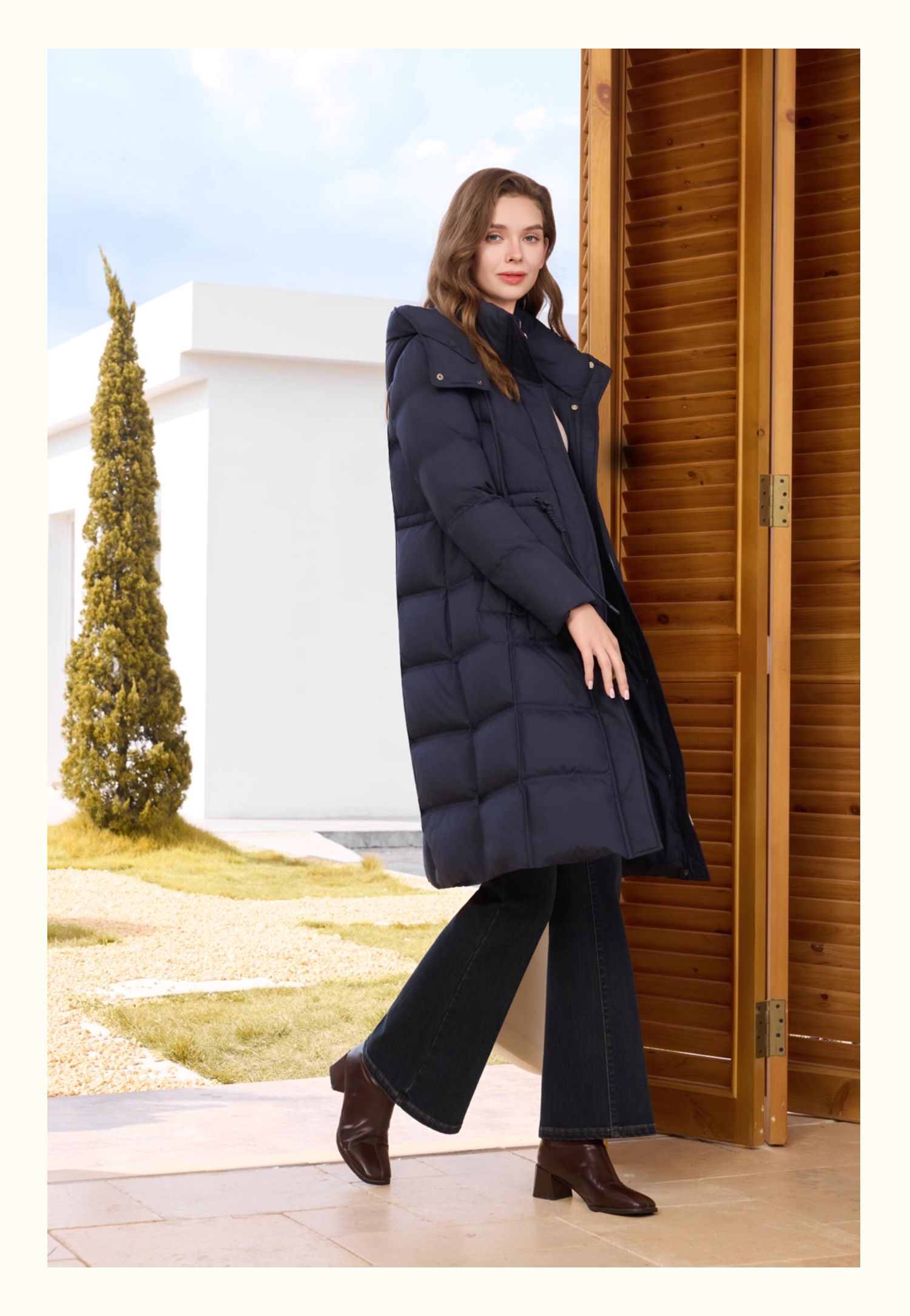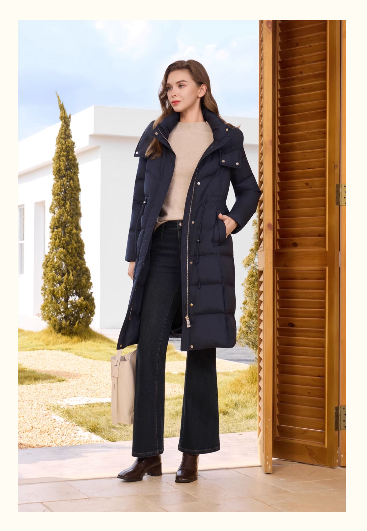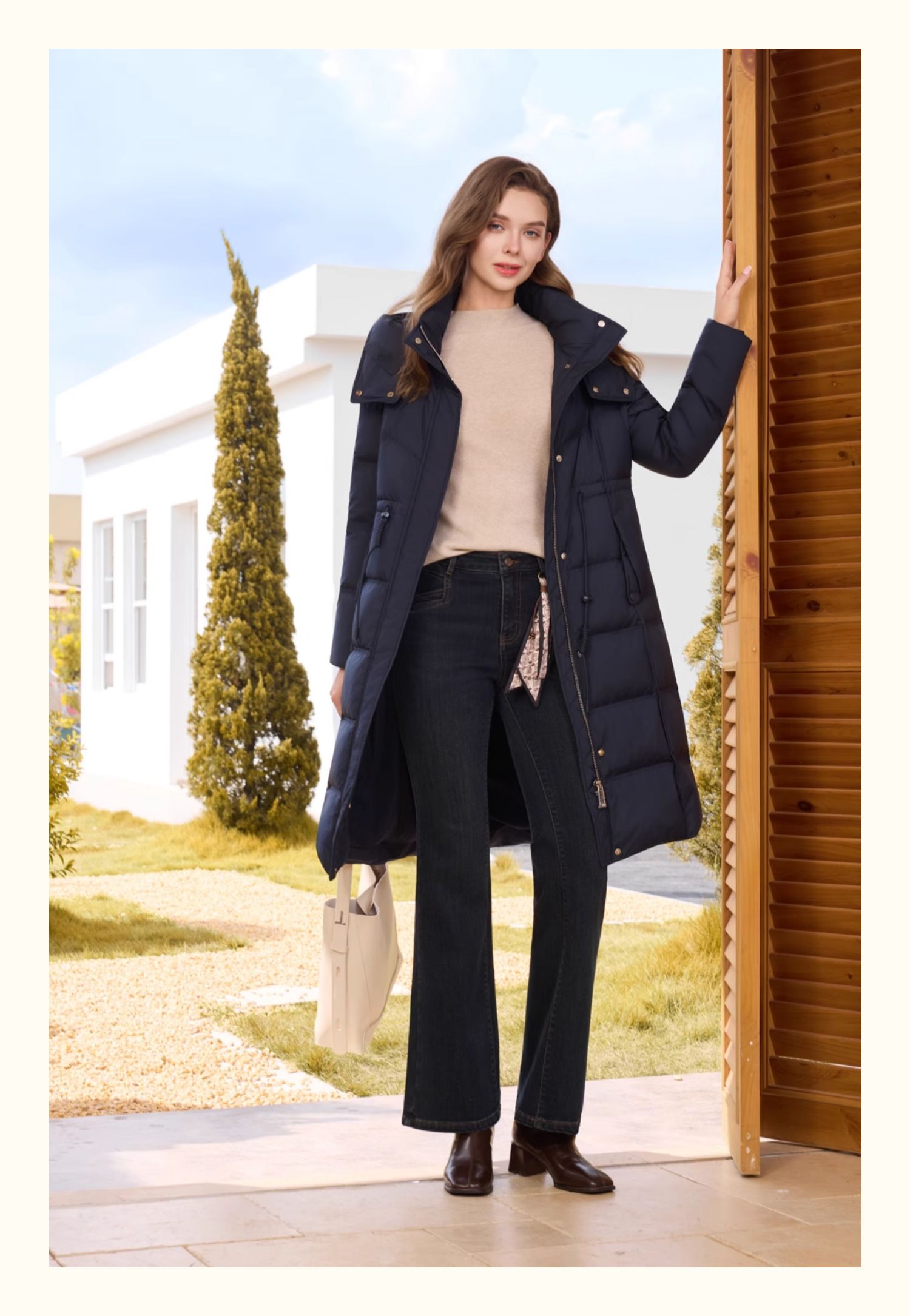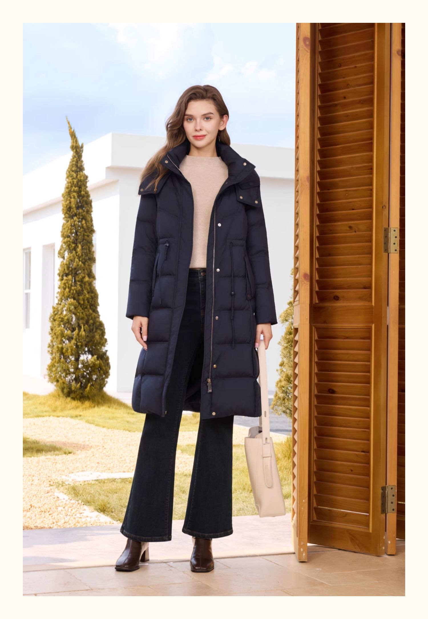 半身缘女装 冬季正肩防风保暖长款羽绒服254313M01740119