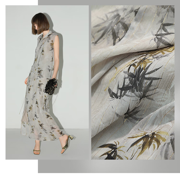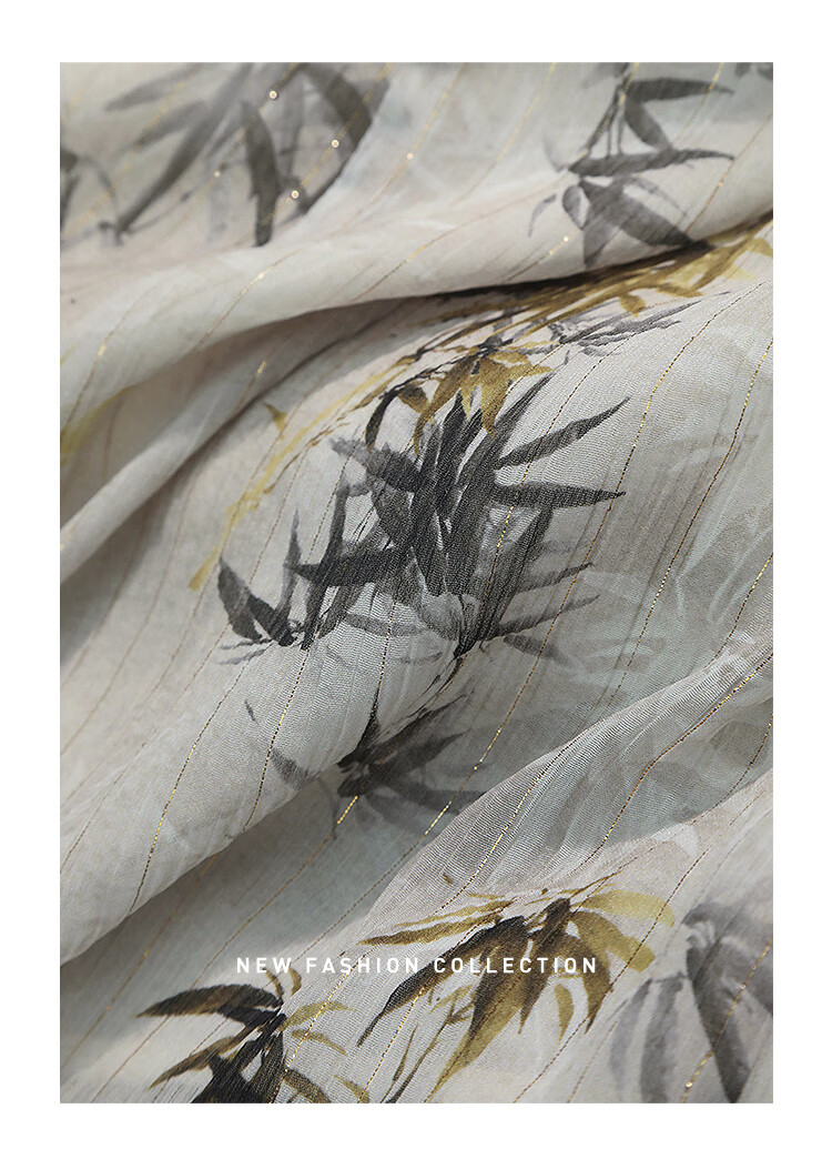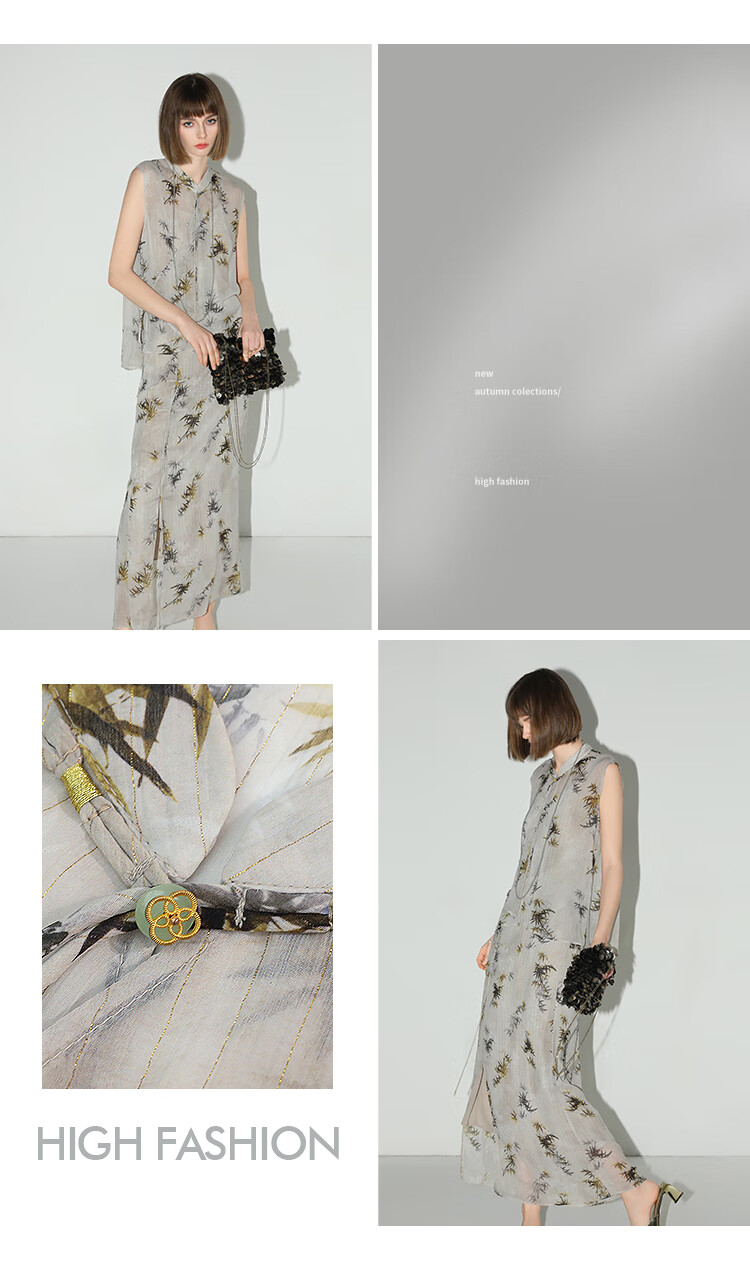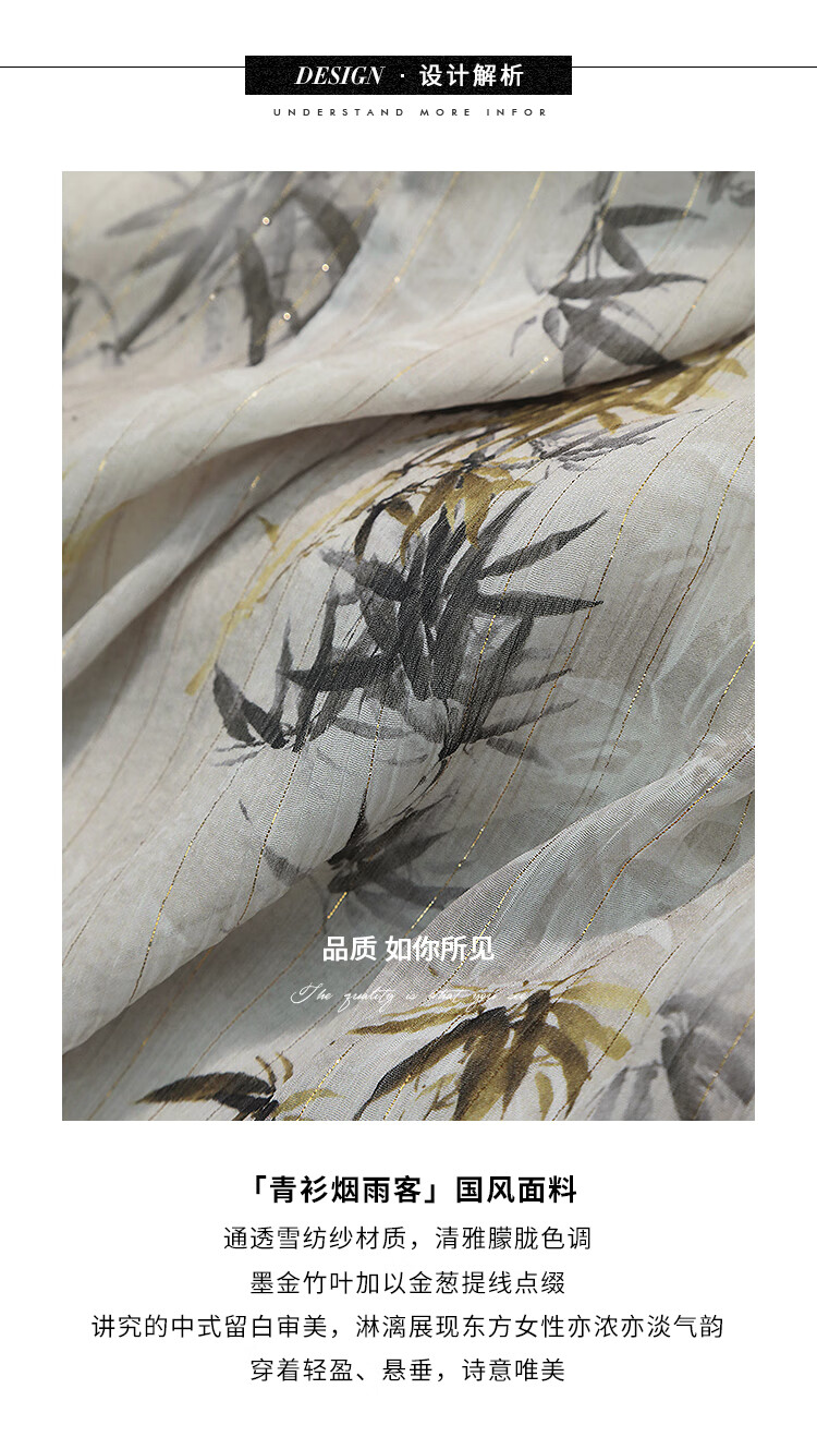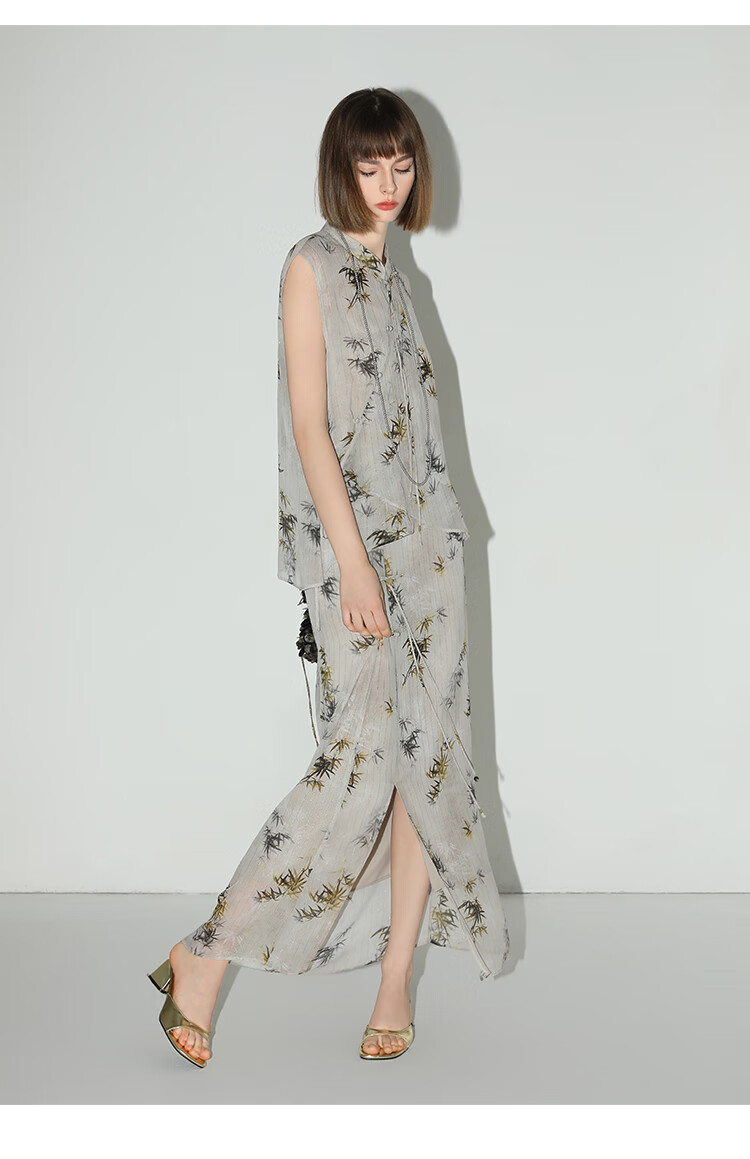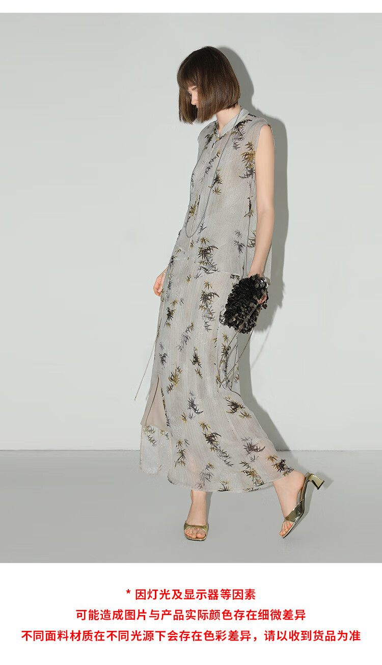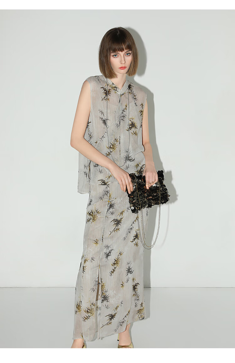 【秒杀】COCOBELLA新国风金丝竹叶印花无袖斜襟雪纺衫附吊带SR3052