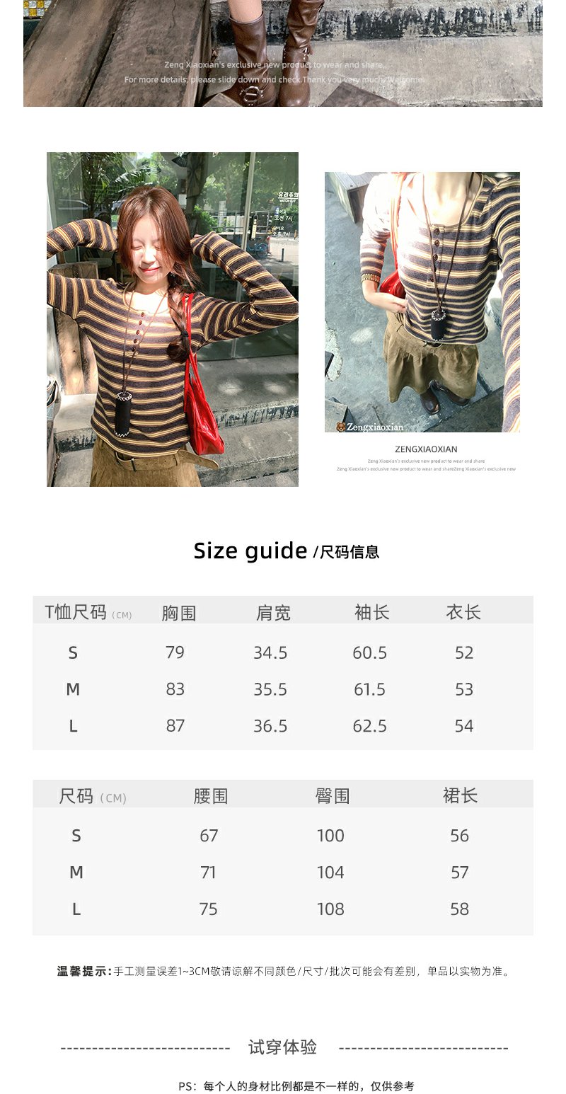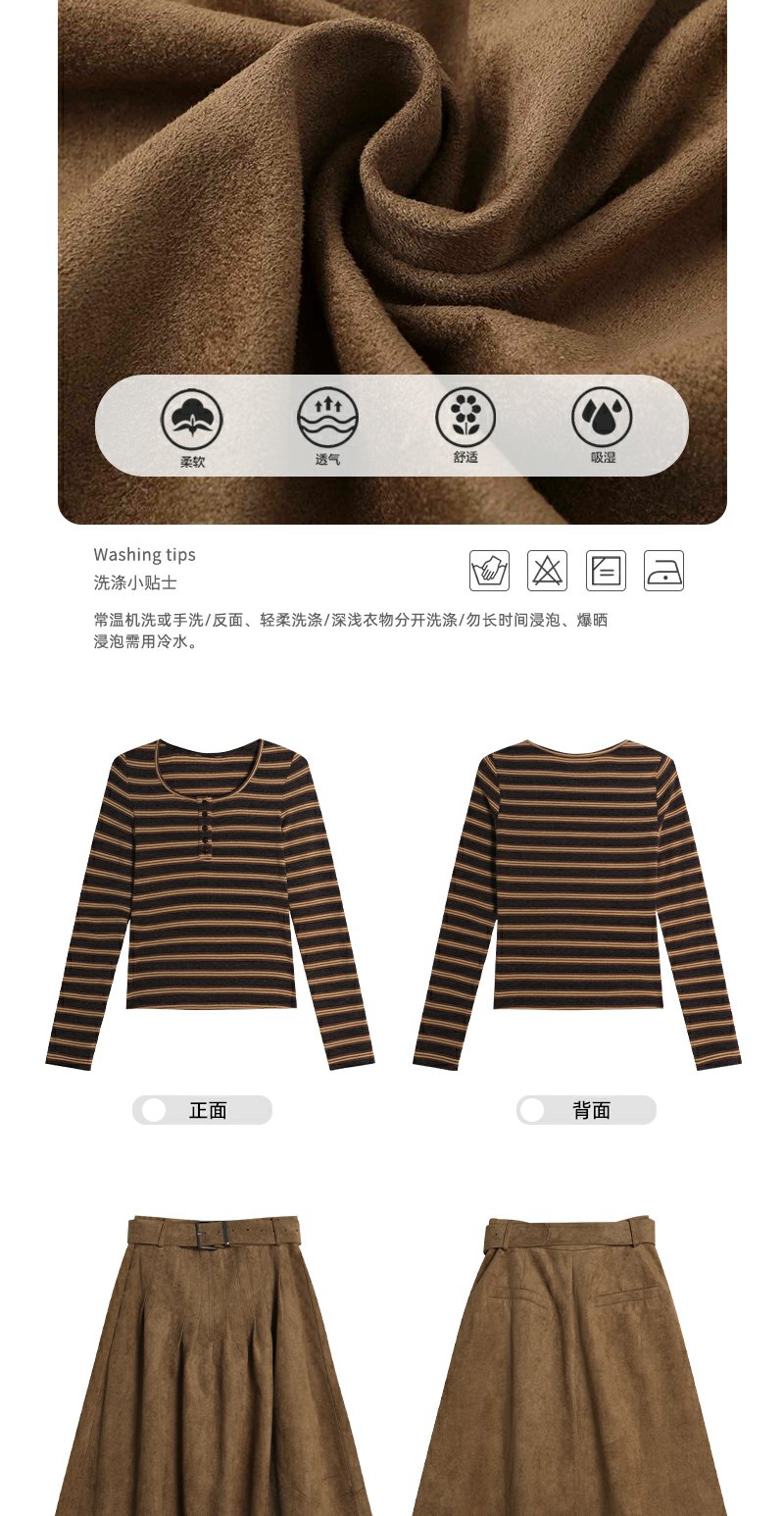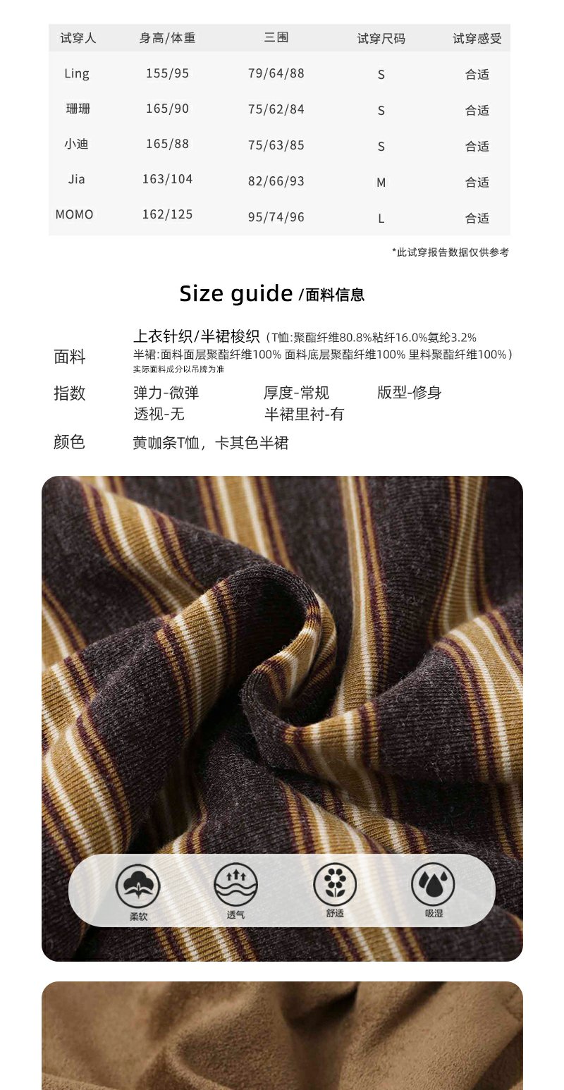 <曾小咸推荐>条纹亨利领T恤半身裙