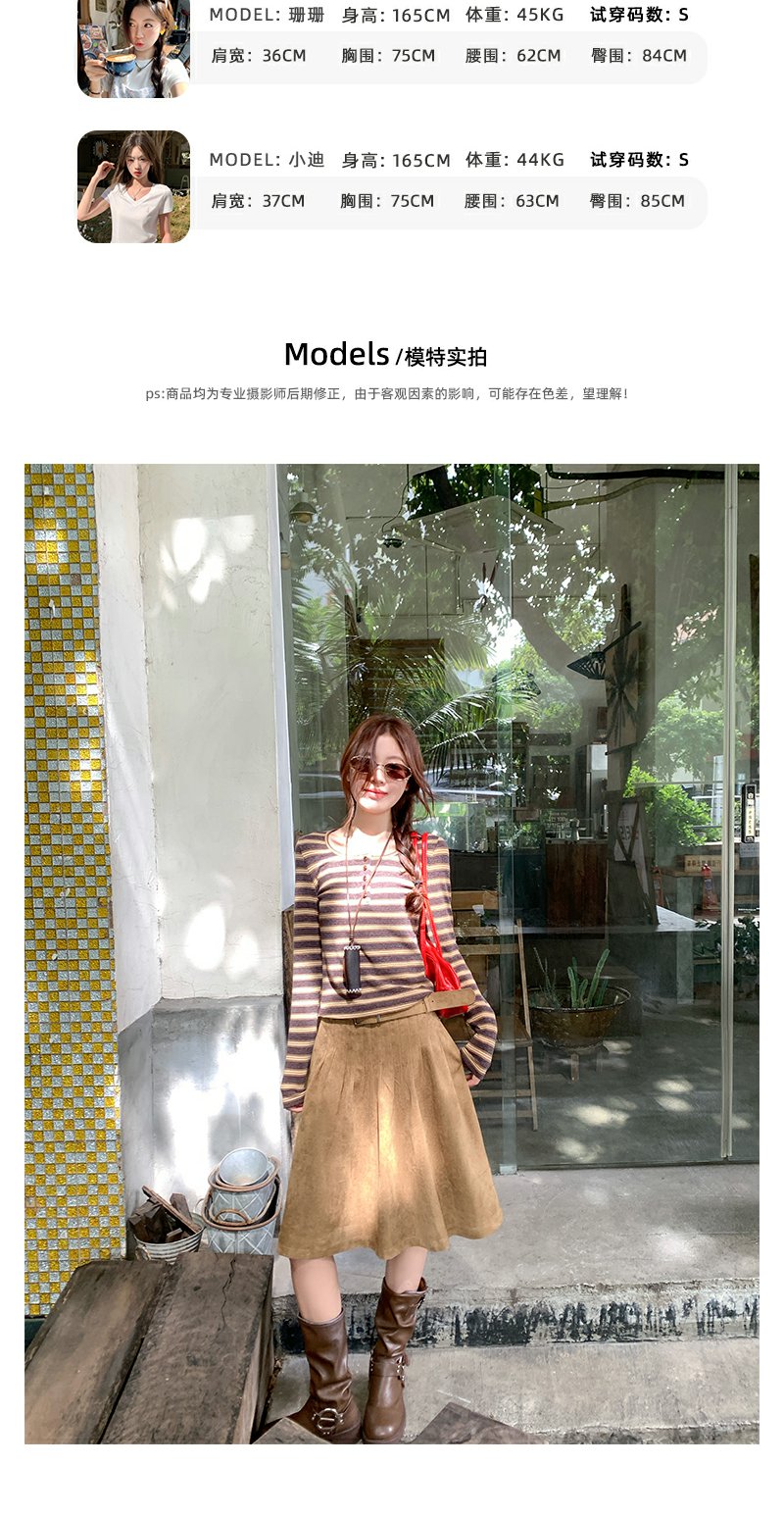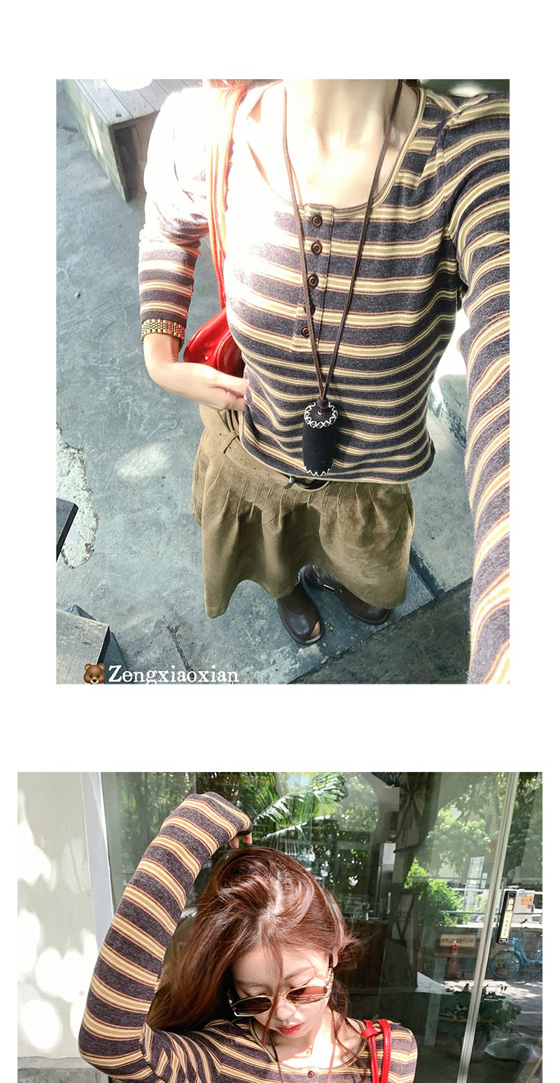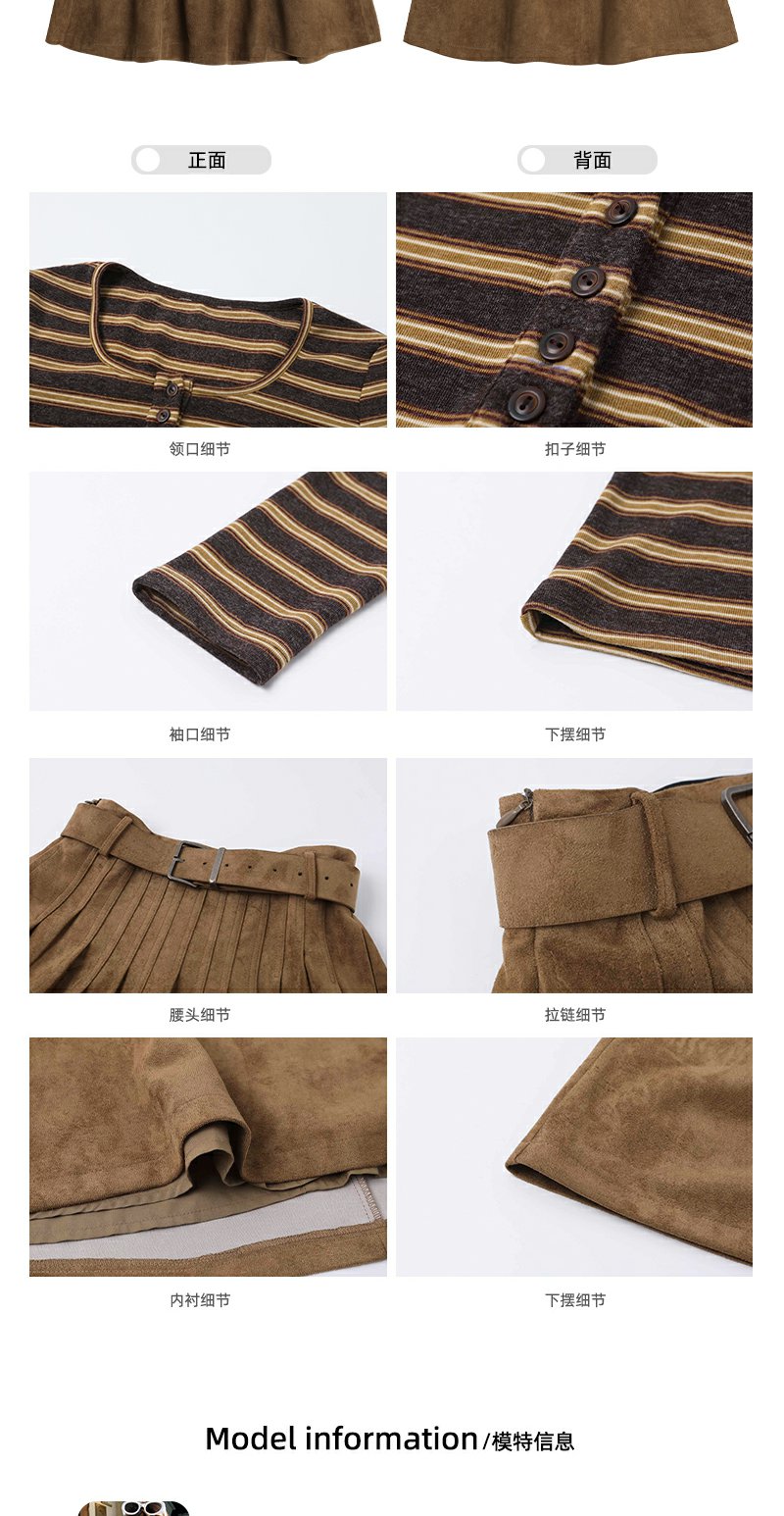 <曾小咸推荐>条纹亨利领T恤半身裙