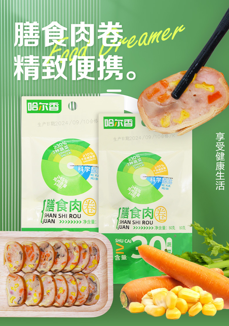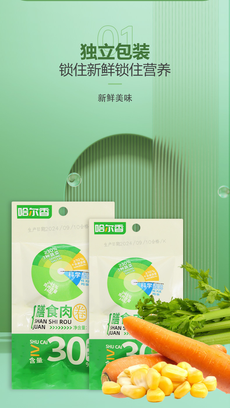 【直发】哈尔香膳食豆皮肉卷80g*5袋