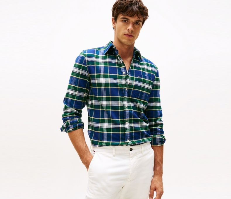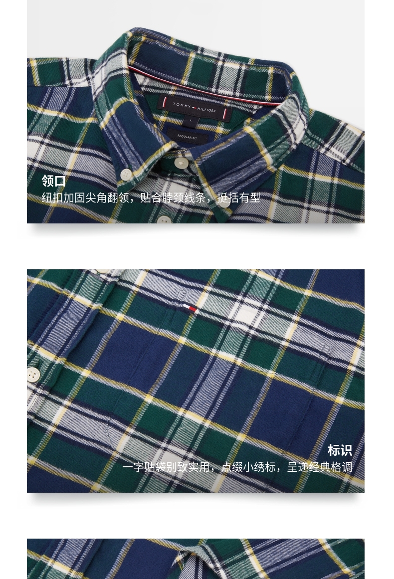 TOMMY 衬衫男 MW40473-0N5 蓝绿格紋.