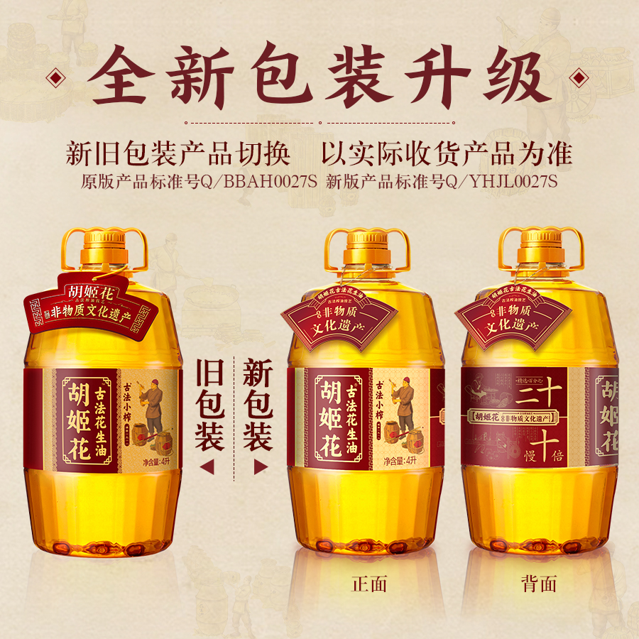 【自营】胡姬花古法小榨花生油4L/5L