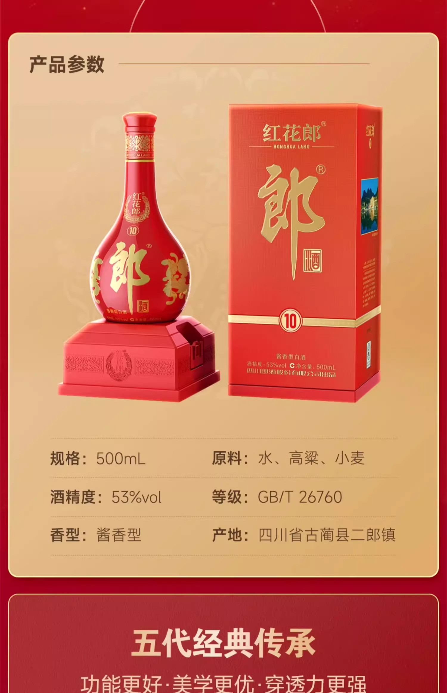 郎酒红花郎10年 第五代53度酱香型白酒500ml*1瓶