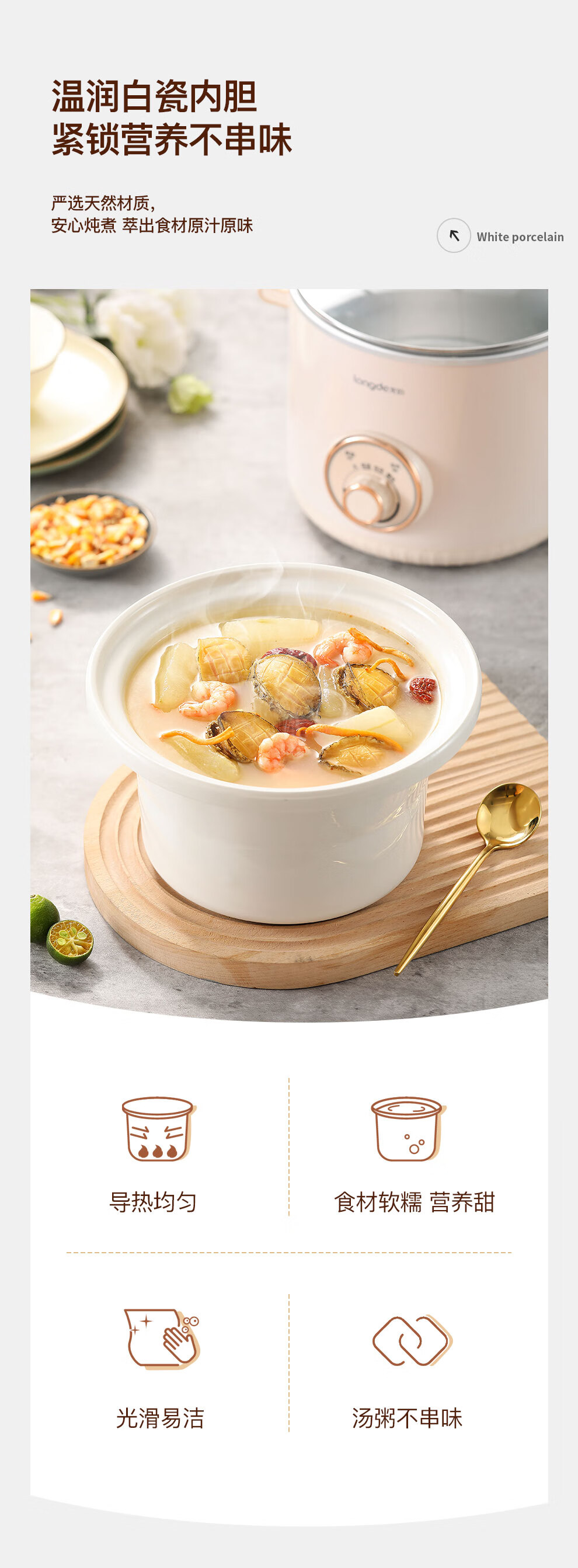 【小家电】龙的longde电炖锅 LD-DG3235电炖盅煲汤锅炖汤锅 婴儿煮粥锅bb煲 熬粥养生 HF