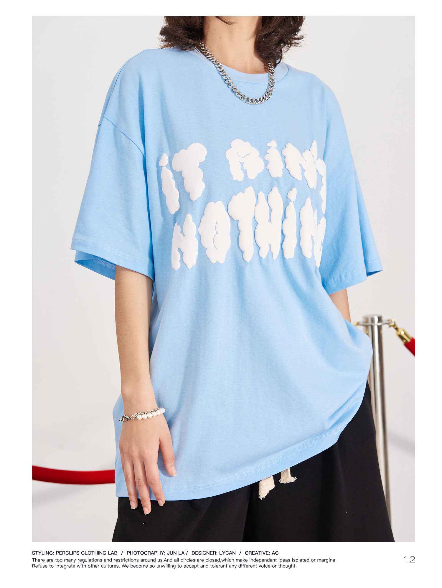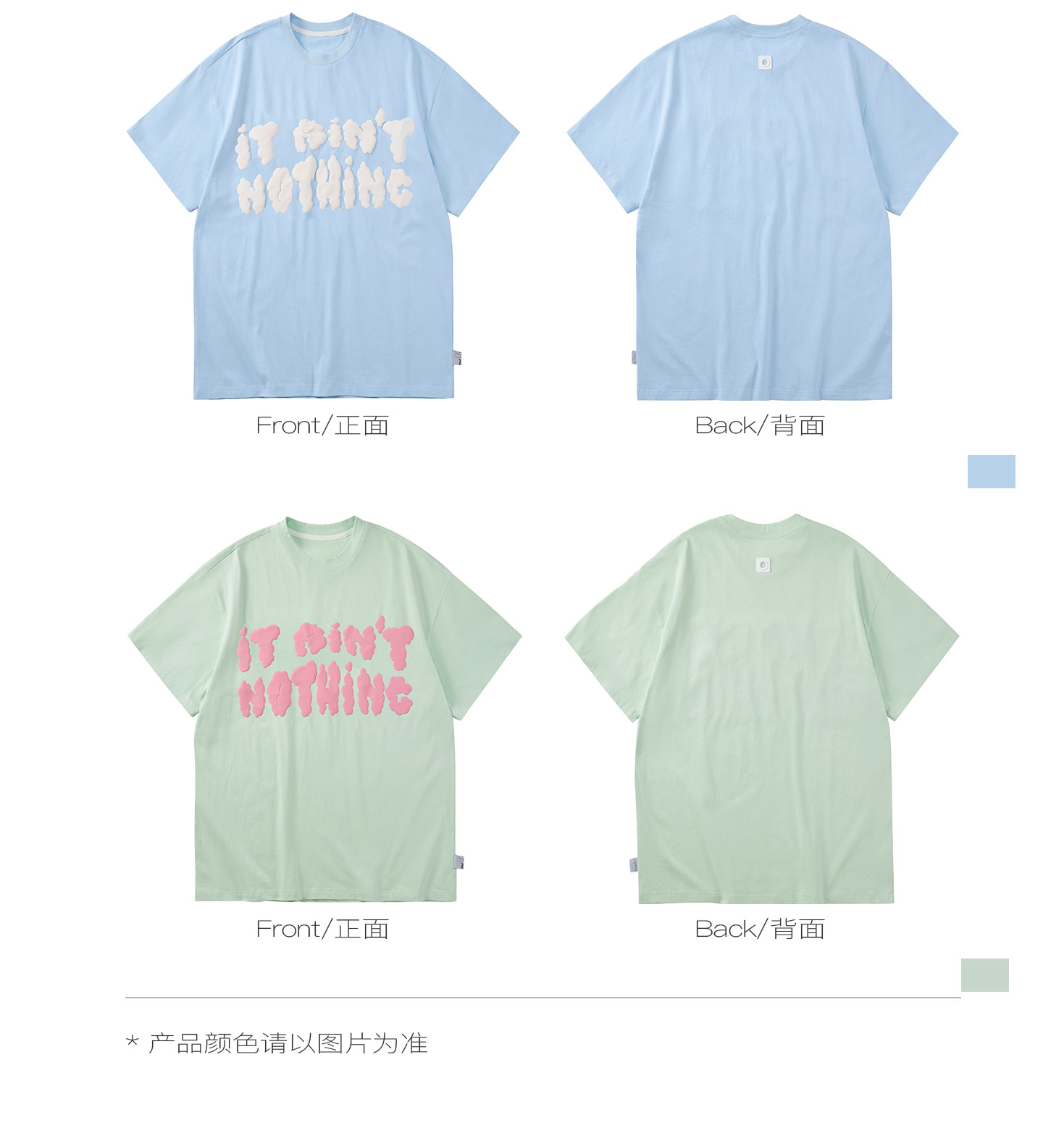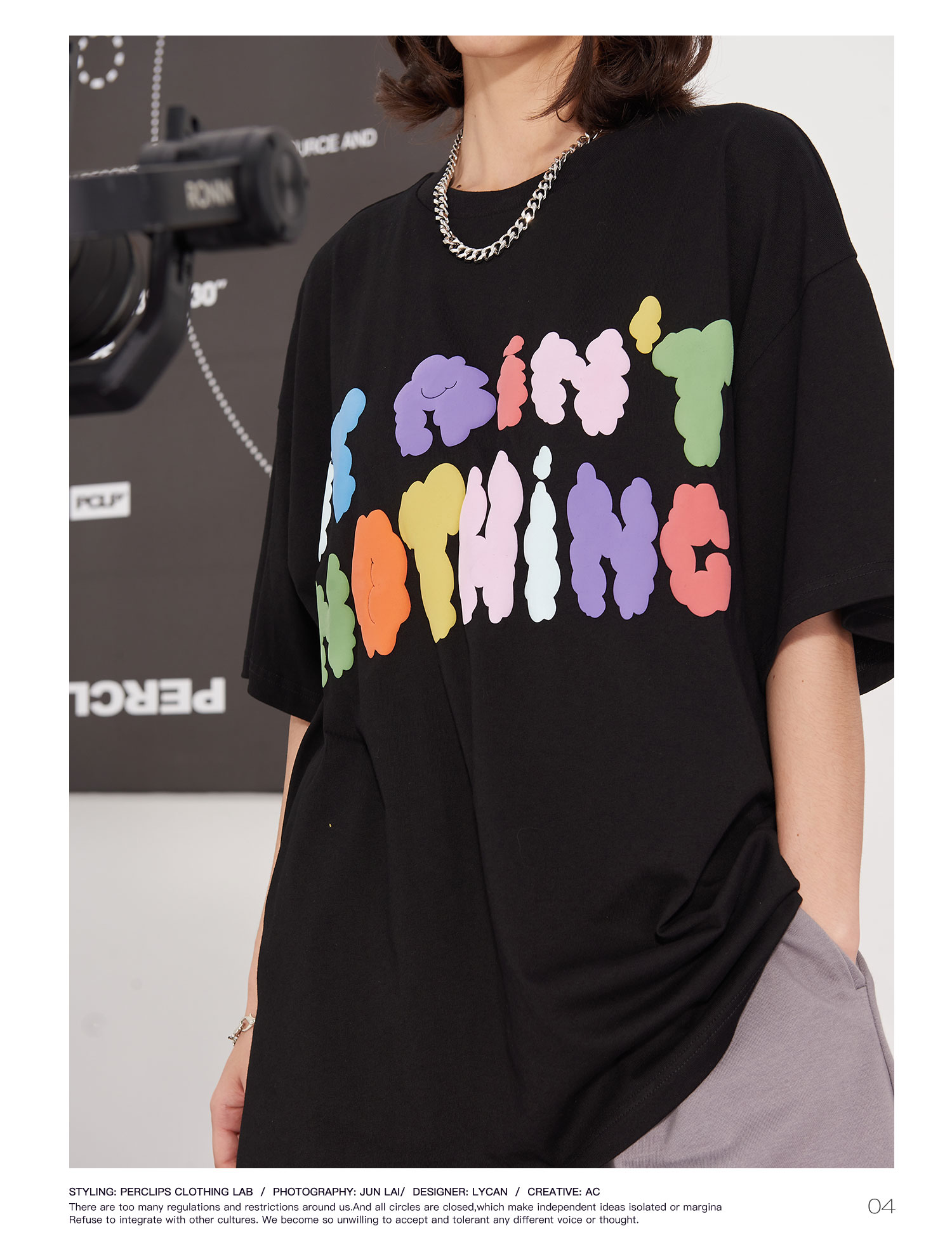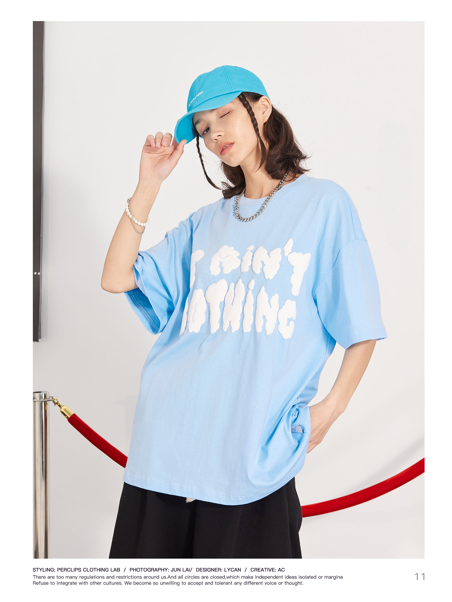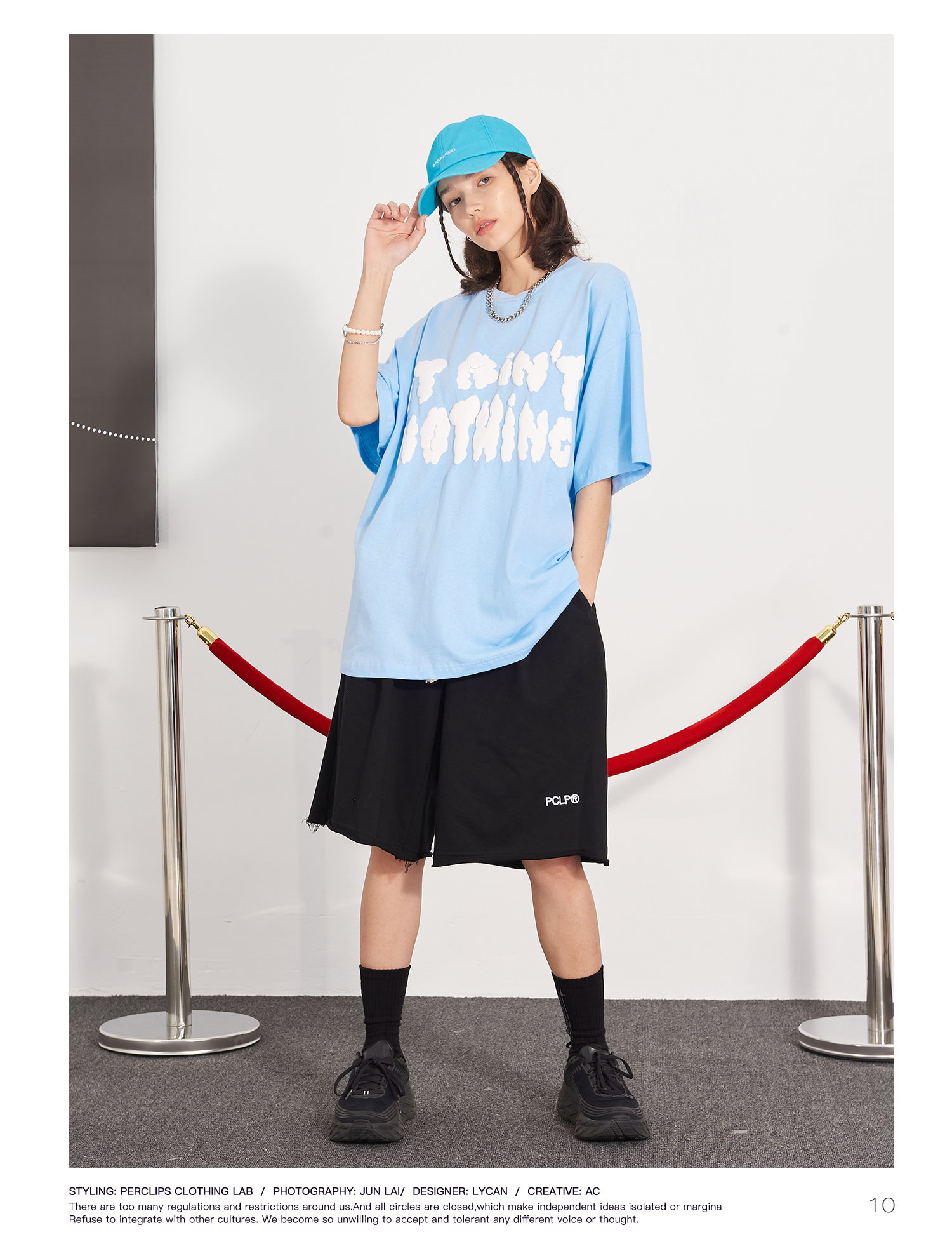 PCLP(PERCLIPS) 云朵发泡字母潮流短袖男国潮牌纯棉宽松半袖t恤男