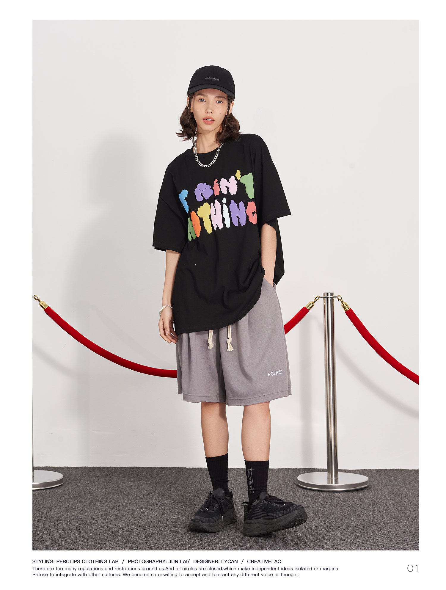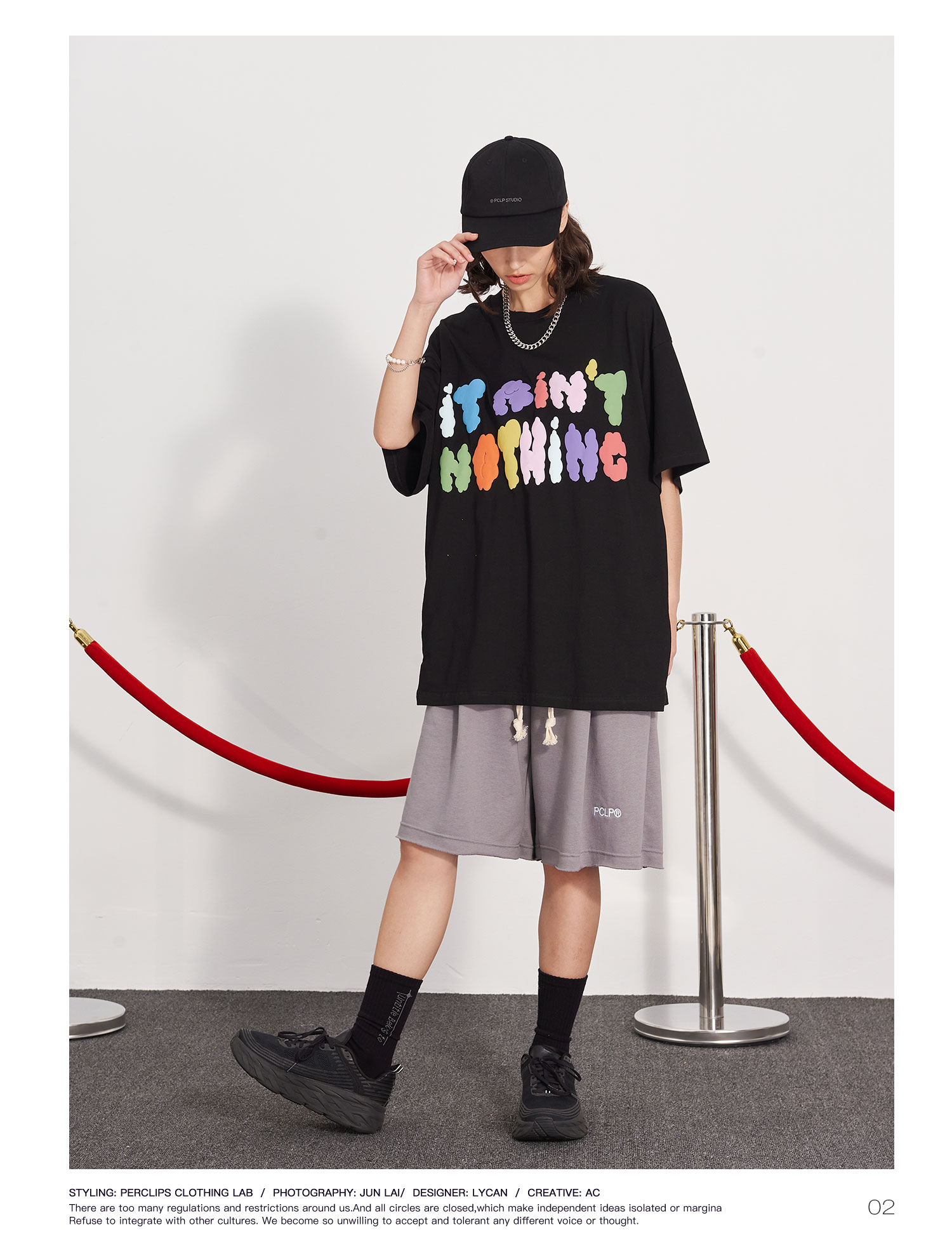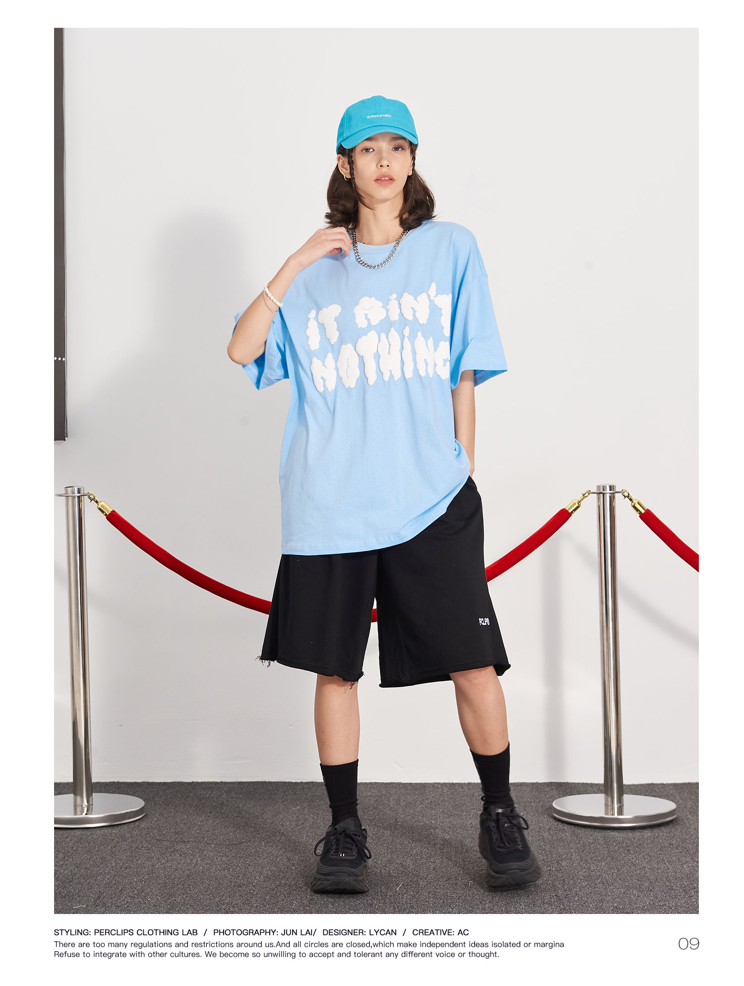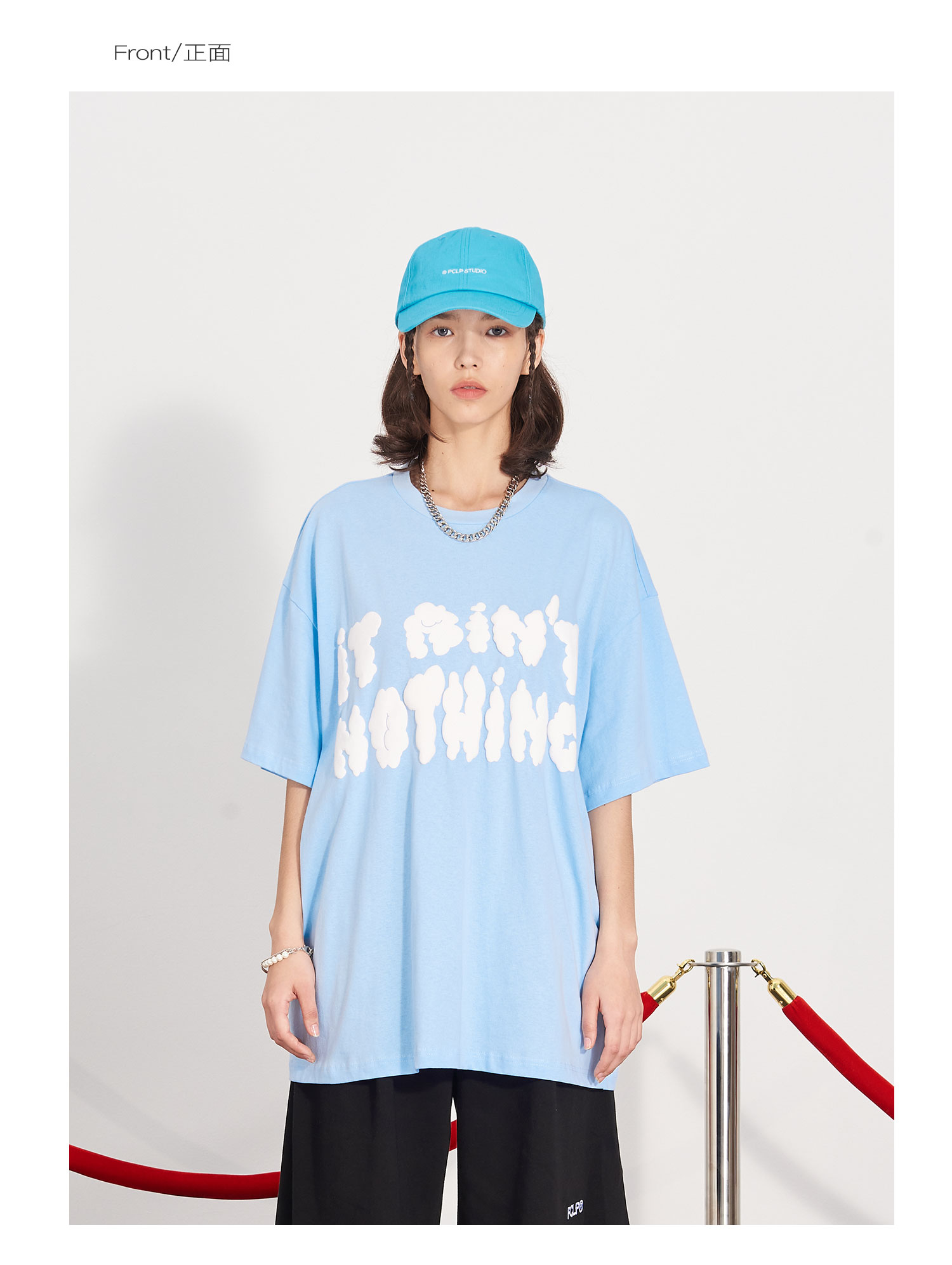 PCLP(PERCLIPS) 云朵发泡字母潮流短袖男国潮牌纯棉宽松半袖t恤男