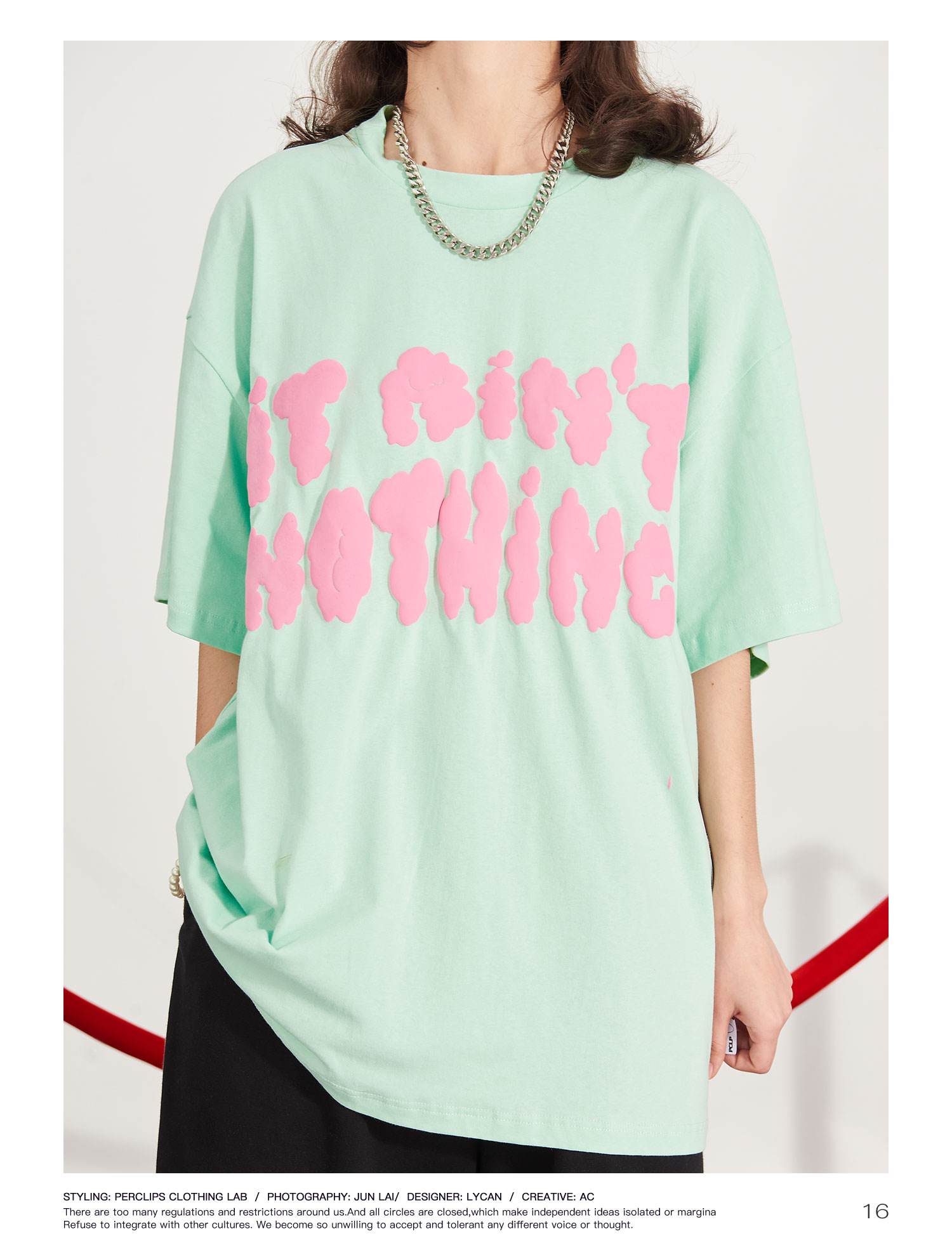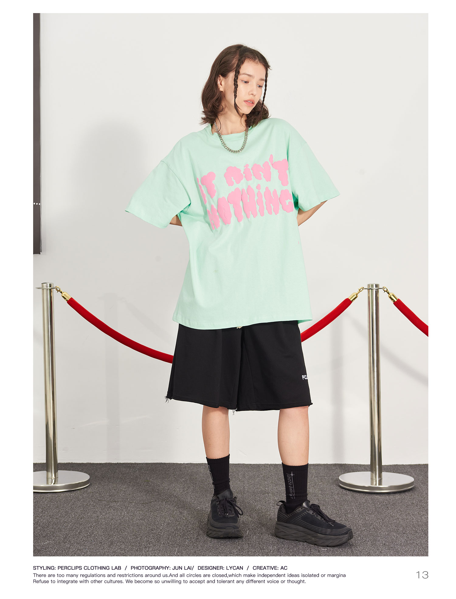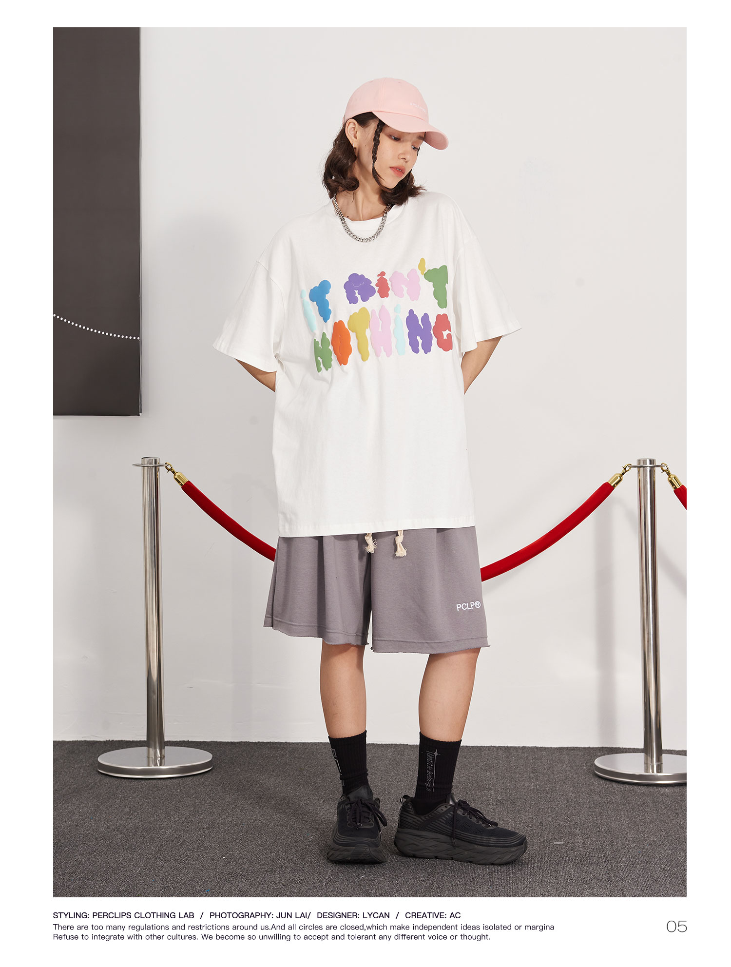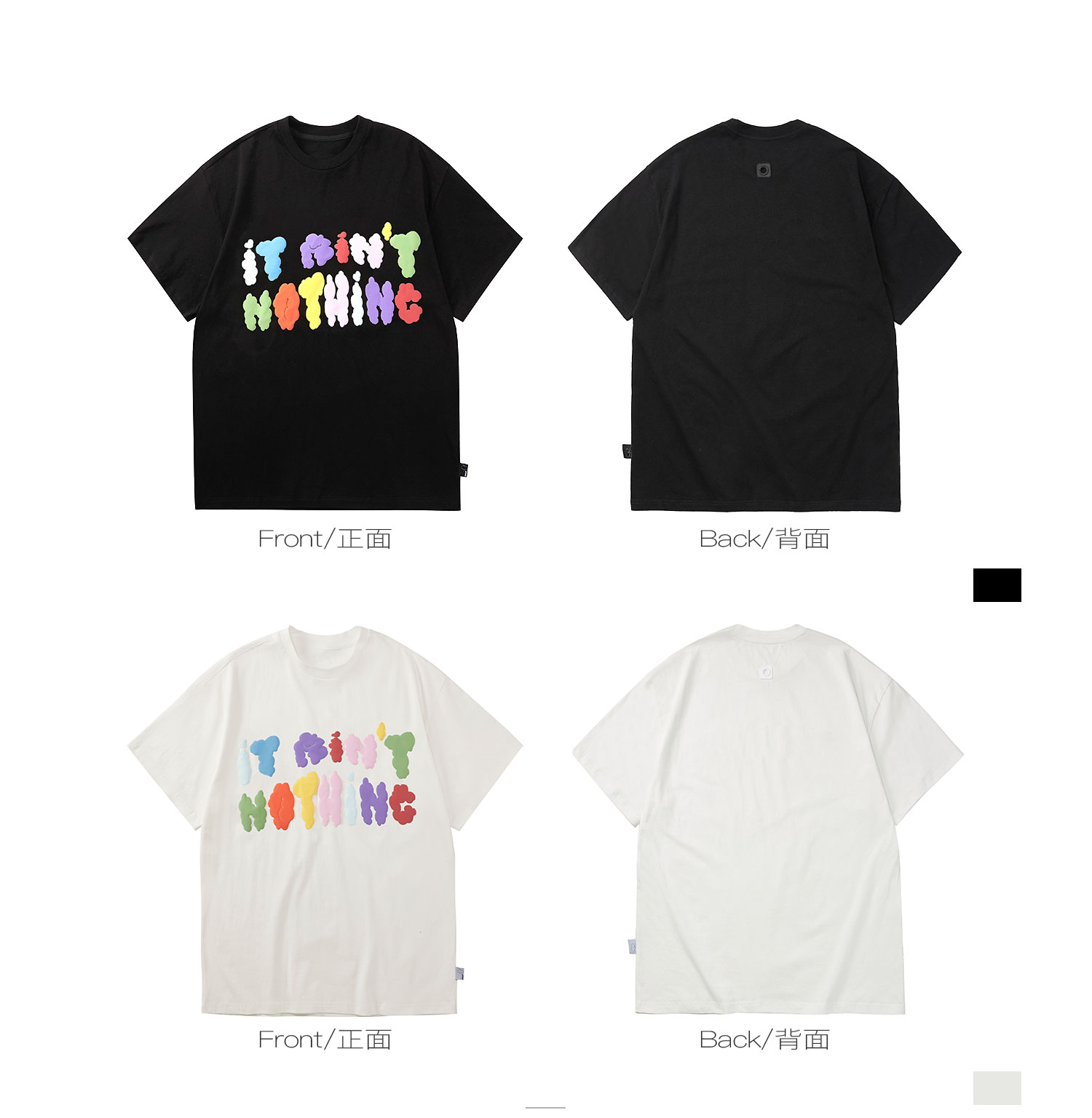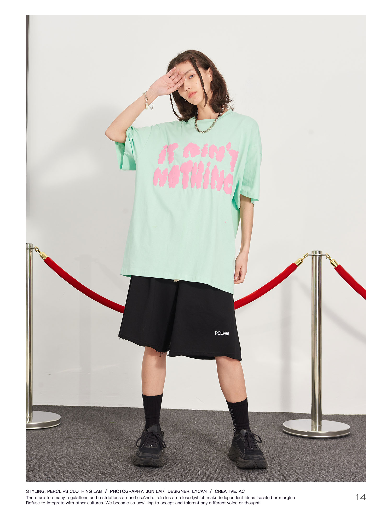 PCLP(PERCLIPS) 云朵发泡字母潮流短袖男国潮牌纯棉宽松半袖t恤男