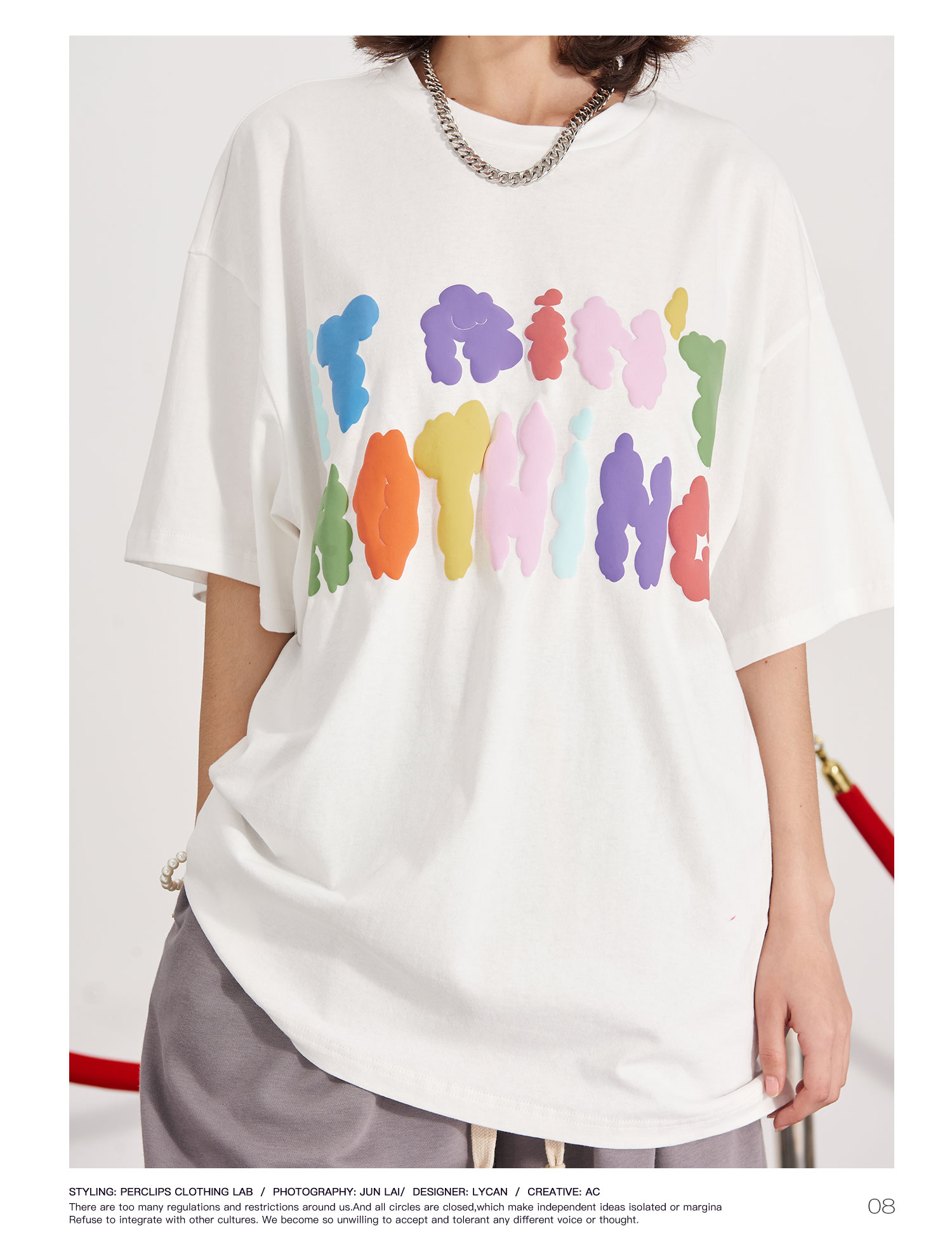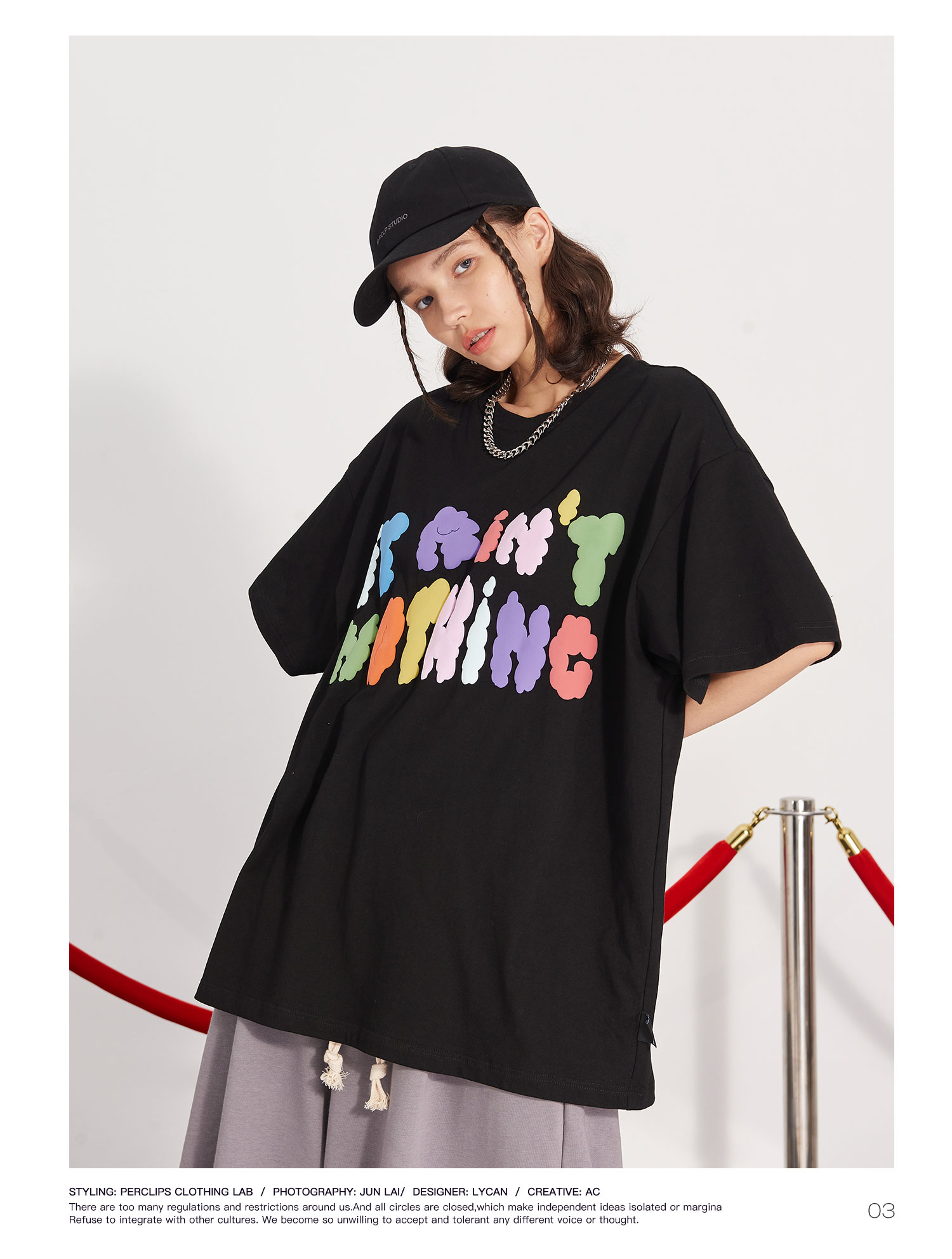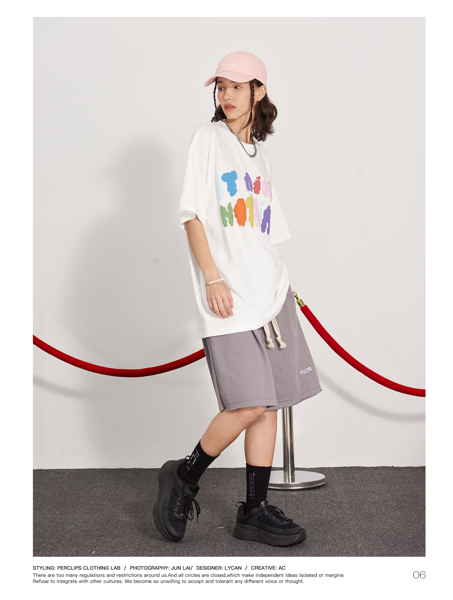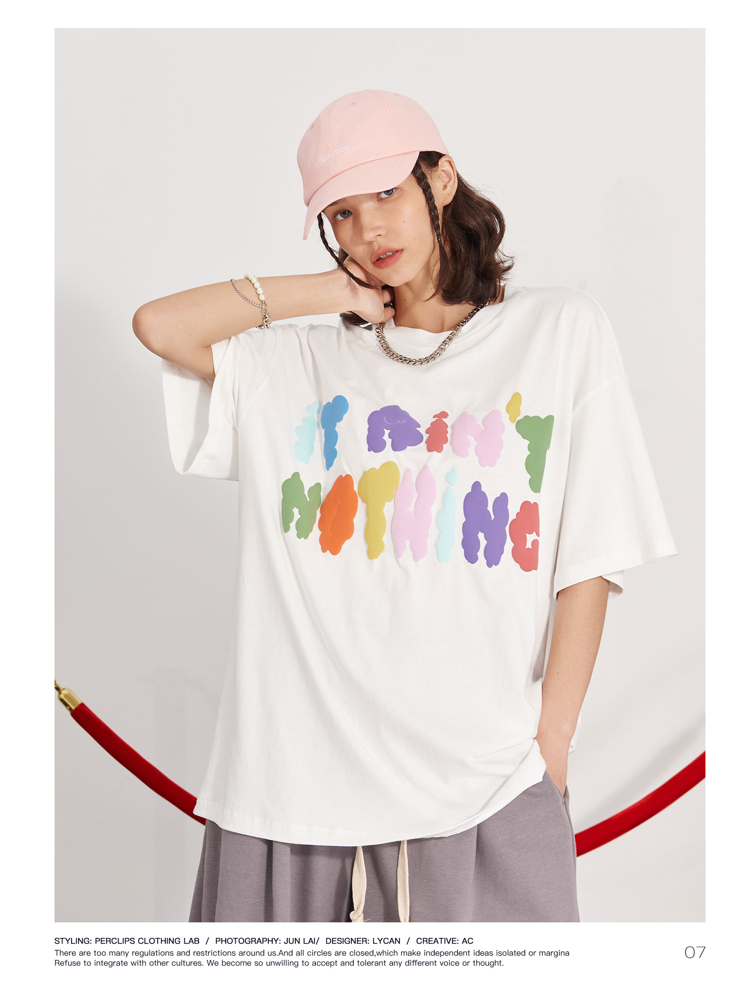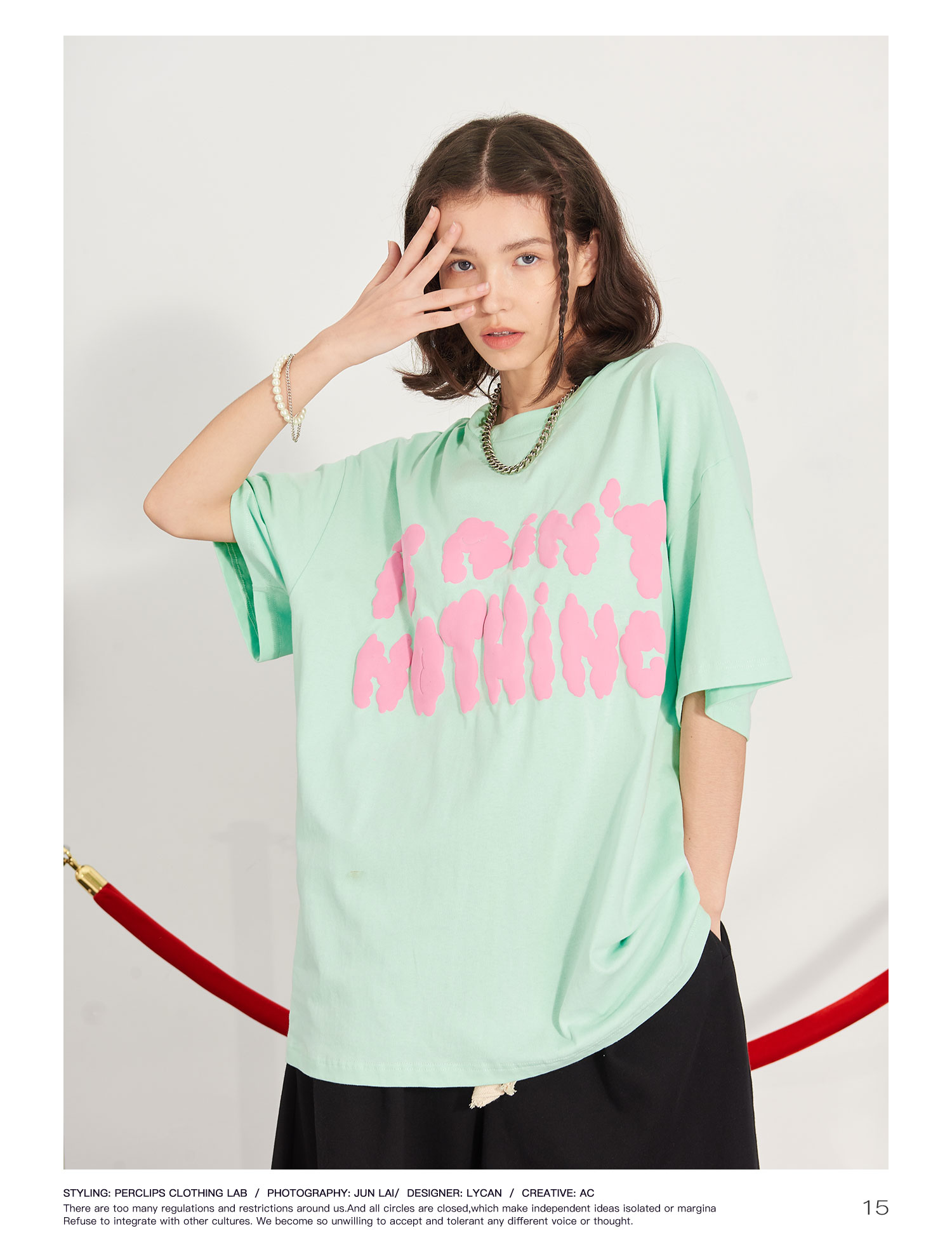 PCLP(PERCLIPS) 云朵发泡字母潮流短袖男国潮牌纯棉宽松半袖t恤男