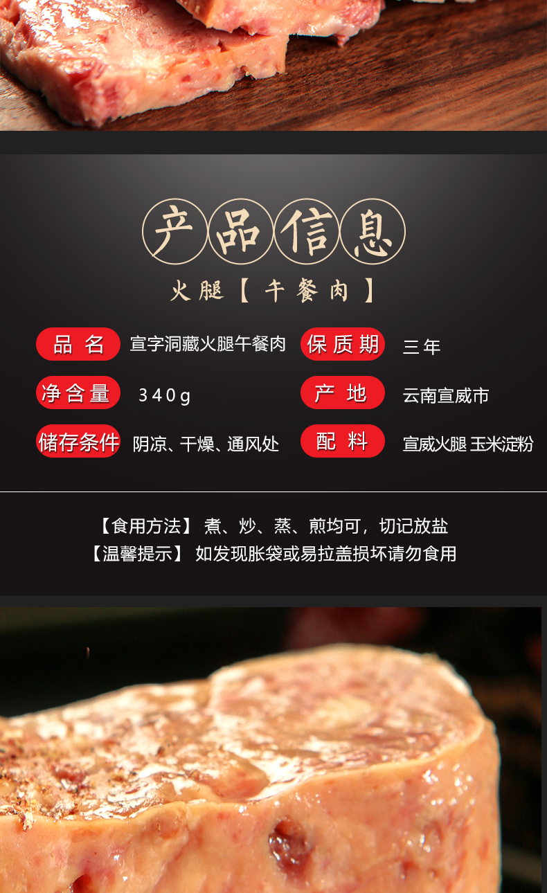 宣字牌洞藏火腿午餐肉罐头340g/罐