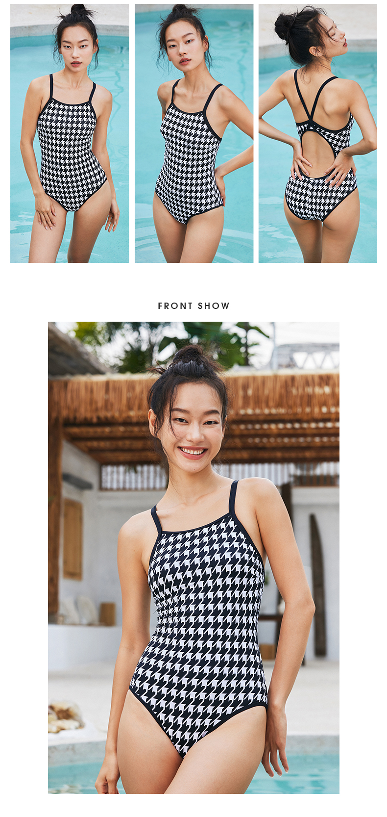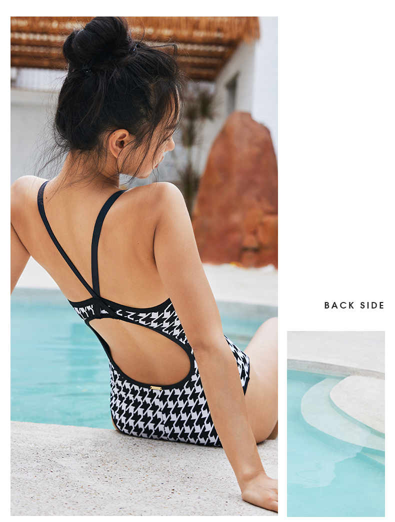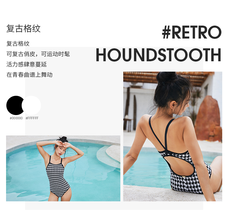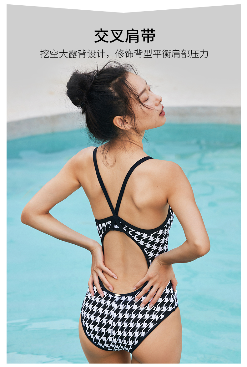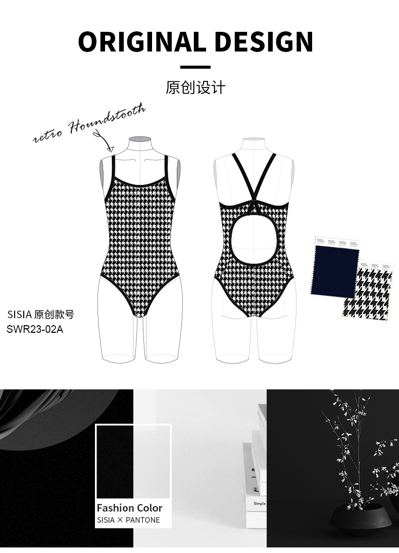 sisia泳衣女游泳馆专用千鸟格黑色竞速连体泳衣女款双面穿游泳衣