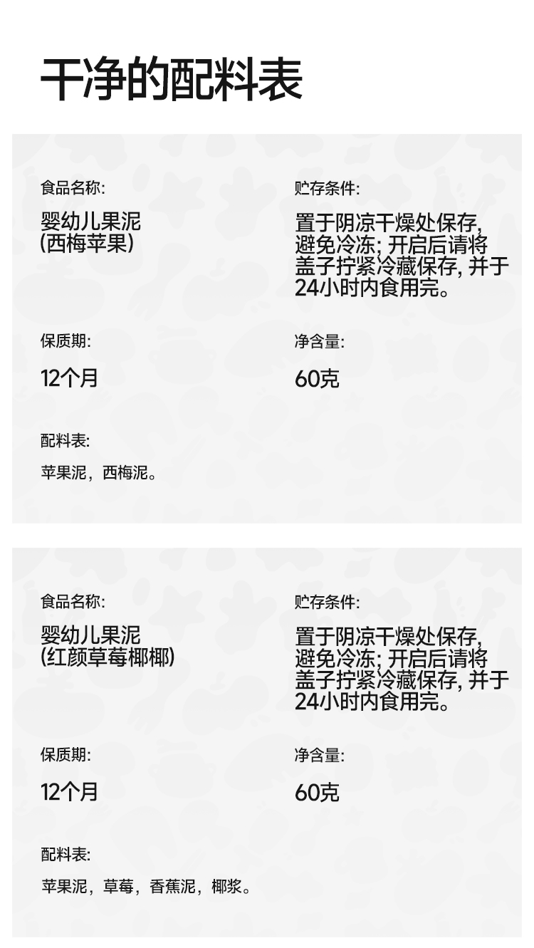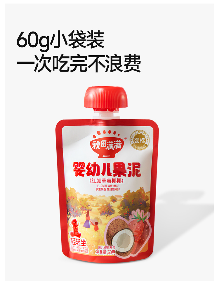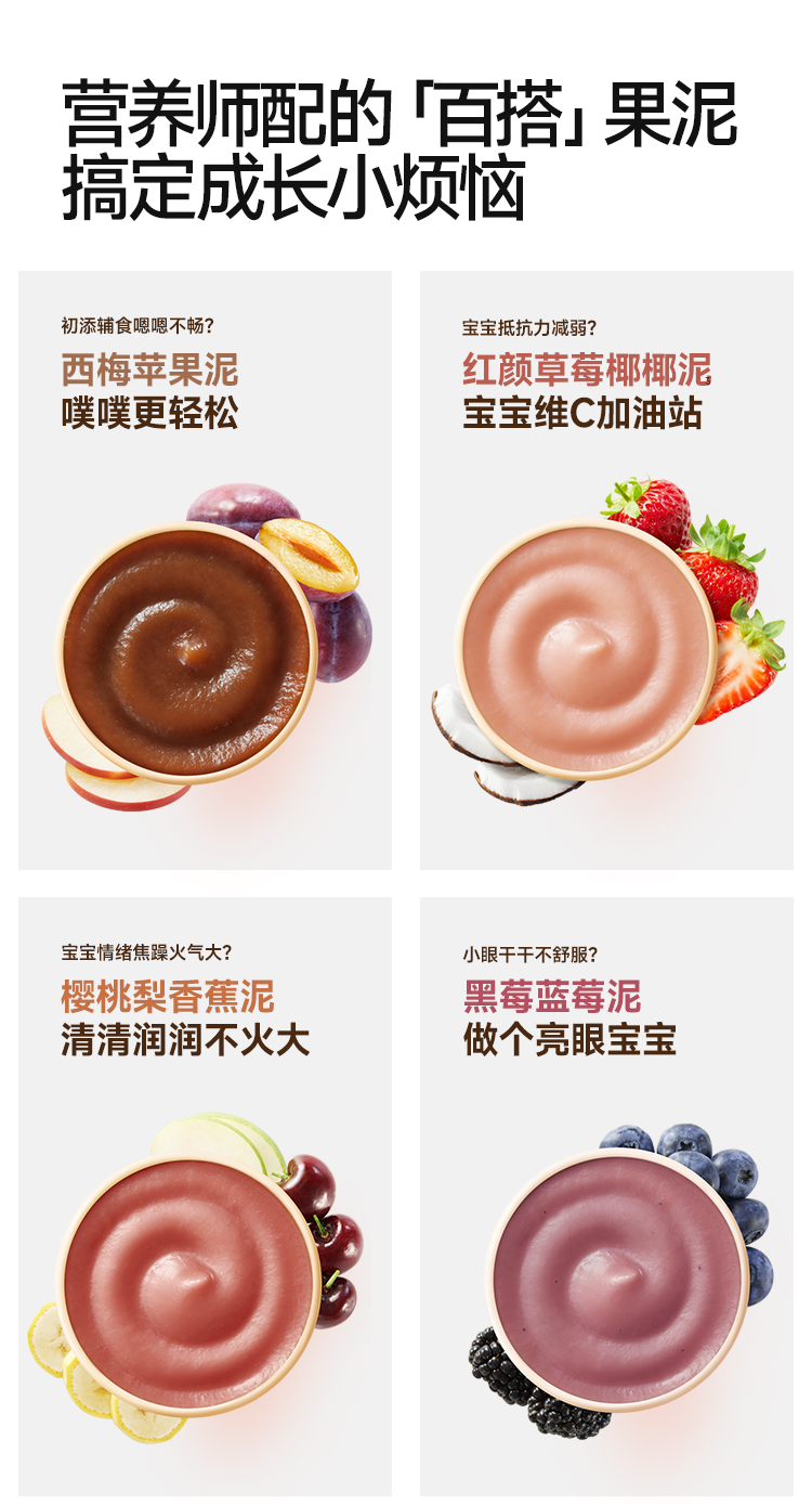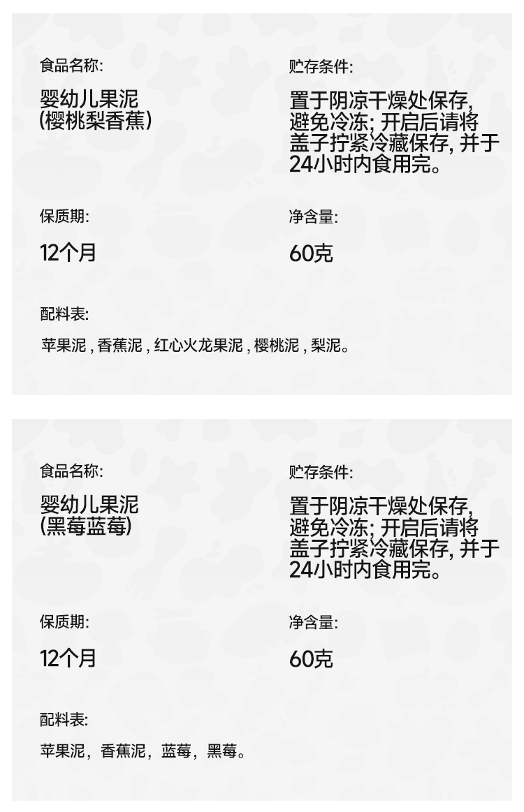 【99元任选7件】【新老包装交替发货】婴幼儿果泥(草莓椰椰/西梅苹果/黑莓蓝莓/樱桃梨香蕉)60g *2,叠加店铺满赠,不叠加店铺满减和会员折扣