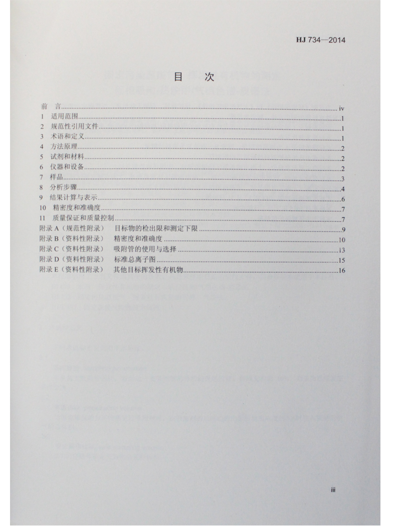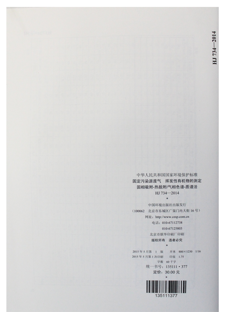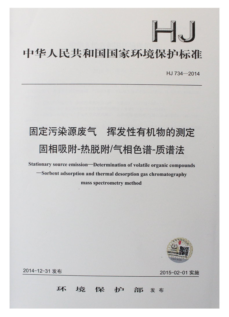 HJ 734—2014固定污染源废气 挥发性有机物的测定 固相吸附-热脱附/气相色谱-质谱法