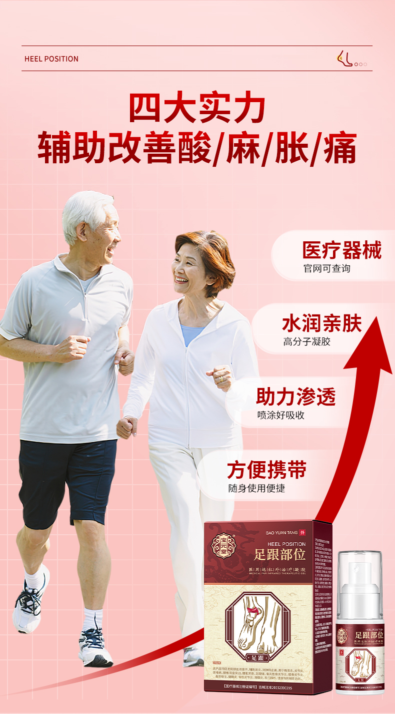 宝元堂足跟远红外治疗凝胶改善足跟痛去脚后跟疼痛脚底骨刺喷雾剂