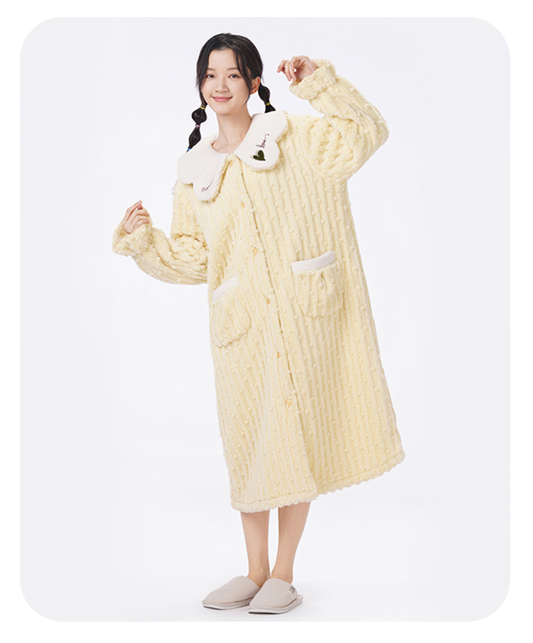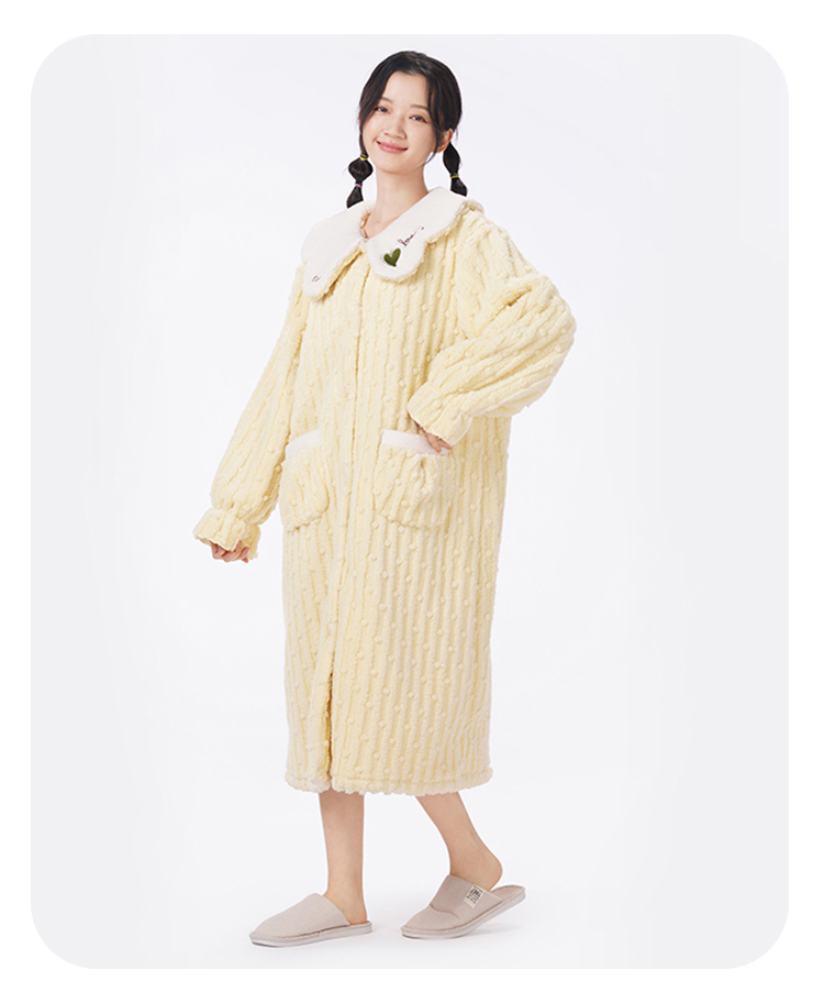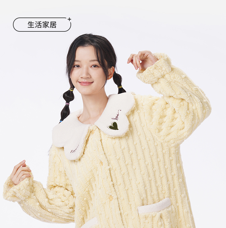 都市丽人睡衣生活家居单件袍家居服长毛绒提花厚女士法兰绒单件袍LHT7B1