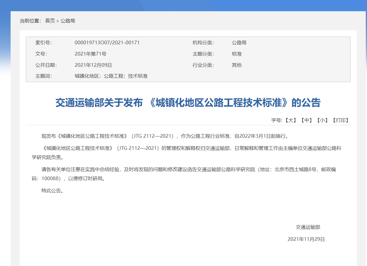 书名:城镇化地区公路工程技术标准(JTG 2112—2021)