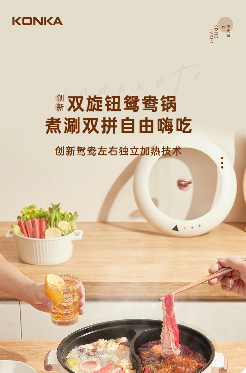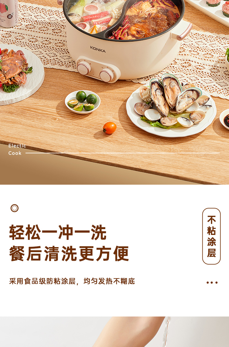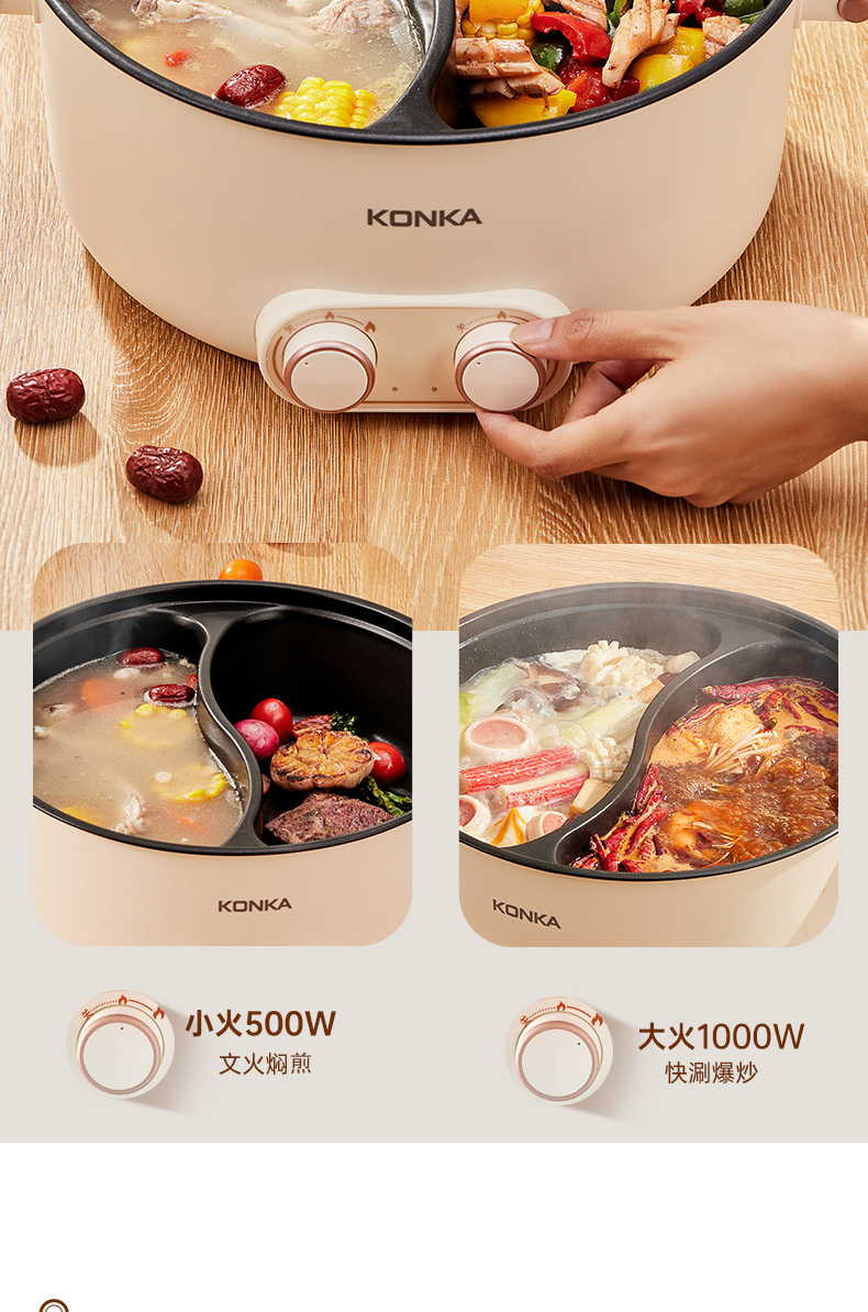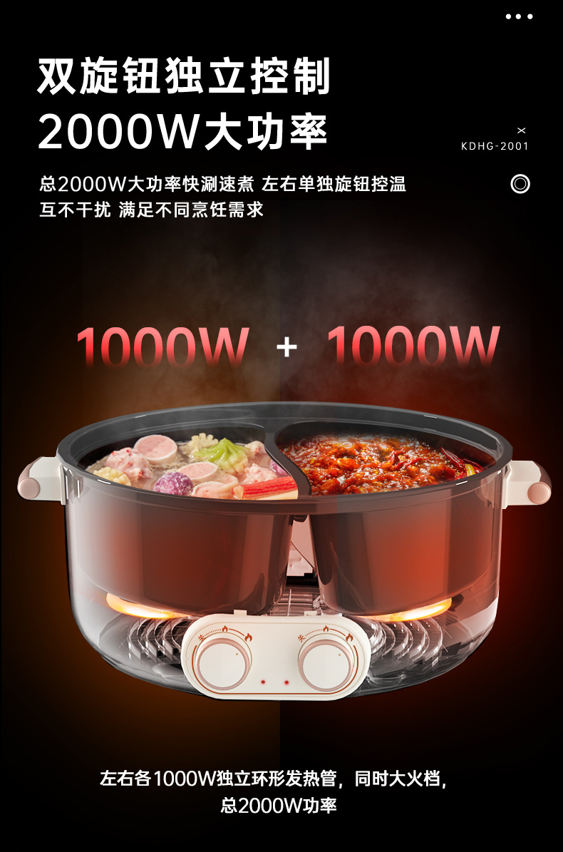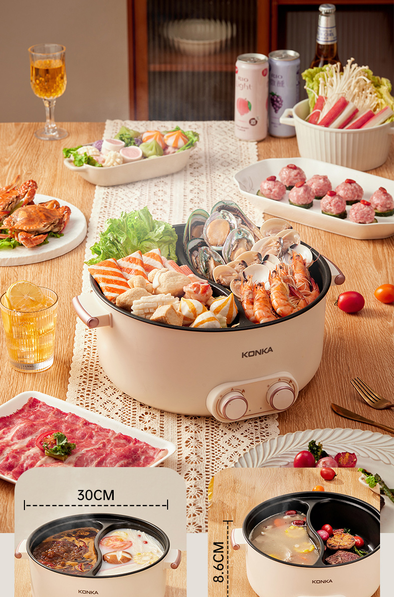 【自营】康佳(KONKA)KDHG-2001家用鸳鸯电火锅5L大容量 多用途锅料理锅电热锅 电锅煎烤涮肉一体锅 双边独立控温