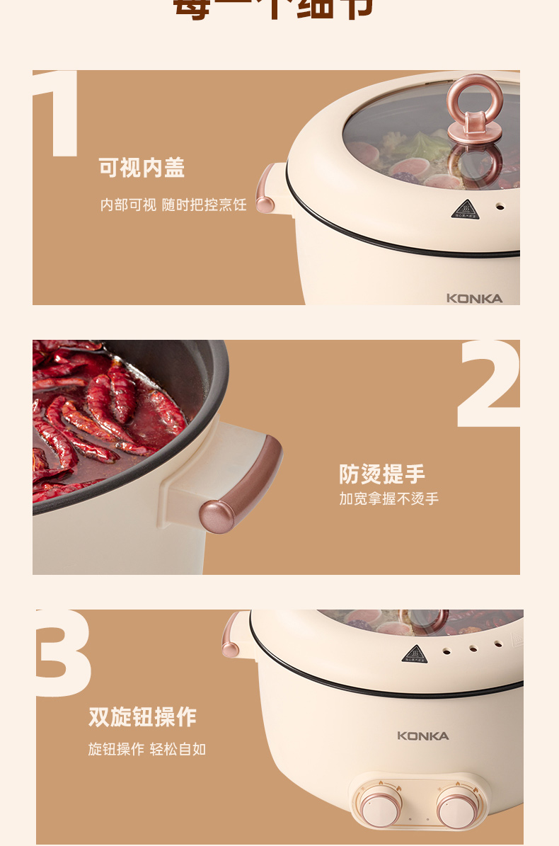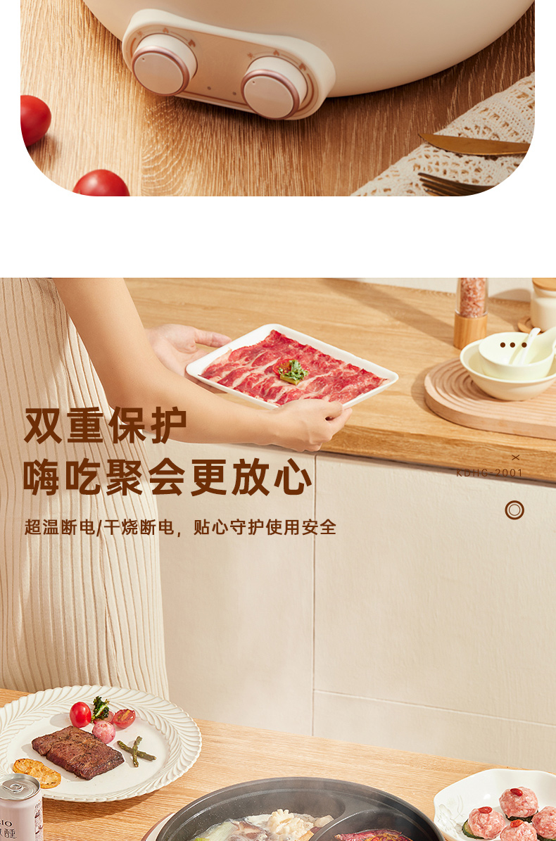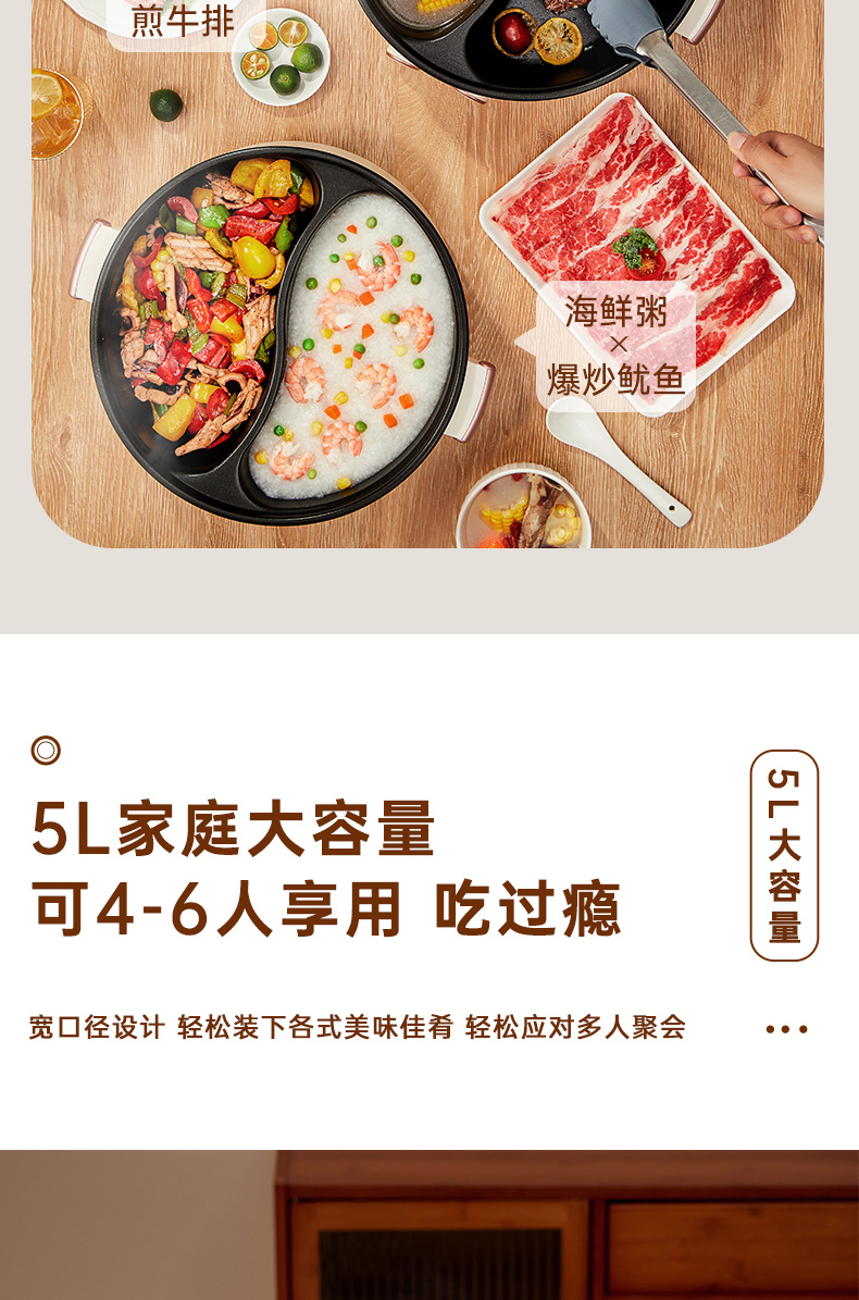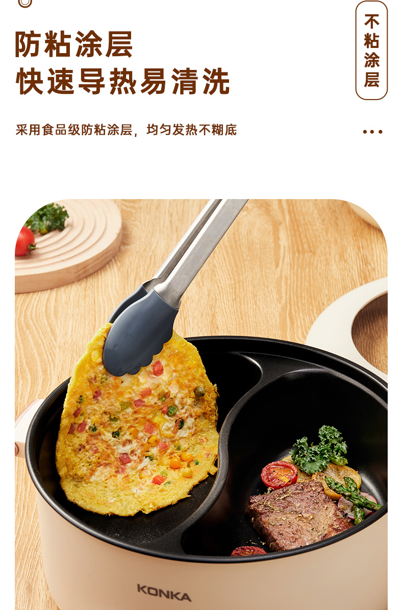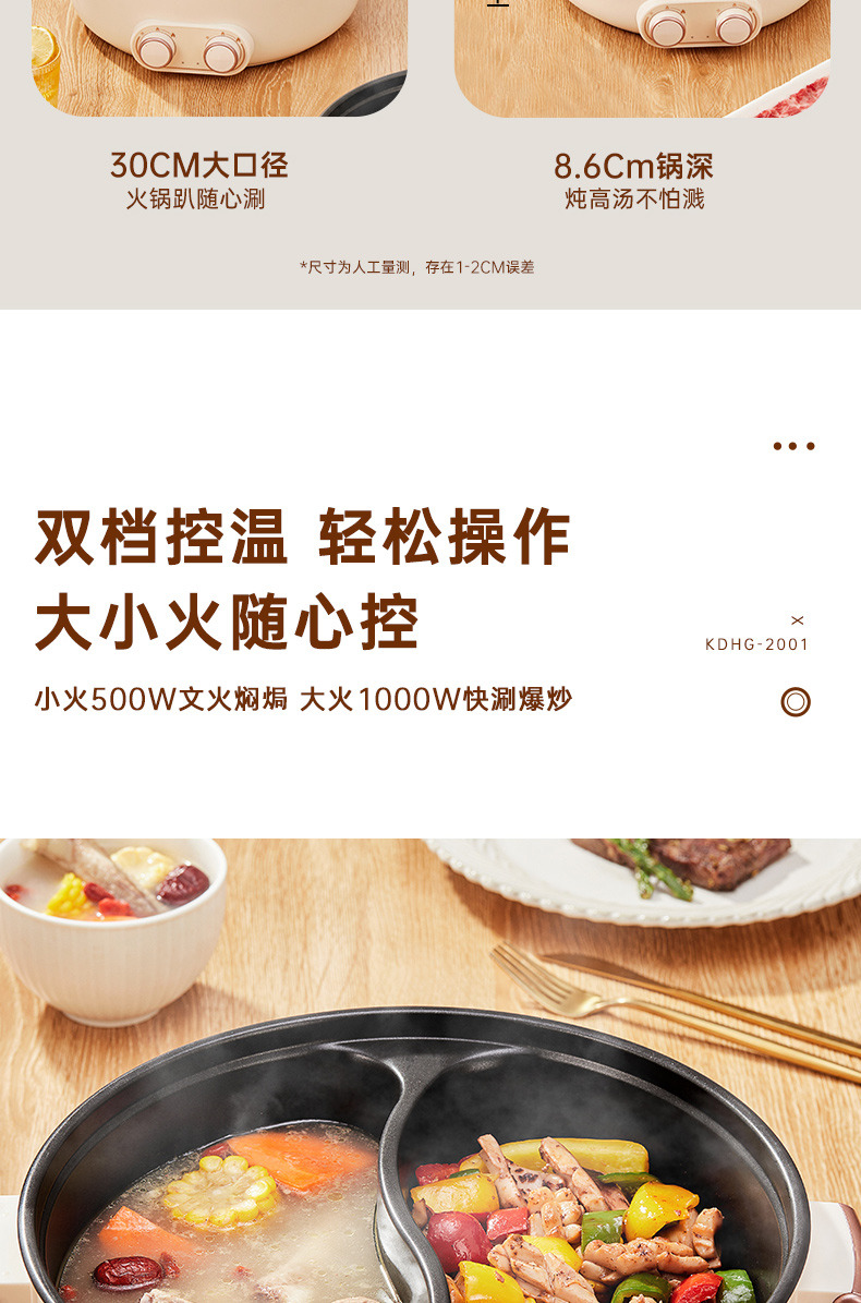 【自营】康佳(KONKA)KDHG-2001家用鸳鸯电火锅5L大容量 多用途锅料理锅电热锅 电锅煎烤涮肉一体锅 双边独立控温