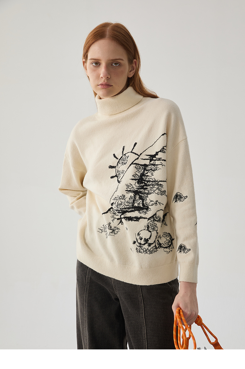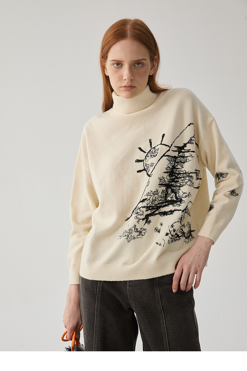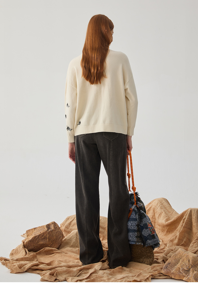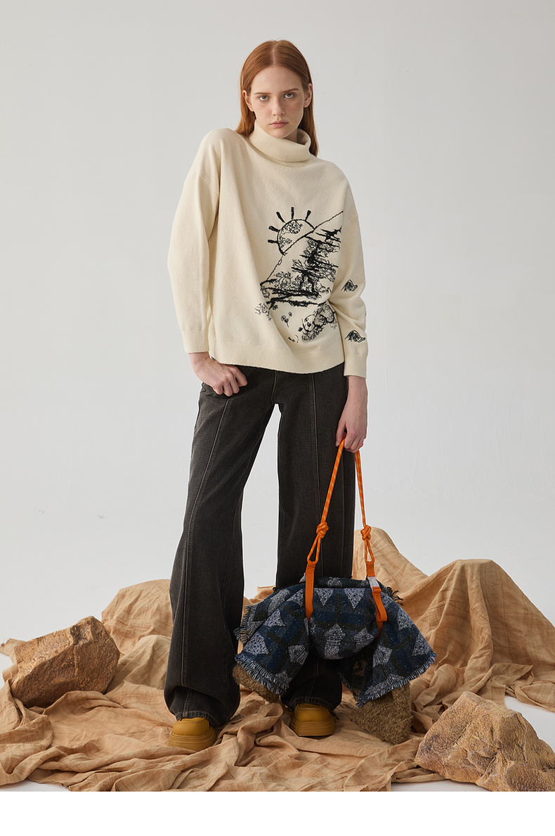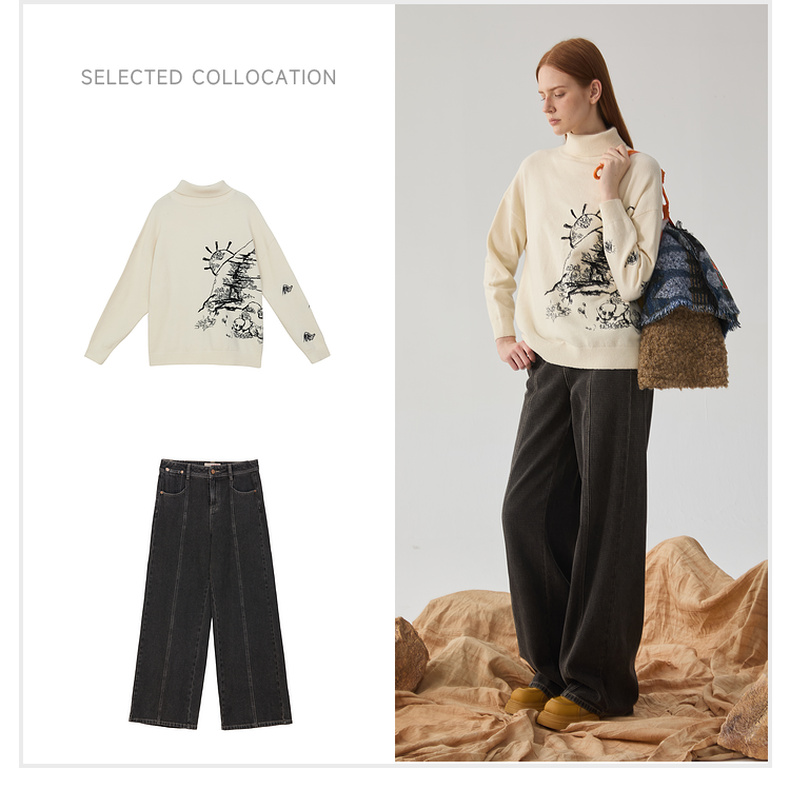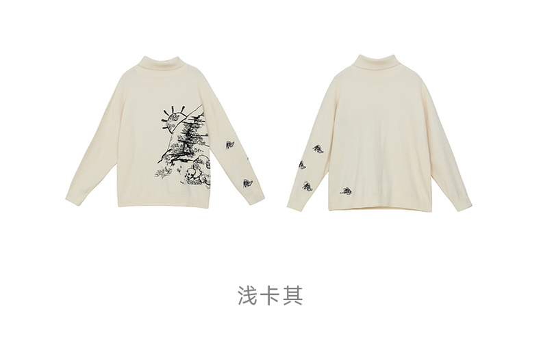 谜底高领毛衣女2024冬季新品复古风绣花百搭套头针织衫244MZ1878