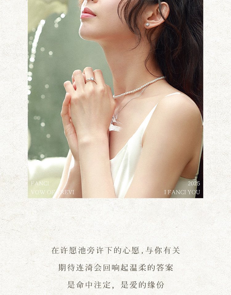 FANCI范琦始于2012年,以珠宝表达内心为初衷,聚焦不同亲密关系情感表达,联结无形情感,以情感符号「I FANCI U」传情达意,诠释“恋爱戴范琦,起点是你,终点亦是你”始终如一的恋爱价值观。