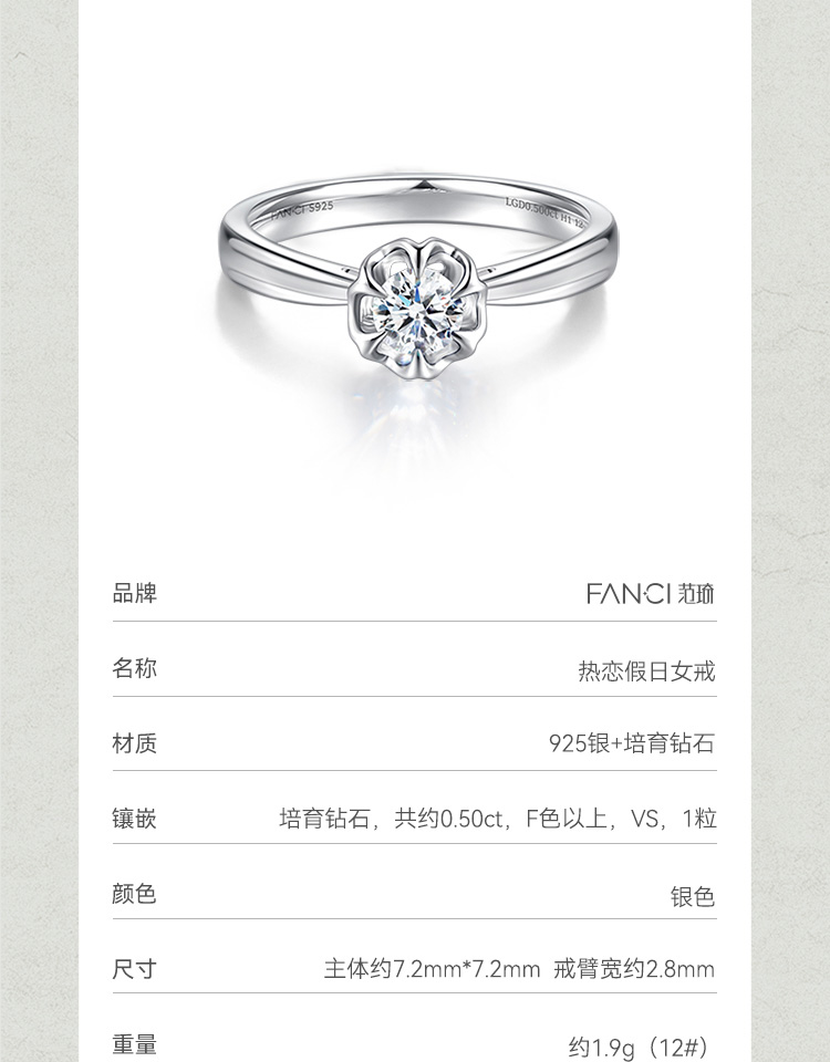 Fanci范琦 许愿池系列 热恋假日50分【培育】钻石戒指