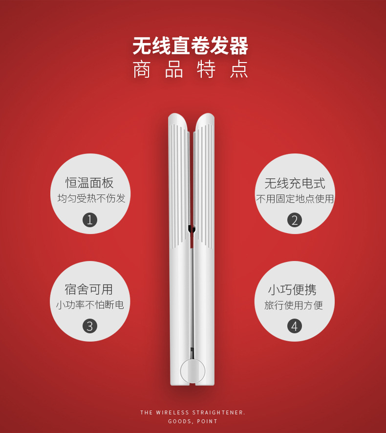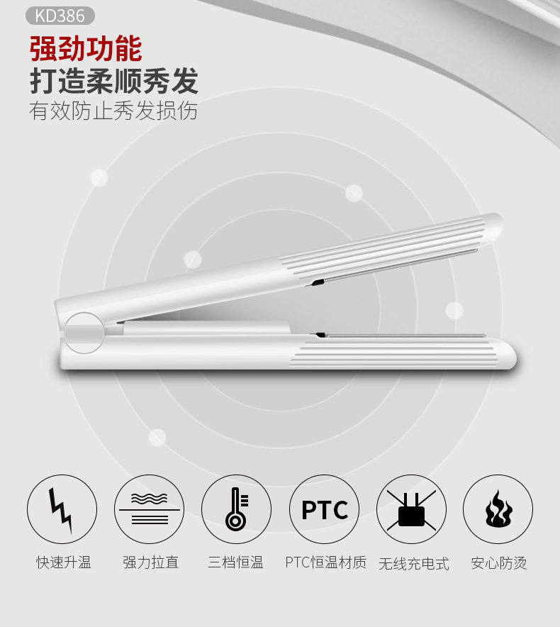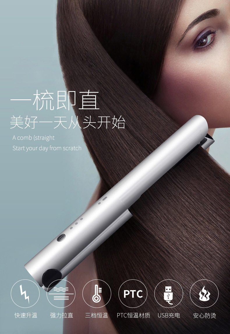 金稻无线直板夹卷发迷你发器usb夹板内扣刘海便携宿舍女不伤发