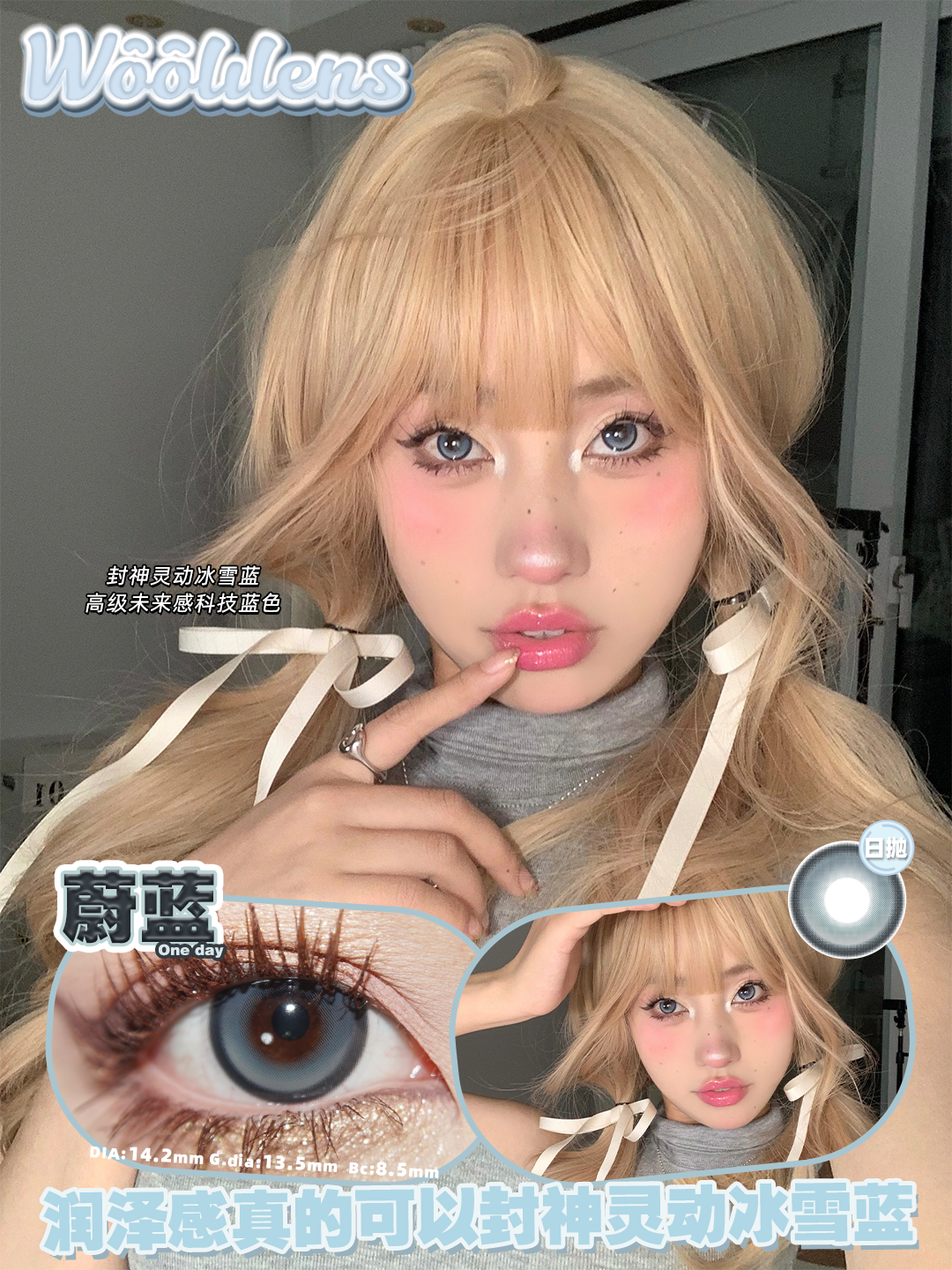 Woolilens 蔚蓝 日抛 十片 14.2mm 参考着色 13.5mm 基弧 8.5 含水 50% 新锐国货