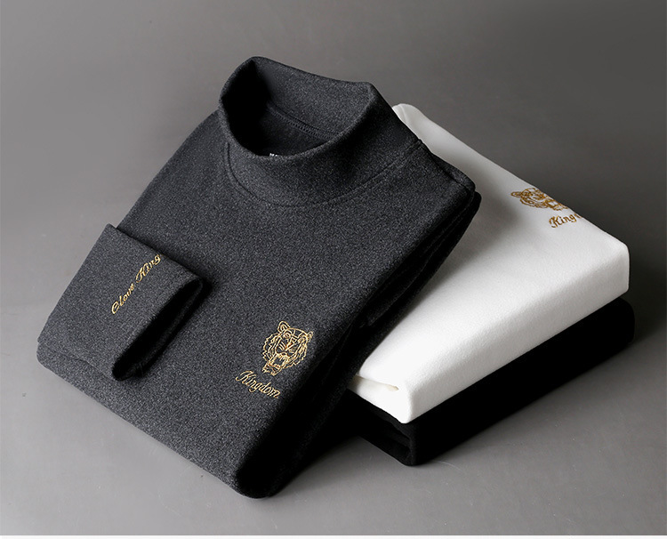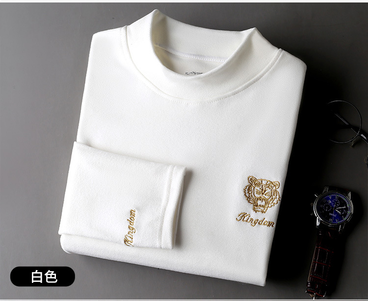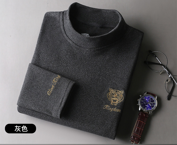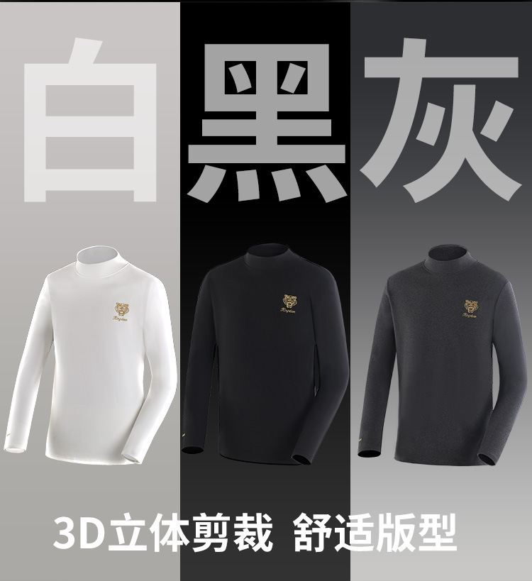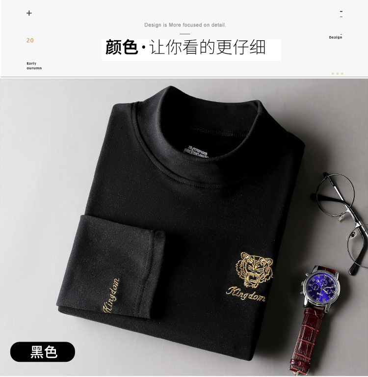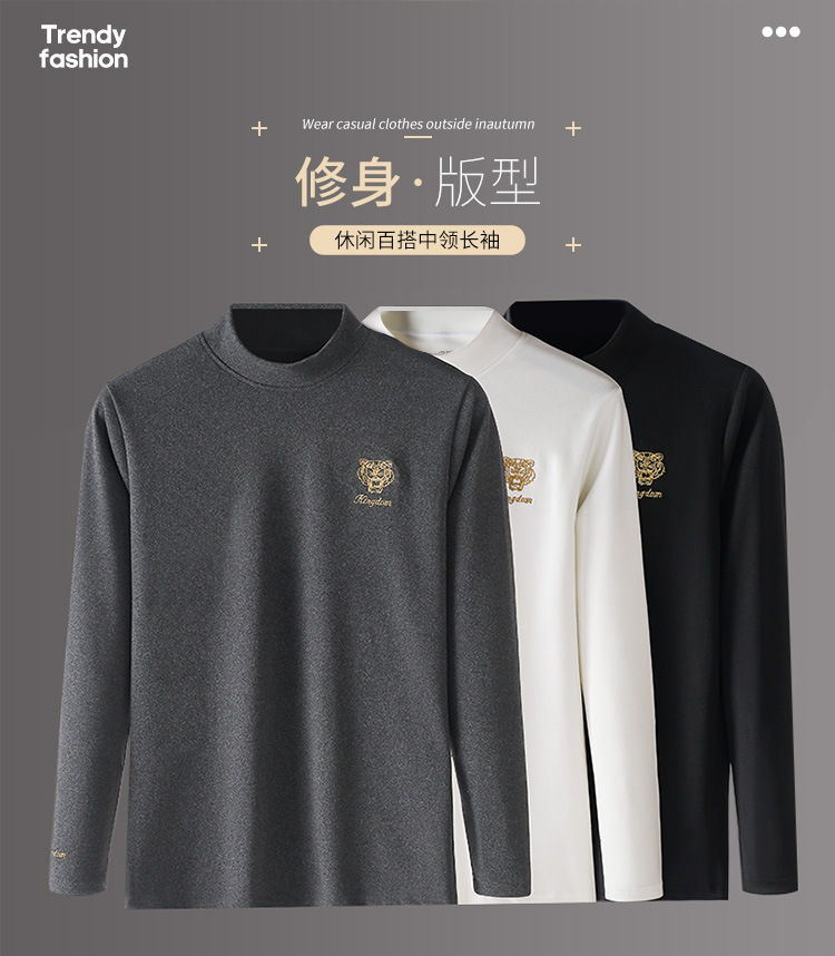 保暖上衣外穿男士半高领双面磨毛长袖t恤修身中领秋冬打底衫秋衣