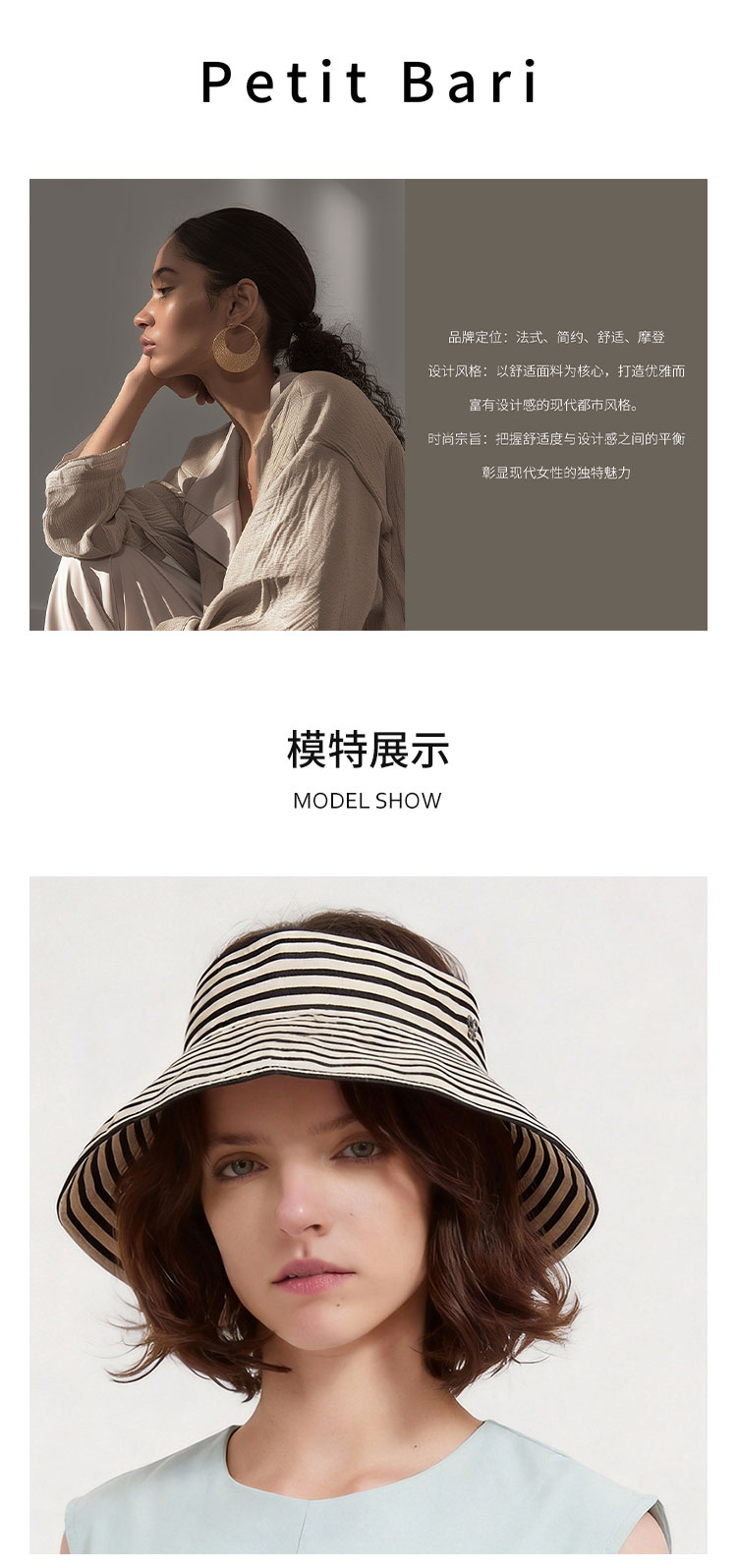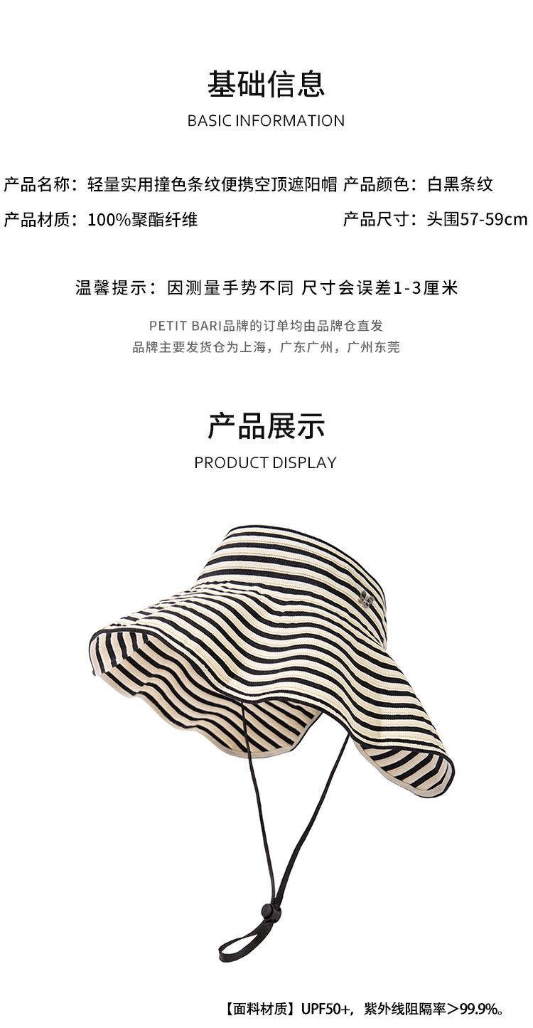 【2件9折】【Petit Bari】Petit Bari轻量实用撞色条纹便携空顶防晒帽