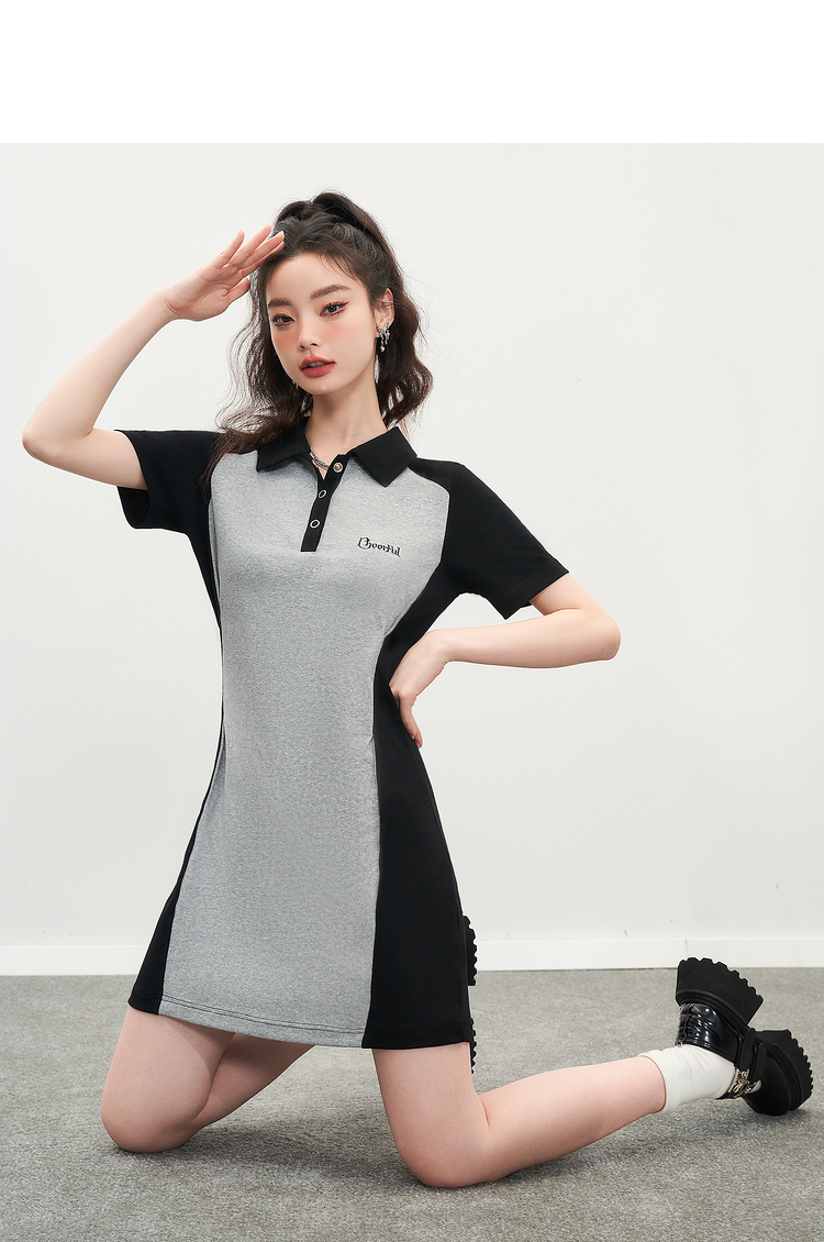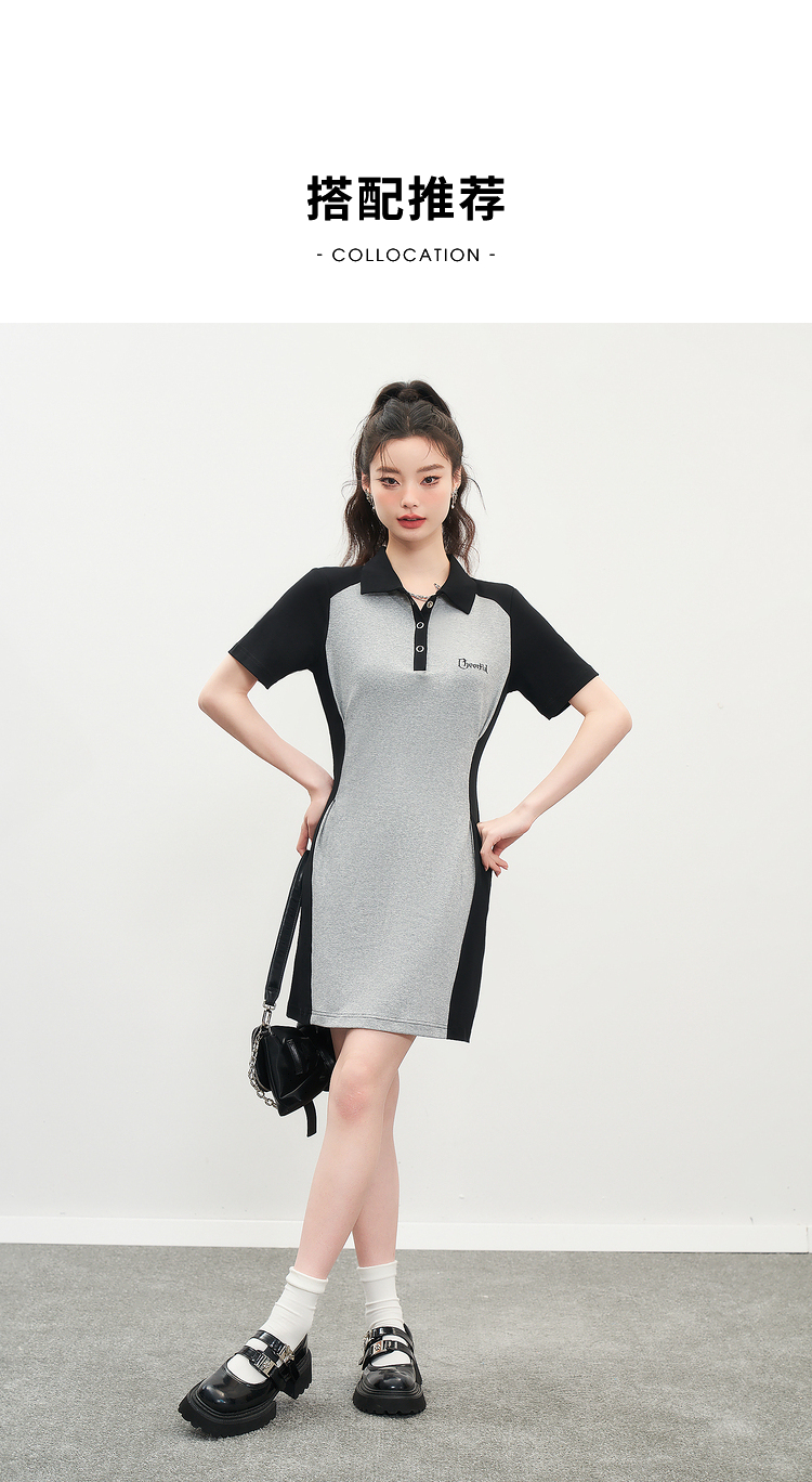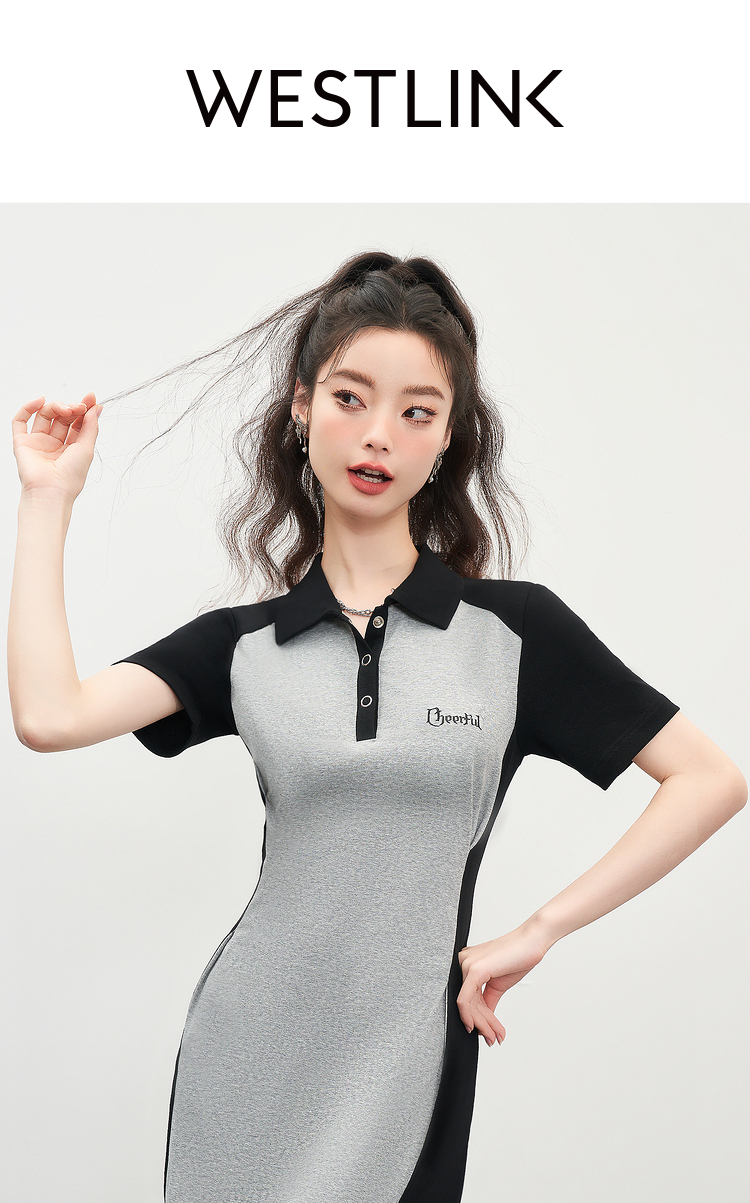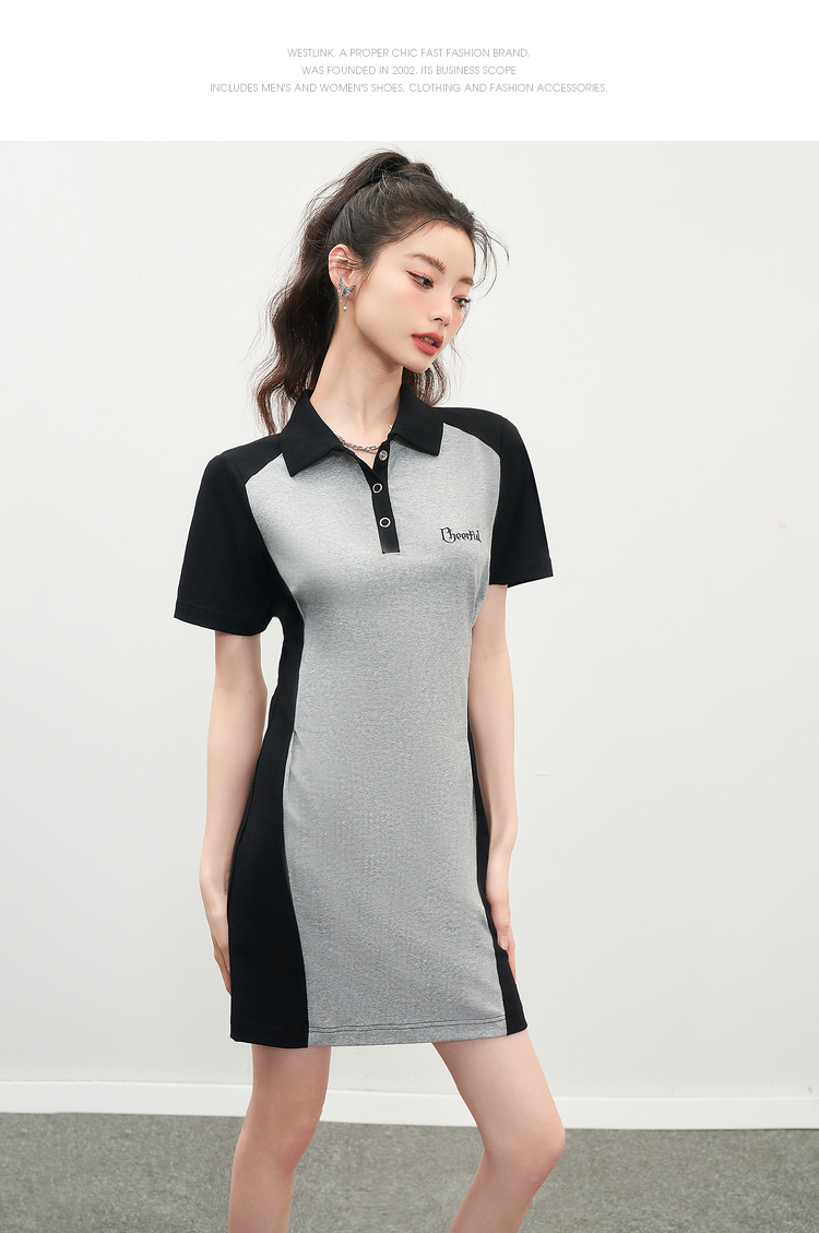 西遇学院风连衣裙女夏季新款POLO领收腰显瘦气质修身短裙10930660