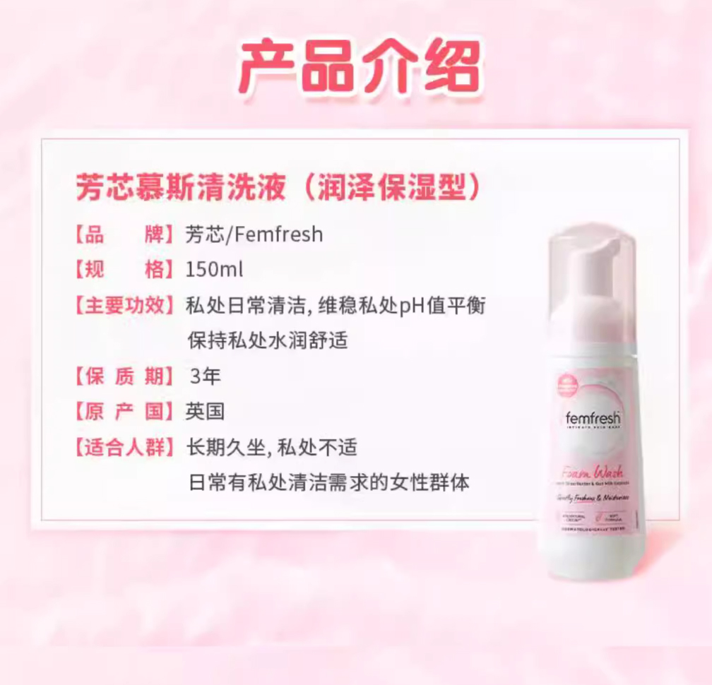 【品名】femfresh芳芯慕斯清洗液/私处清洗液150ml