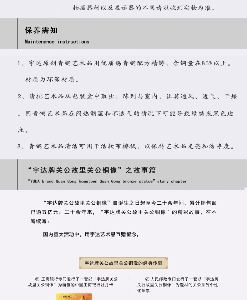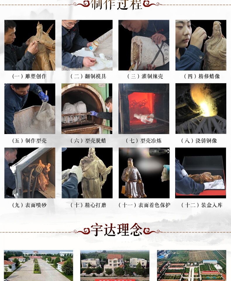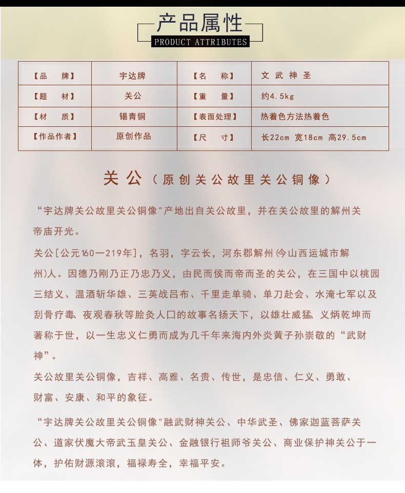宇达青铜全铜摆件《文武神圣》铜工艺品 创意 关公 家居装饰摆件
