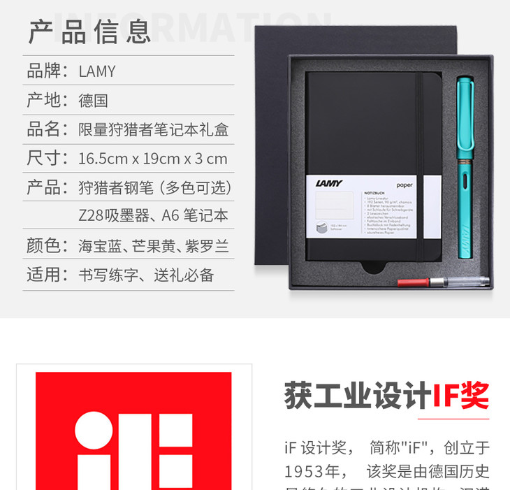 凌美LAMY钢笔+笔记本礼盒套装 Safari狩猎系列墨水笔+A5笔记本