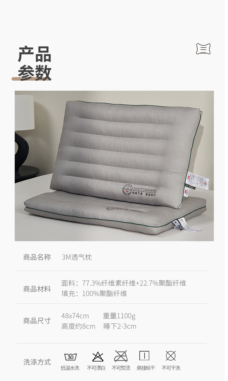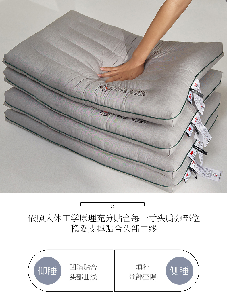 自然醒3M透气低枕柔软舒适护颈椎助睡眠枕头单人一只装家用薄款夏季枕芯XK