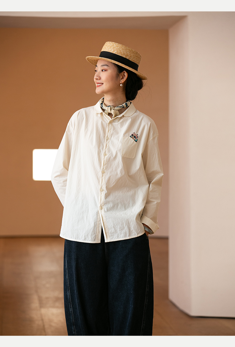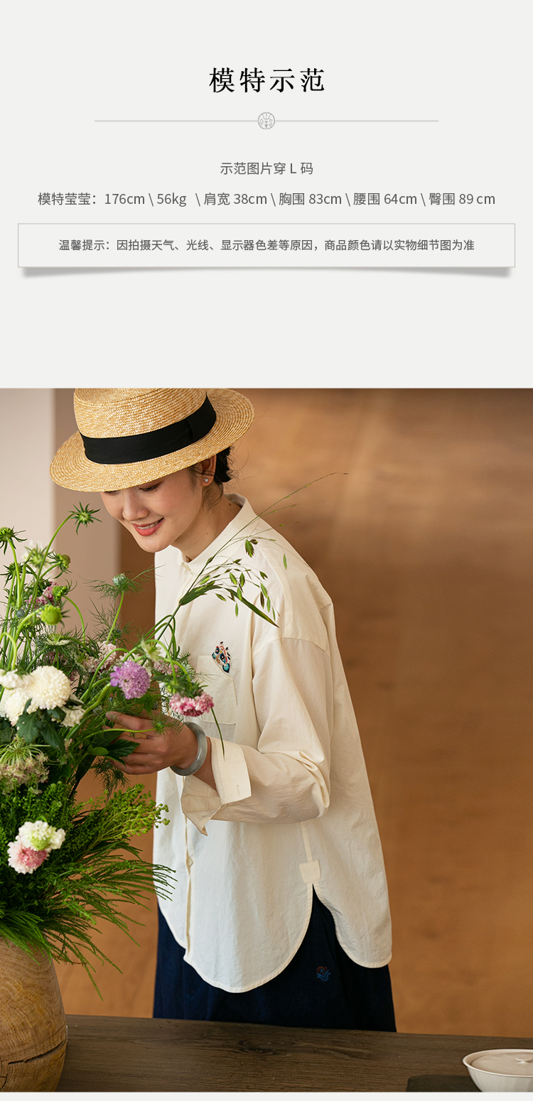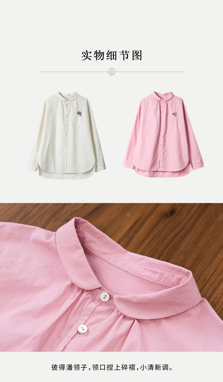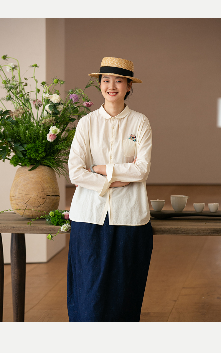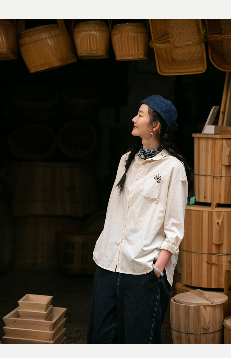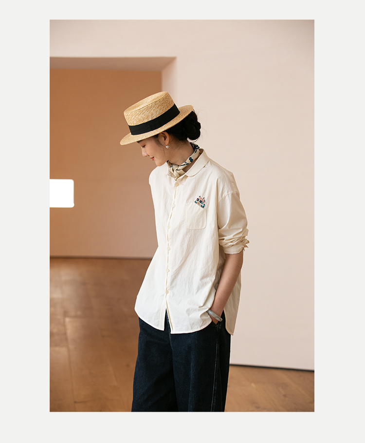 牧衣游原创 汉麻手工刺绣衬衫春季新品通勤宽松文艺百搭 一寸青