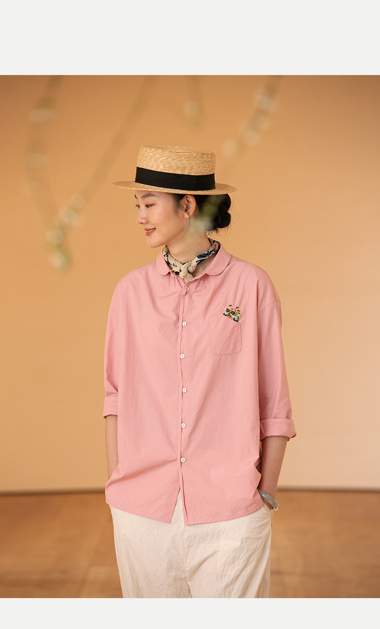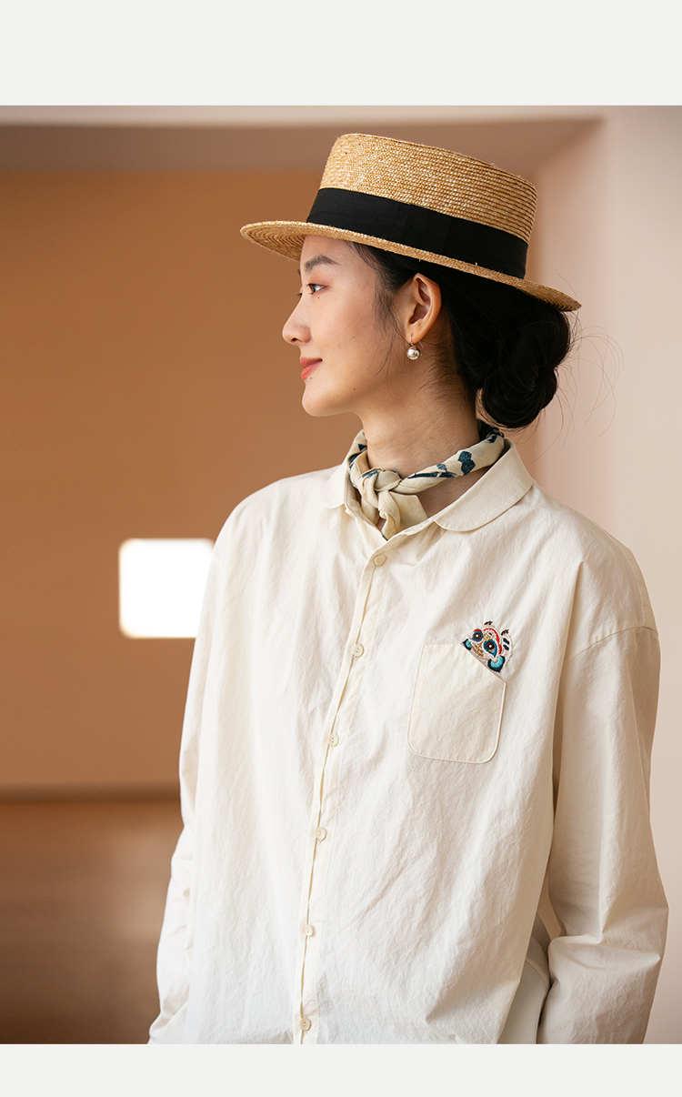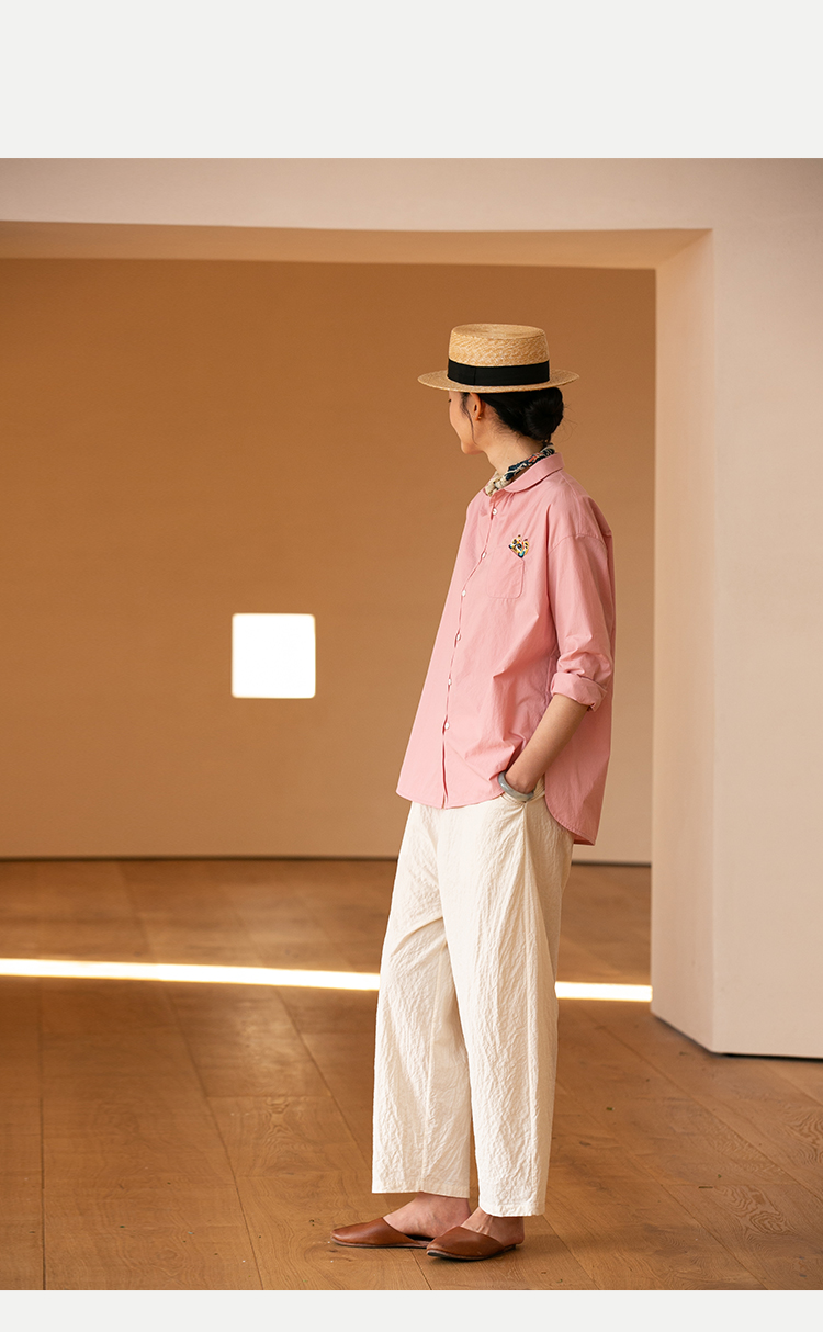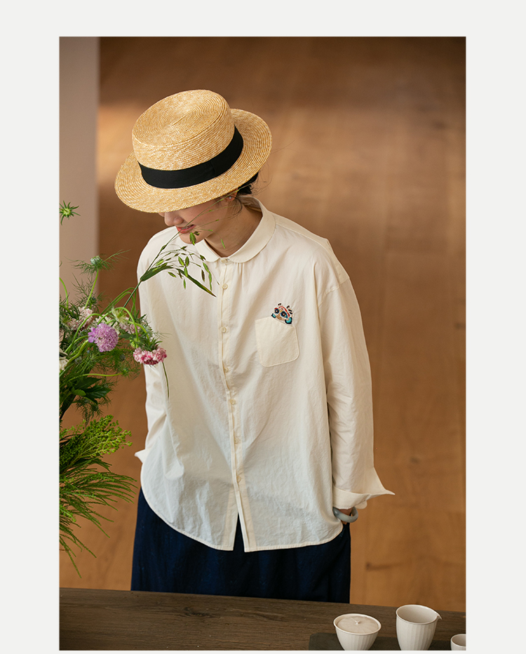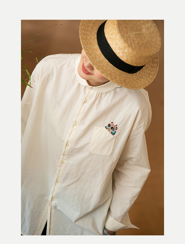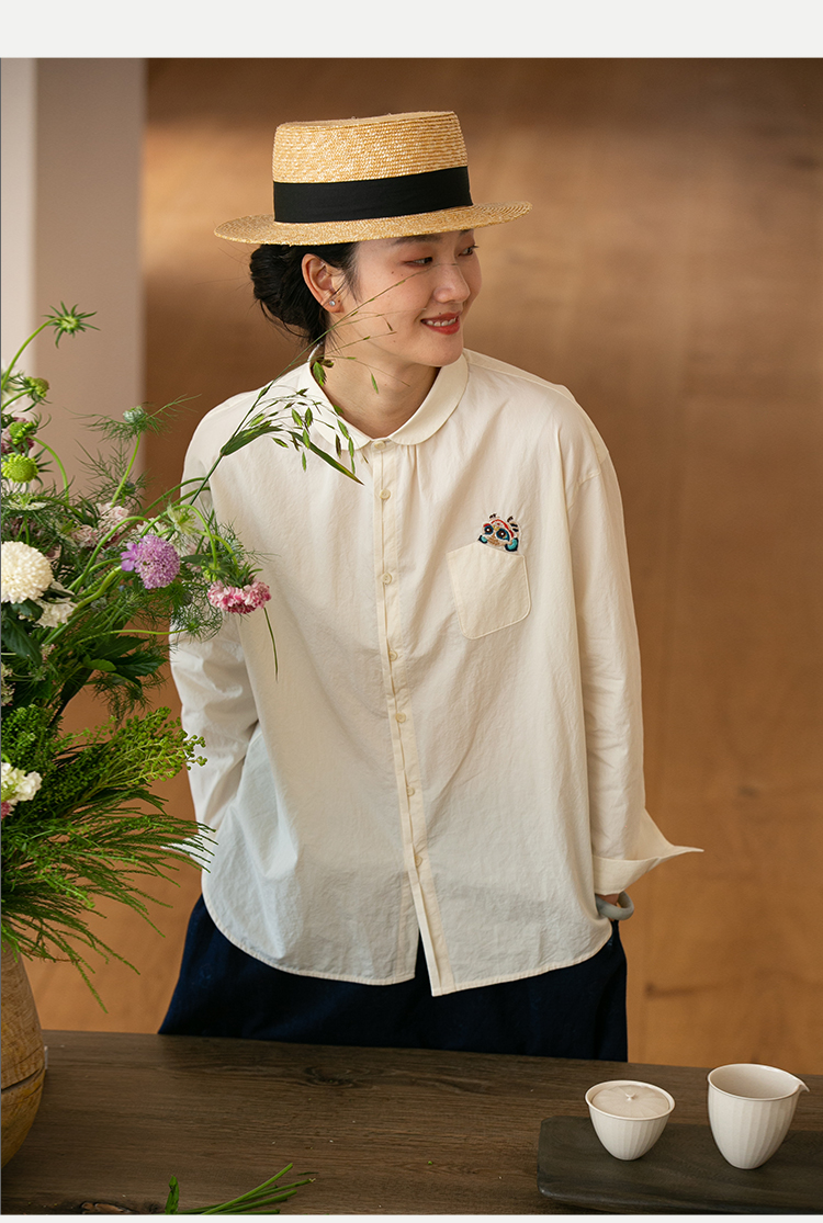 牧衣游原创 汉麻手工刺绣衬衫春季新品通勤宽松文艺百搭 一寸青
