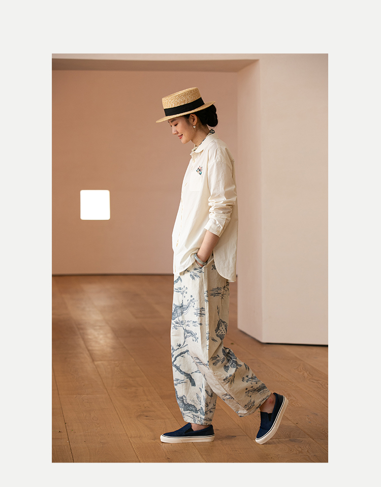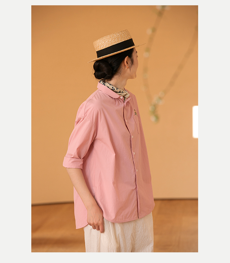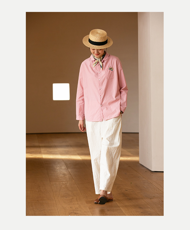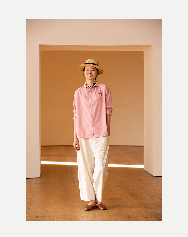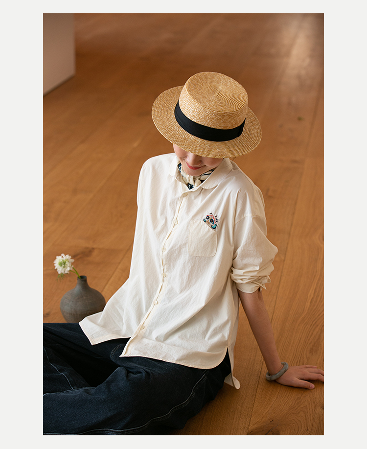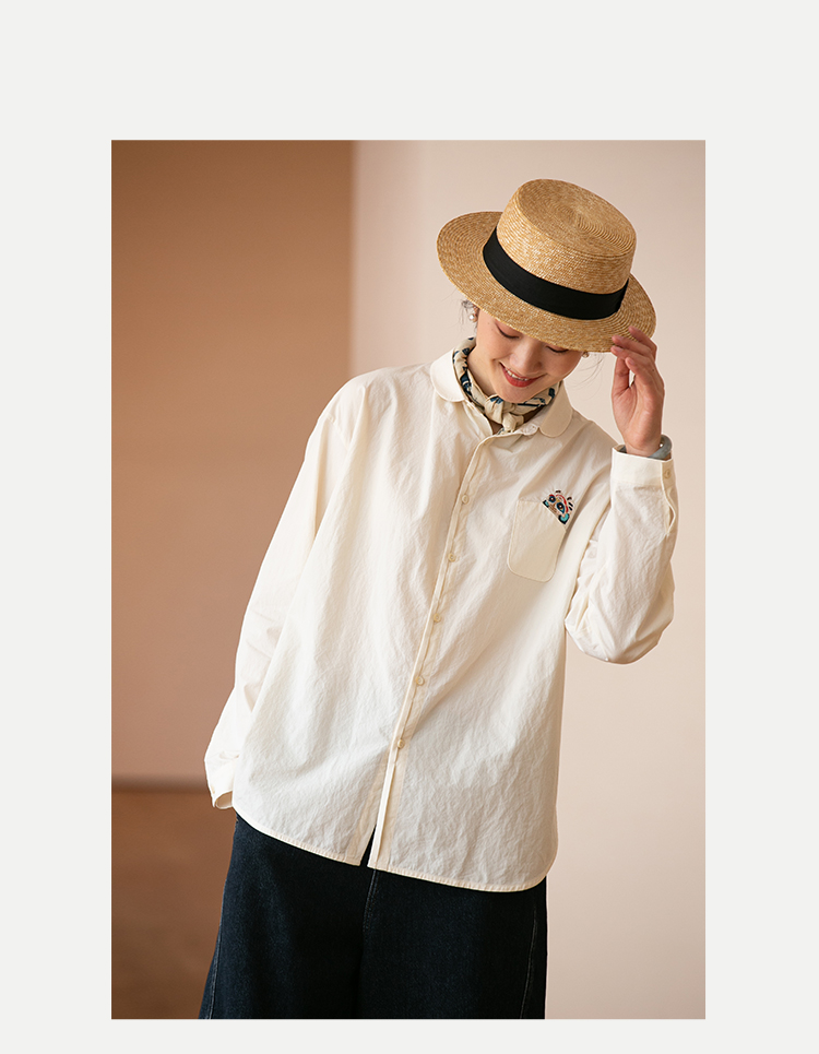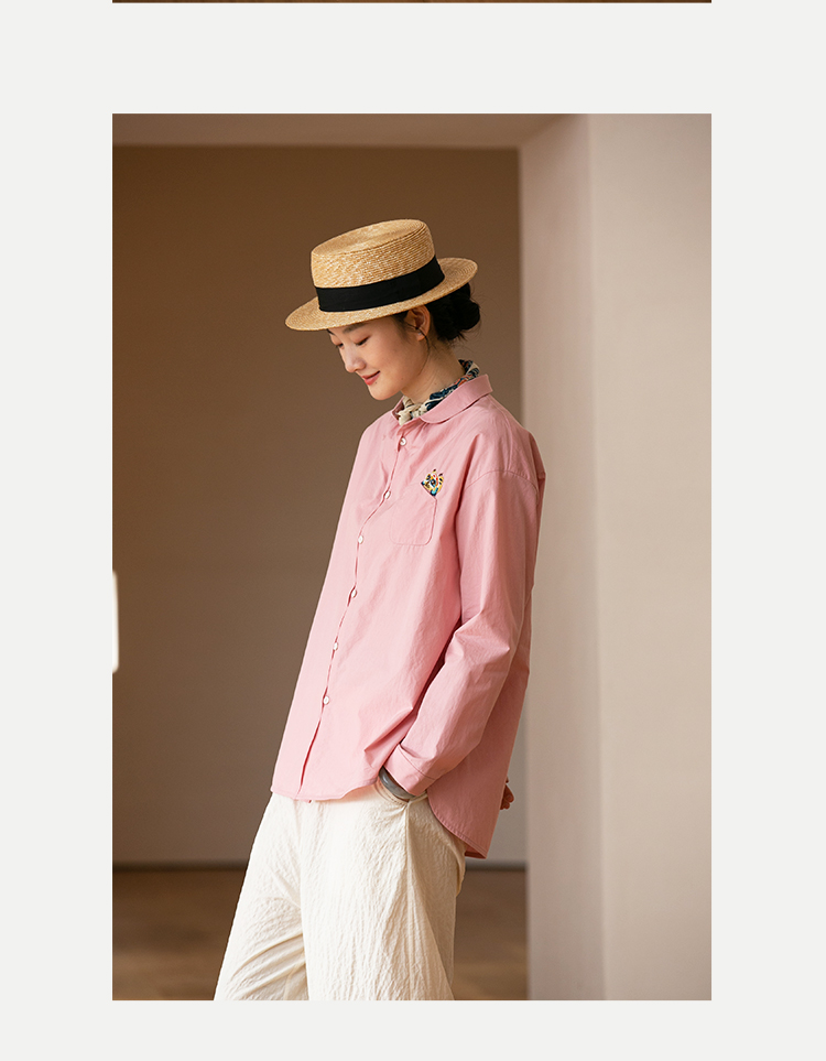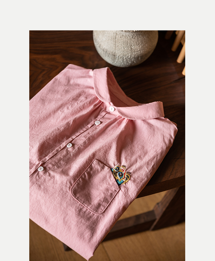 牧衣游原创 汉麻手工刺绣衬衫春季新品通勤宽松文艺百搭 一寸青