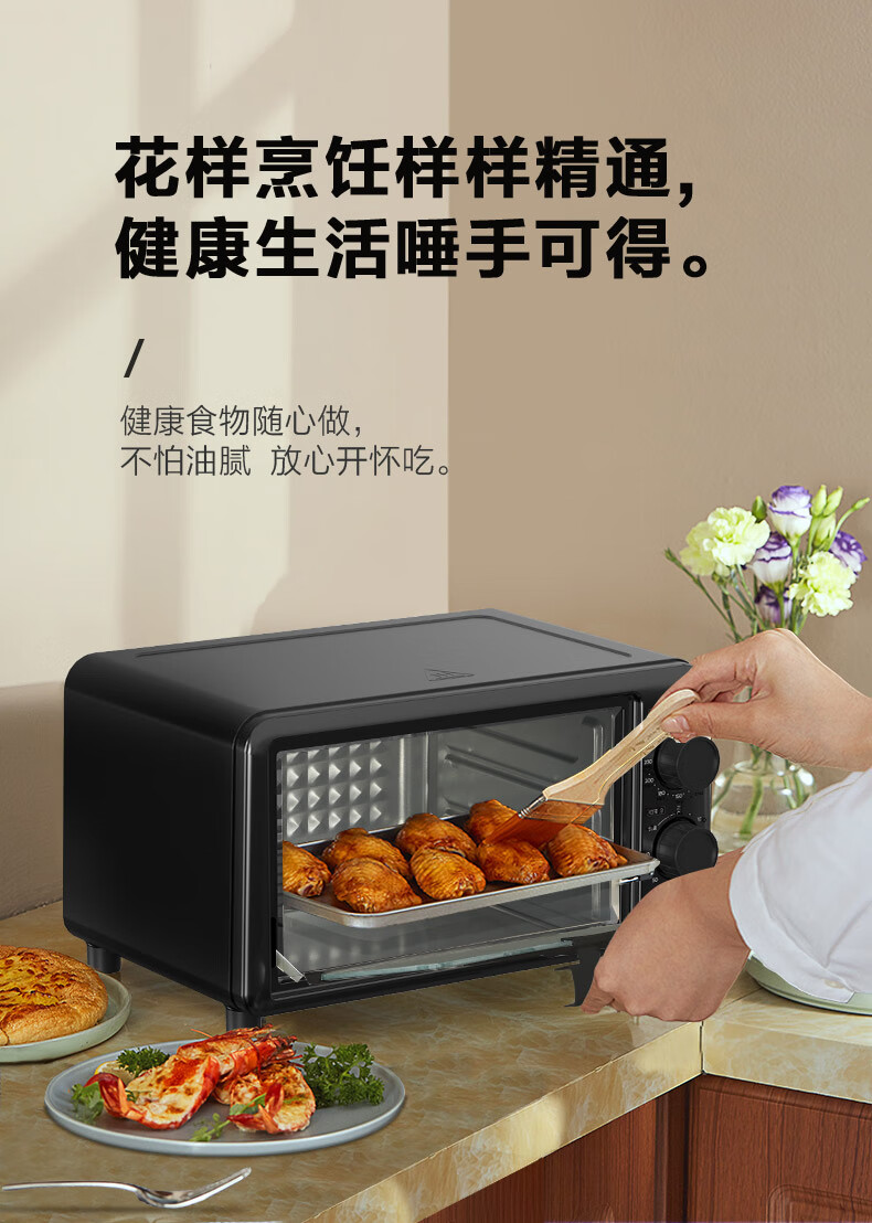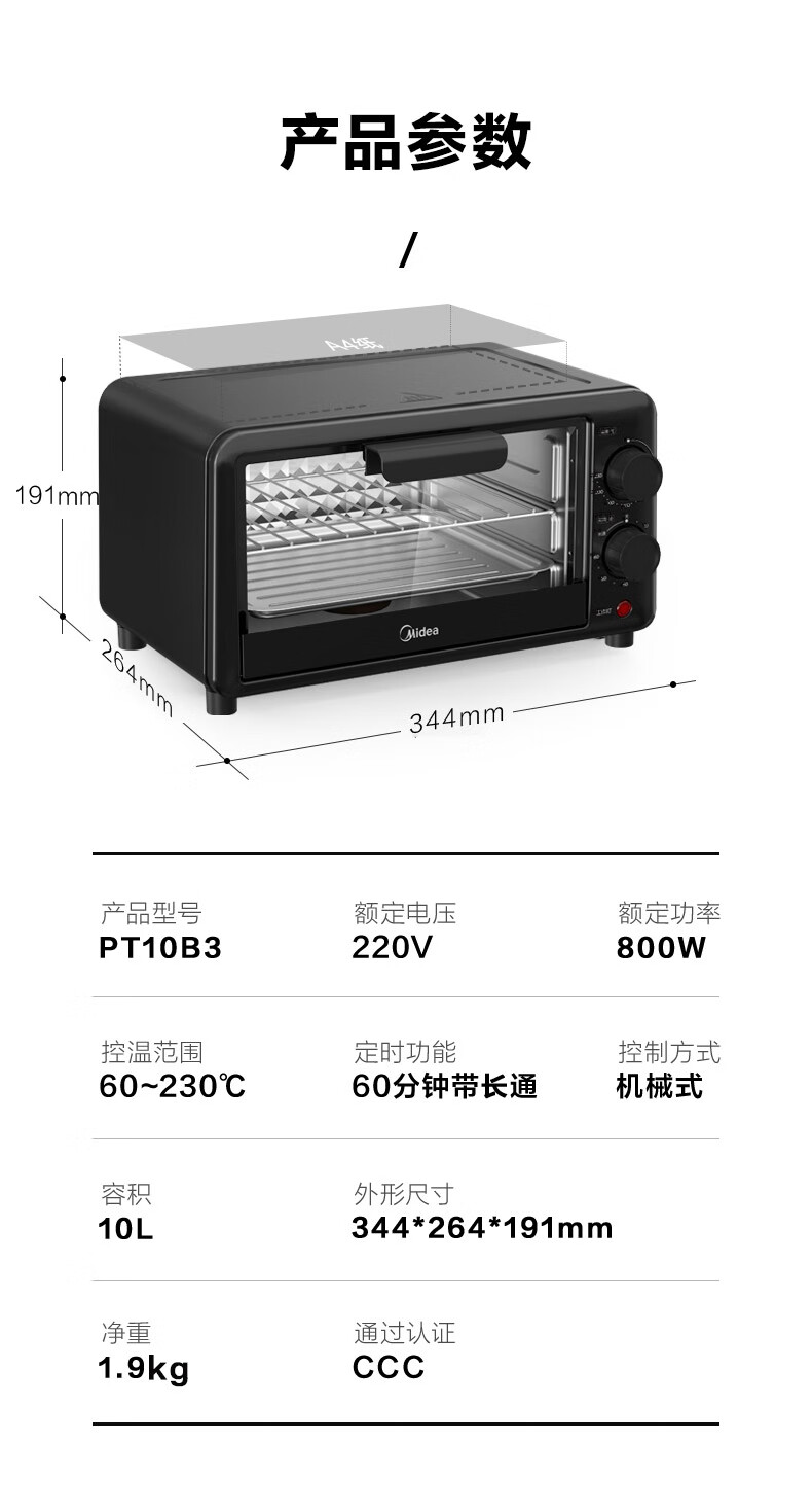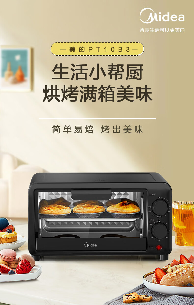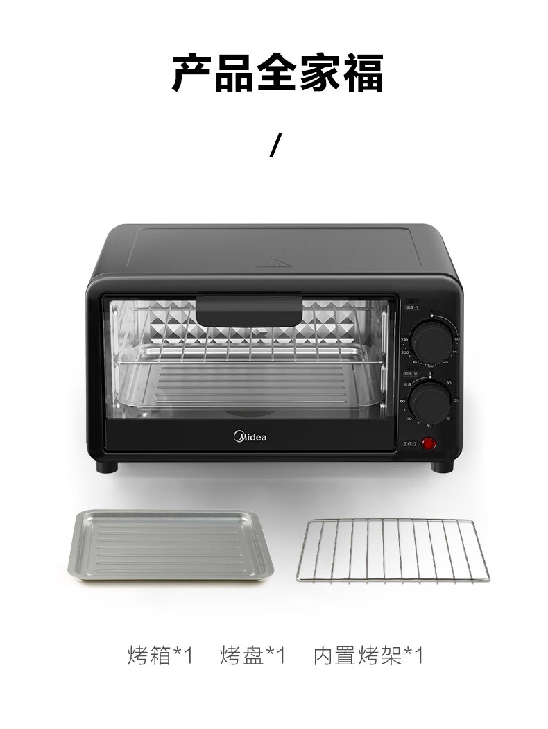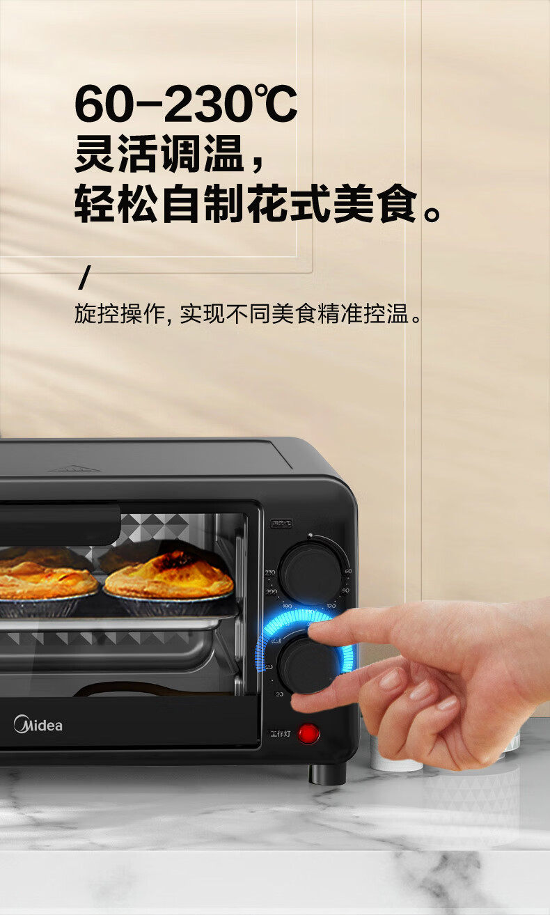 美的家用10升机械式电烤箱 60-230度调温双金属烤管 极简操作 均匀烘烤