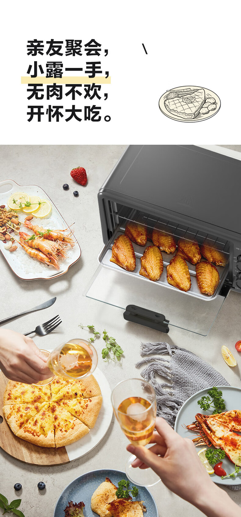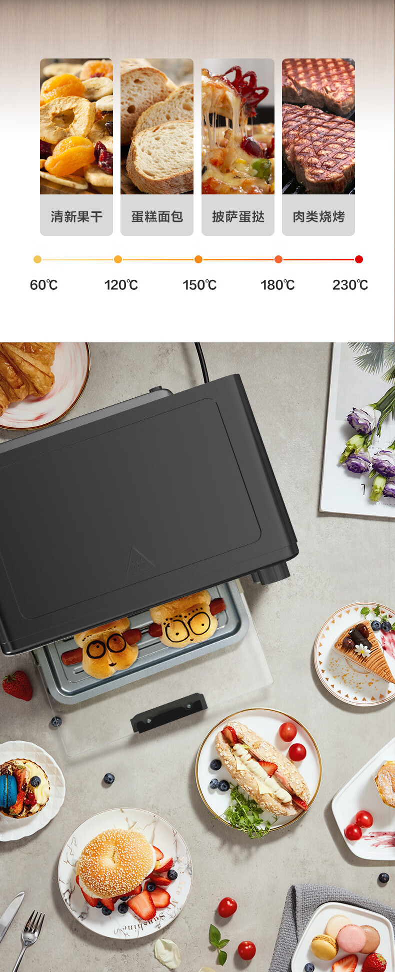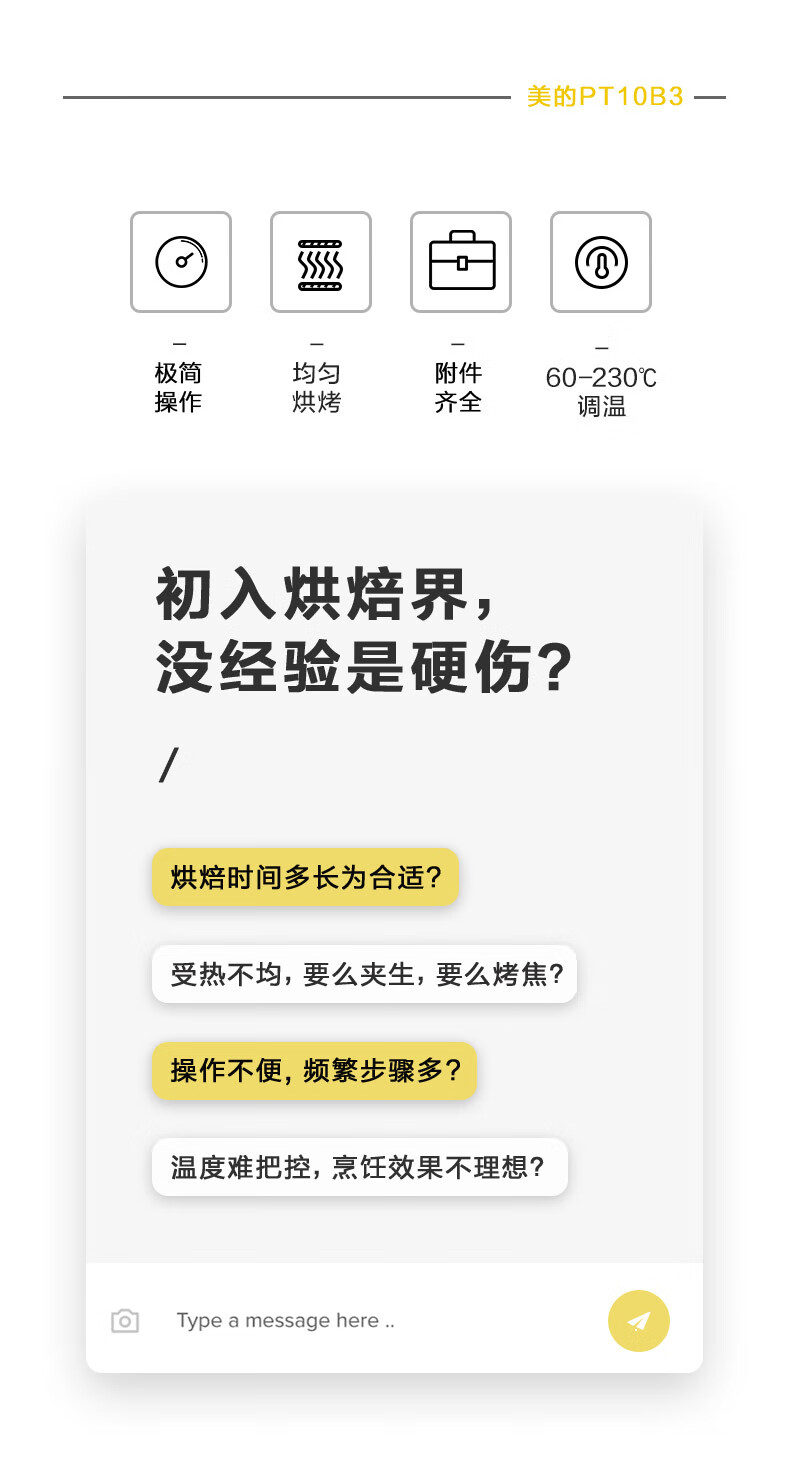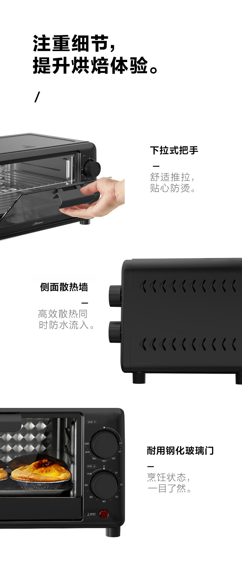美的家用10升机械式电烤箱 60-230度调温双金属烤管 极简操作 均匀烘烤