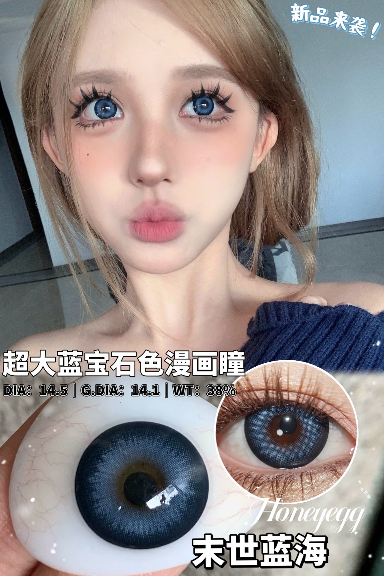 HoneyEgg 末世蓝海 半年抛 两片 14.5mm 参考着色 14.1mm 基弧 8.9 含水 38% 新锐国货