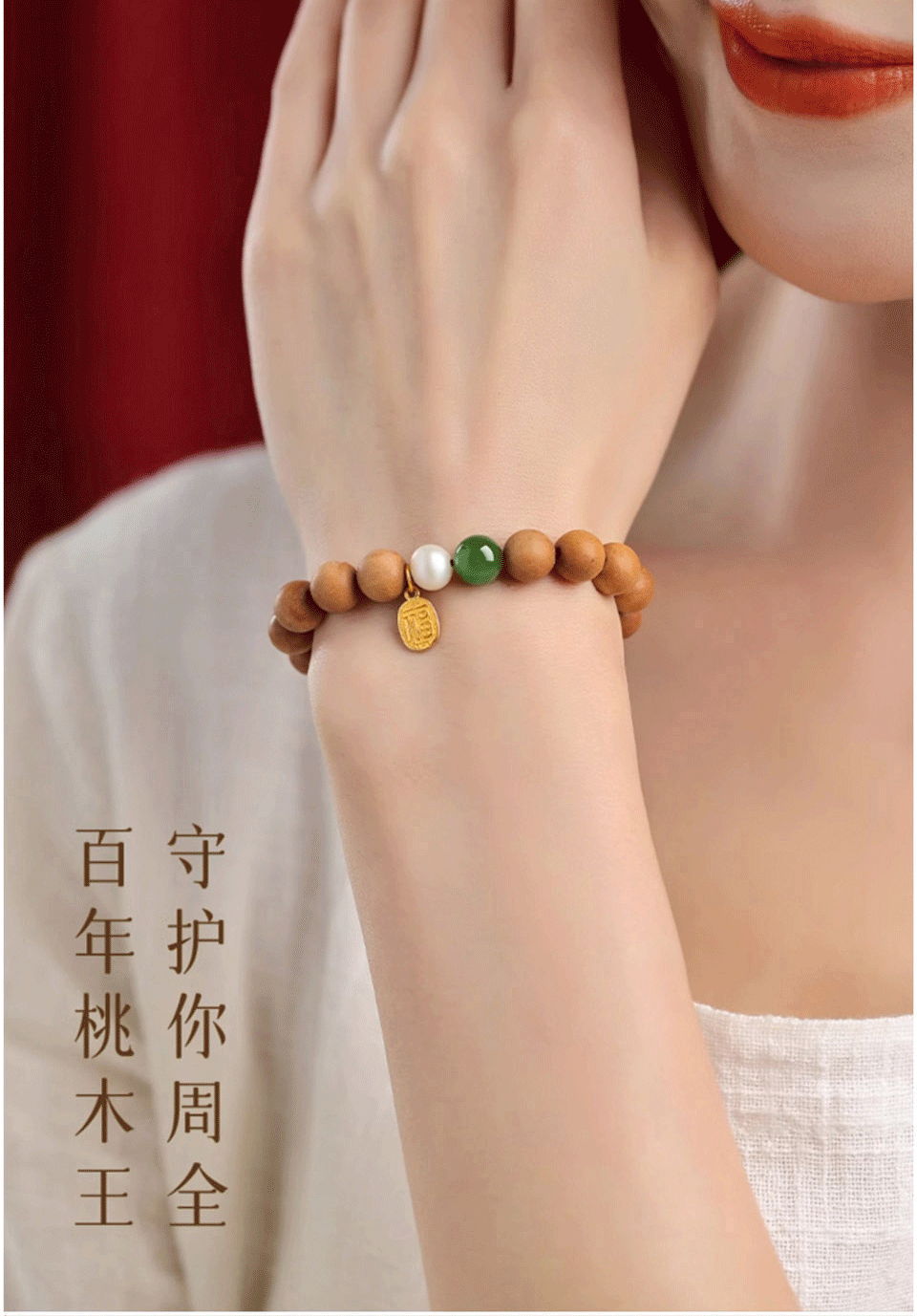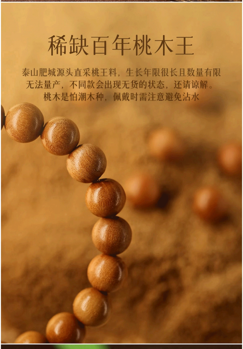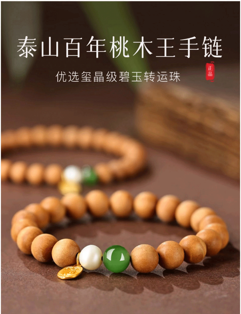 精工泰山天然百年桃木王珍珠和田玉8mm文玩手链