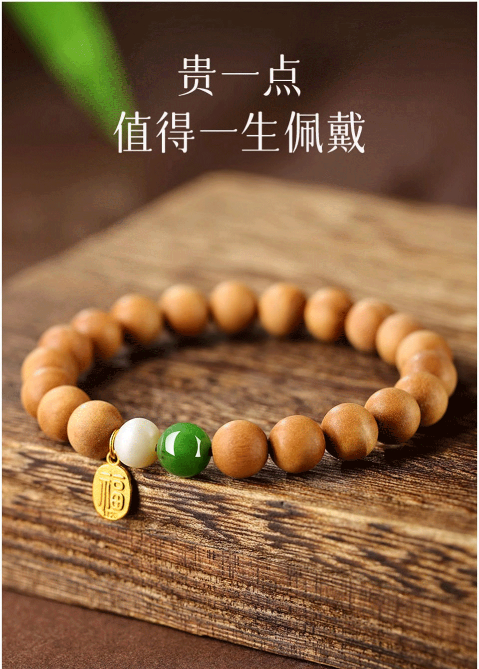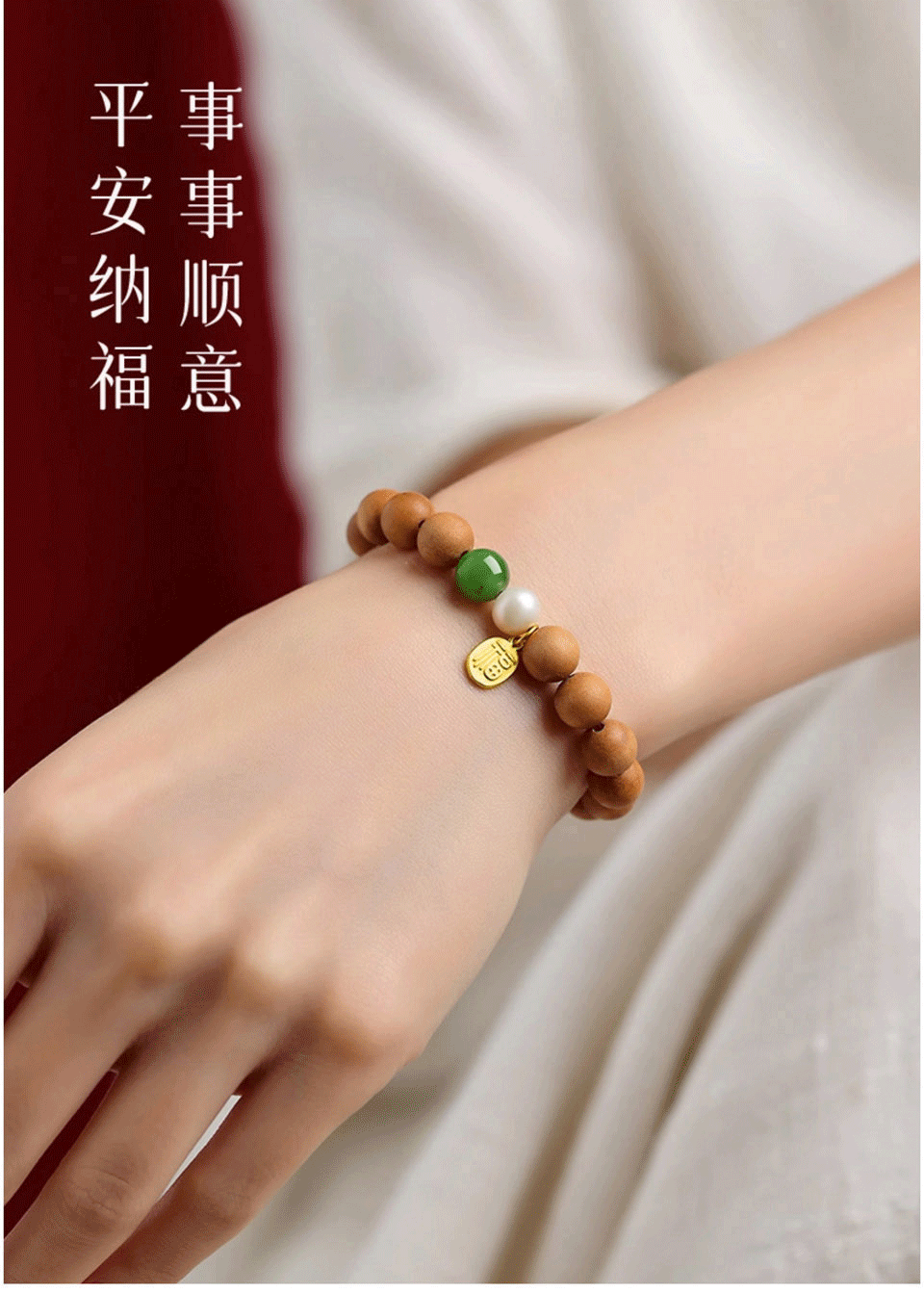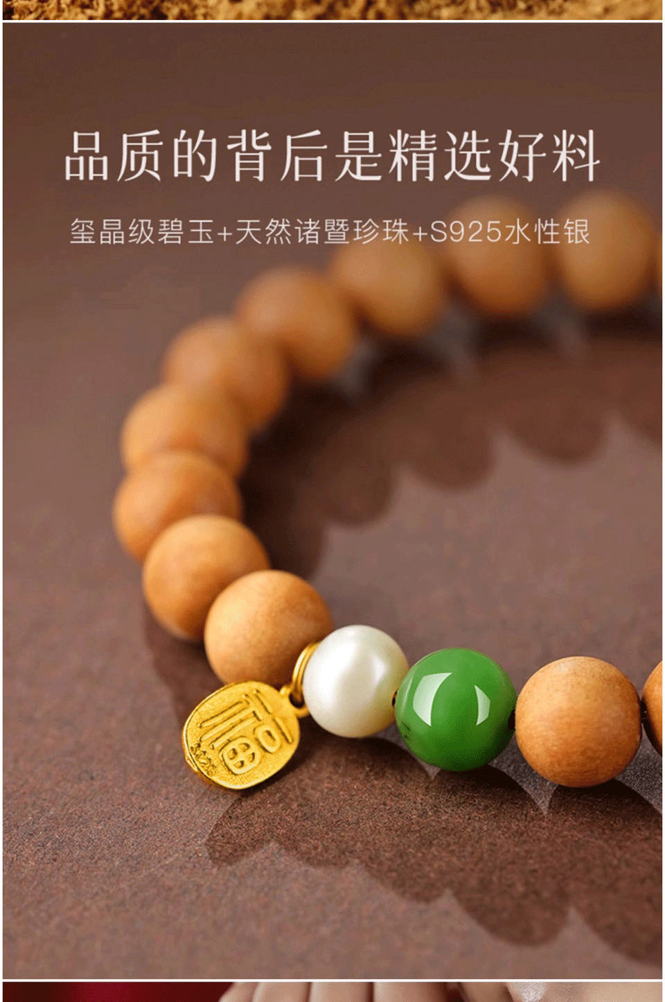 精工泰山天然百年桃木王珍珠和田玉8mm文玩手链