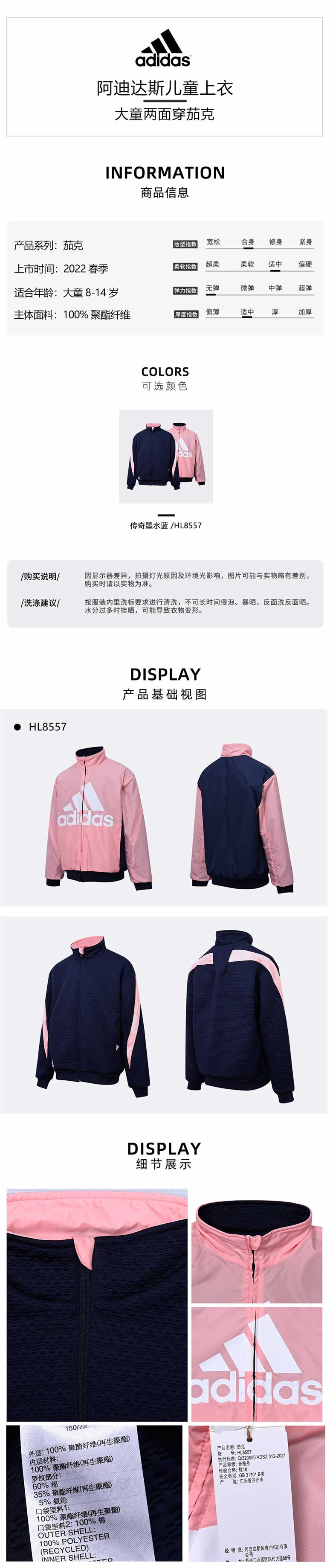 小阿迪女大童双面穿外套春秋新款纹理感针织运动夹克HL8557